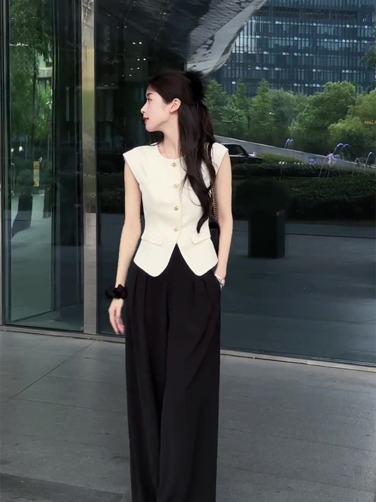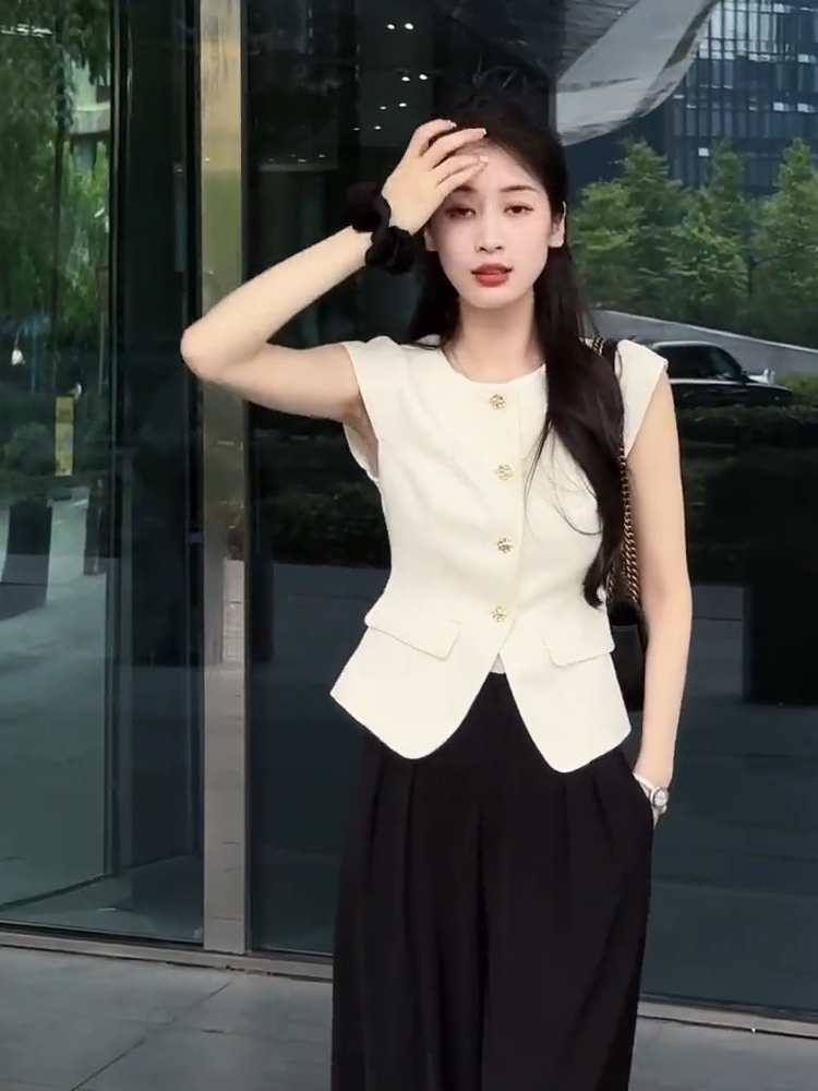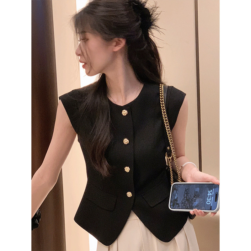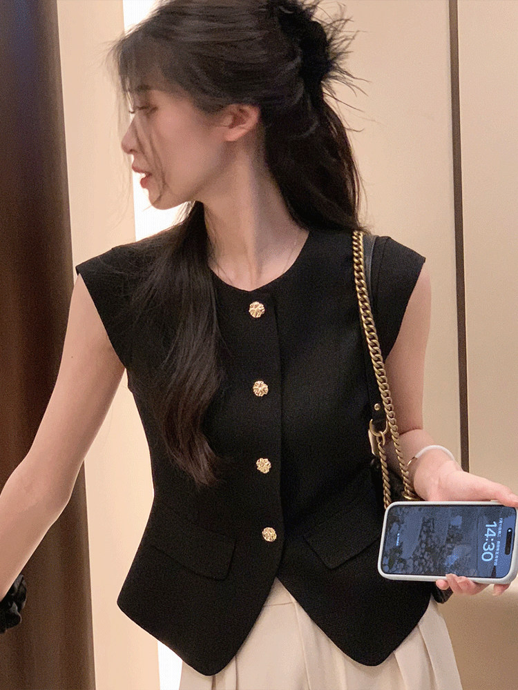 Черный жилет без рукавов, летняя рубашка, короткий корсет, французский стиль, изысканный стиль, яркий броский стиль