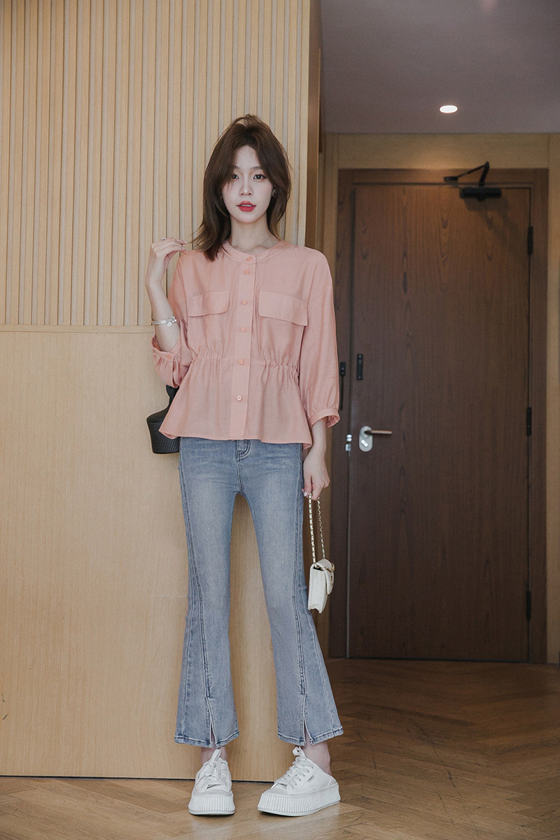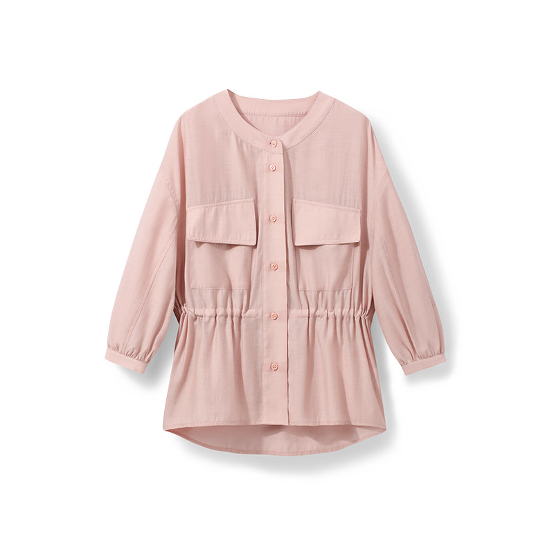 小谷粒 Летняя дизайнерская рубашка, розовый кардиган с круглым воротником, на шнурках, оверсайз