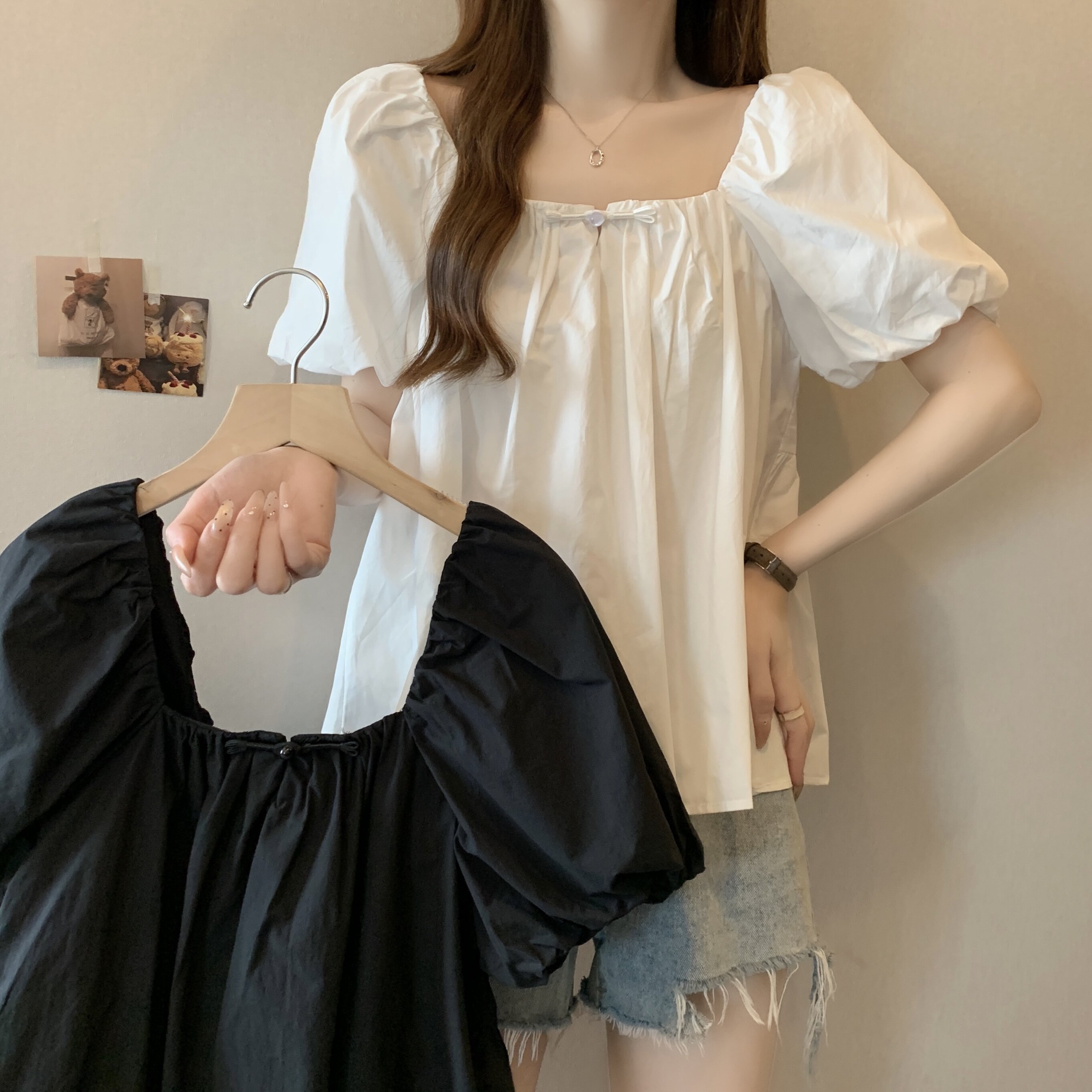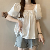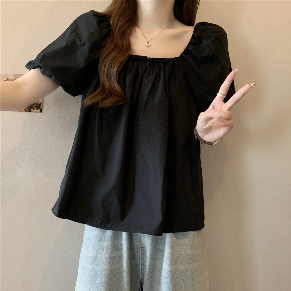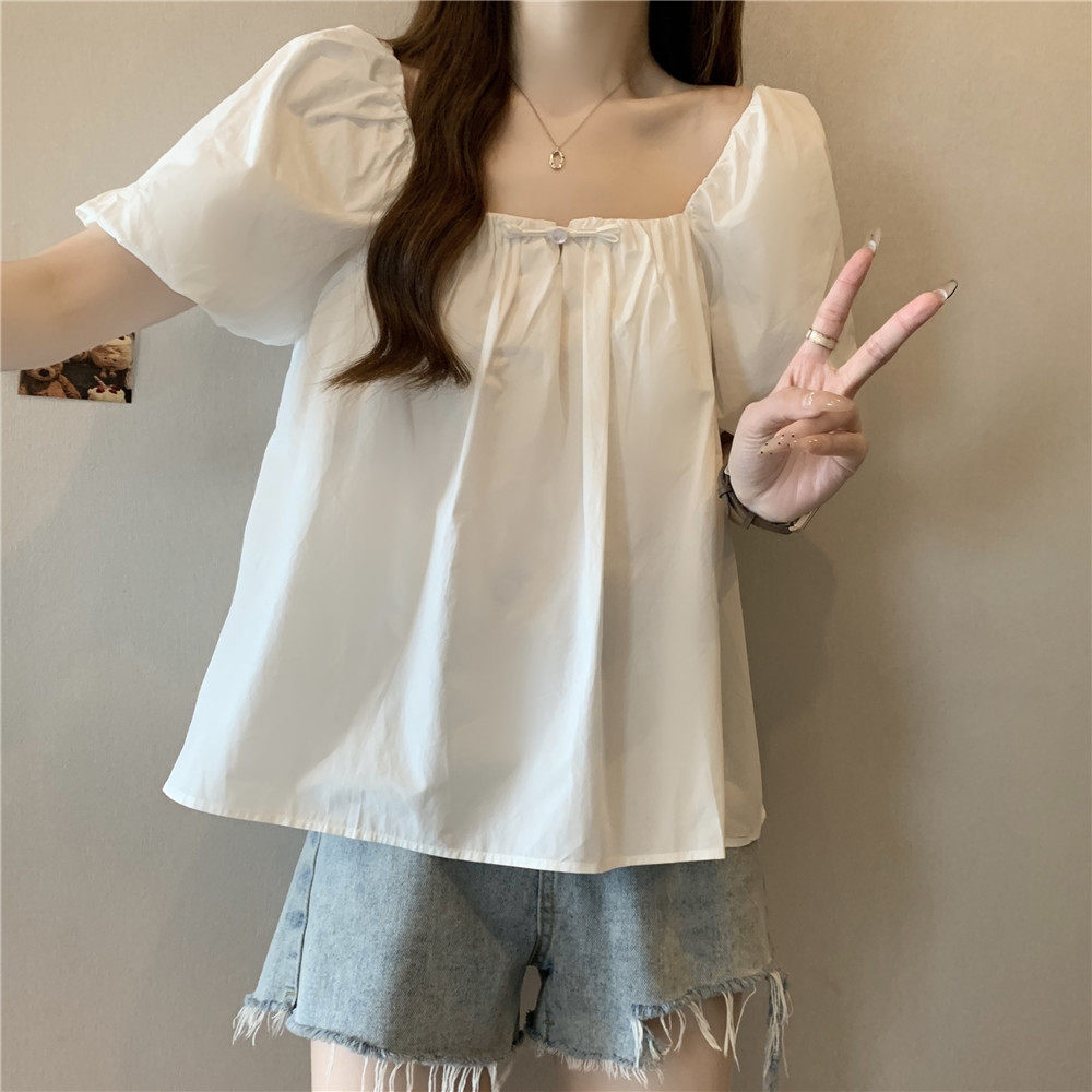 Летняя рубашка, французский стиль, короткий рукав, большой размер, яркий броский стиль, квадратный вырез