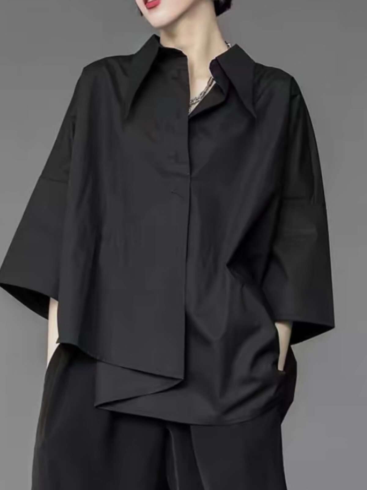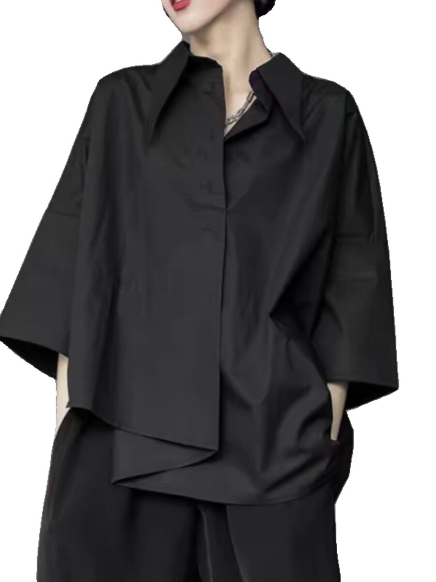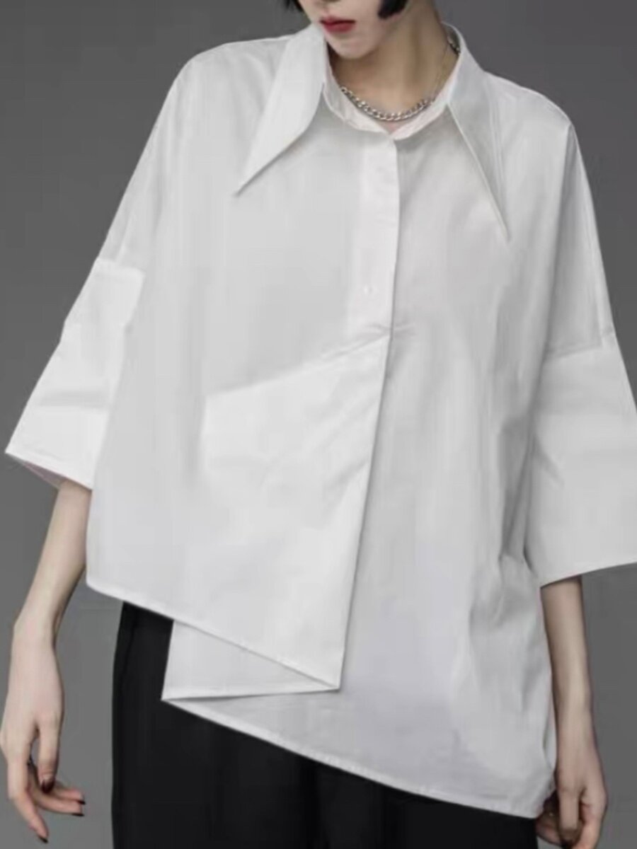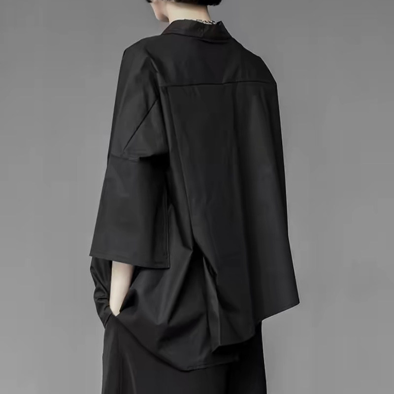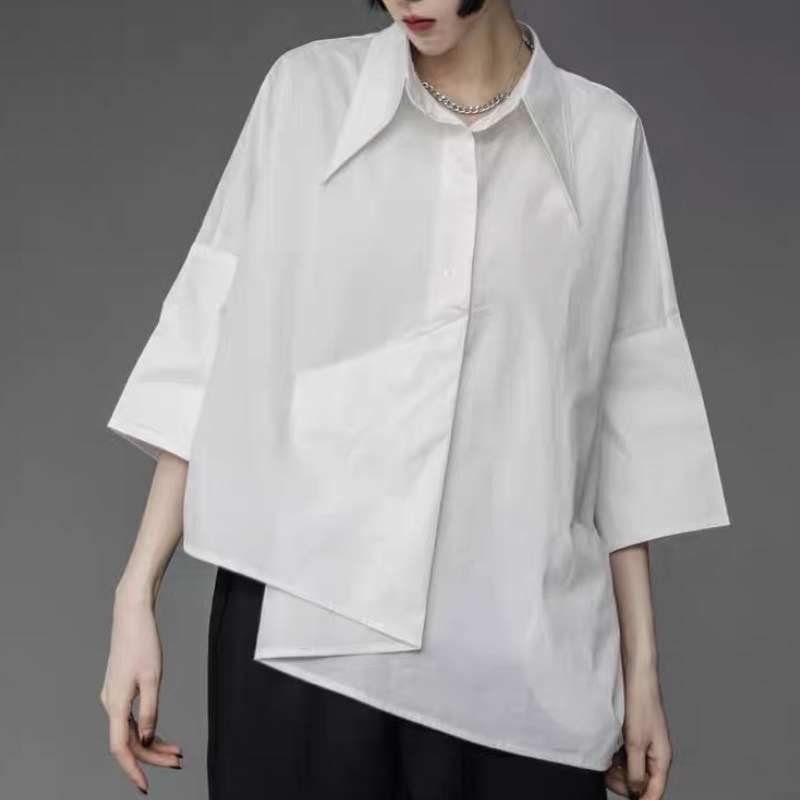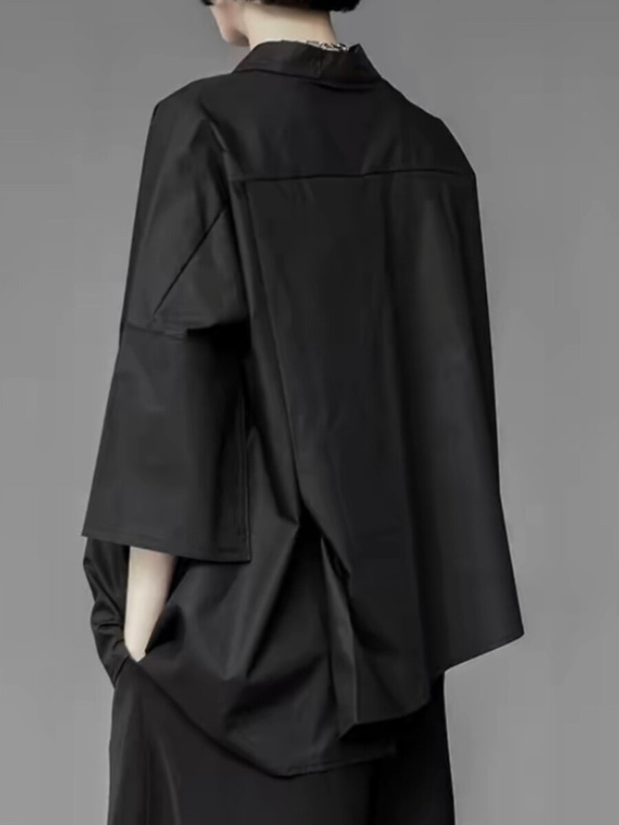 子末青合 Японская дизайнерская асимметричная рубашка, тренд сезона