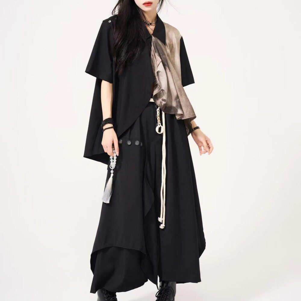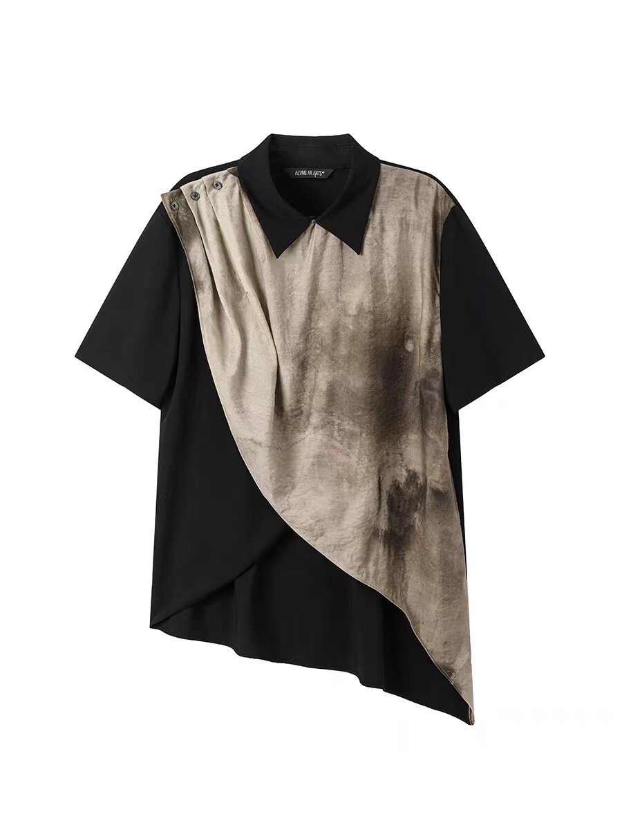 Ретро шелковая рубашка, короткий рукав, для влюбленных