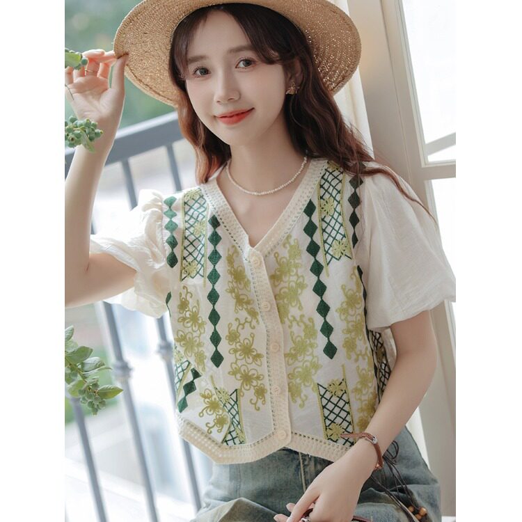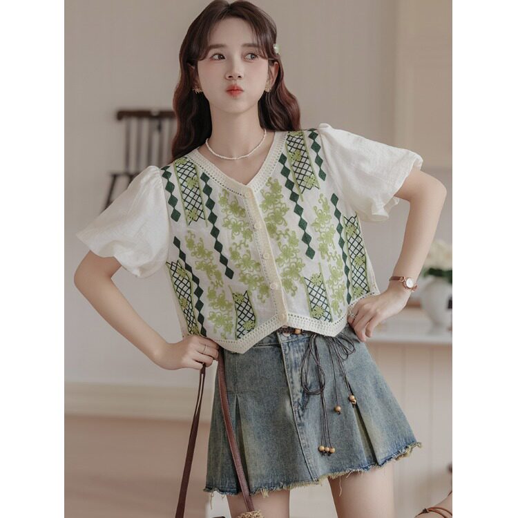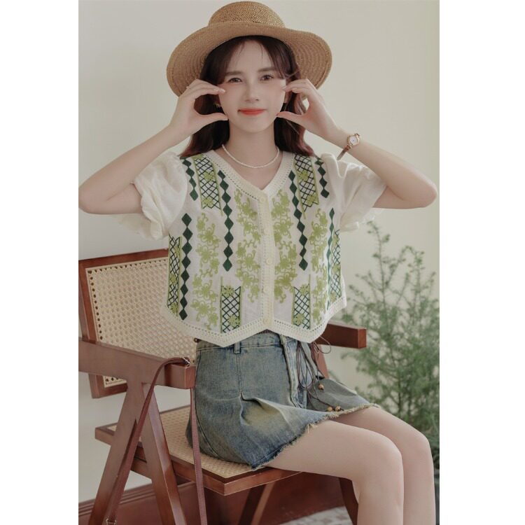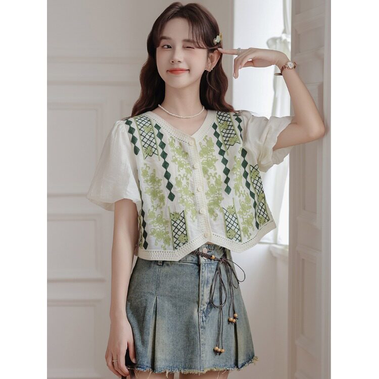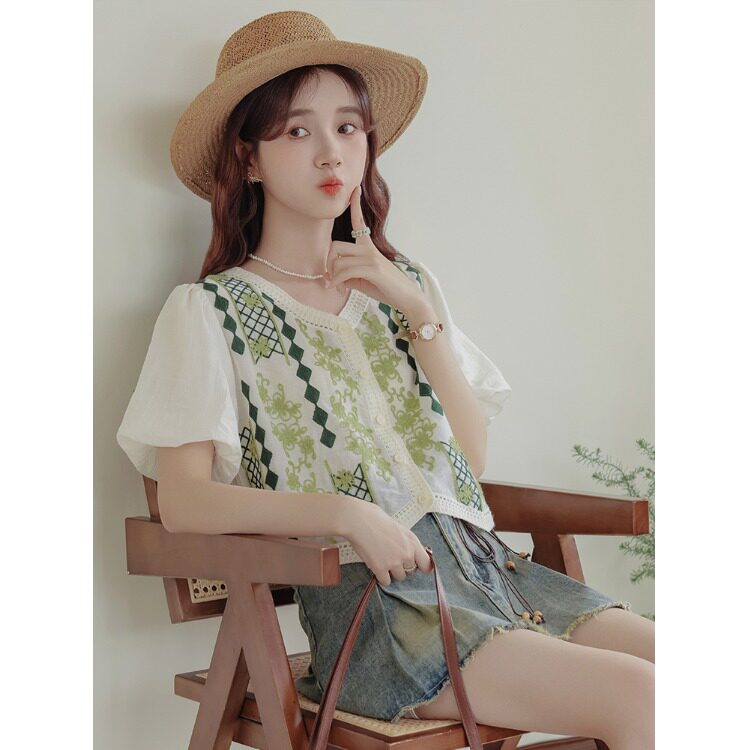 Ретро комплект, летняя короткая рубашка, французский стиль, подходит для подростков