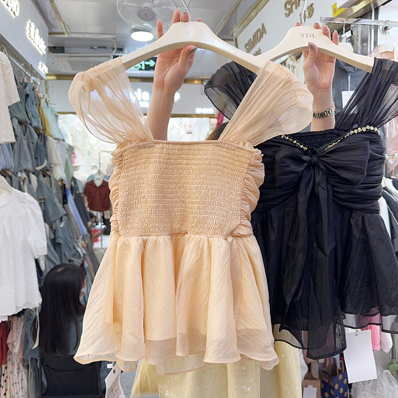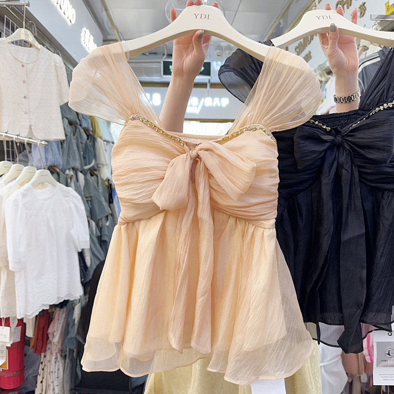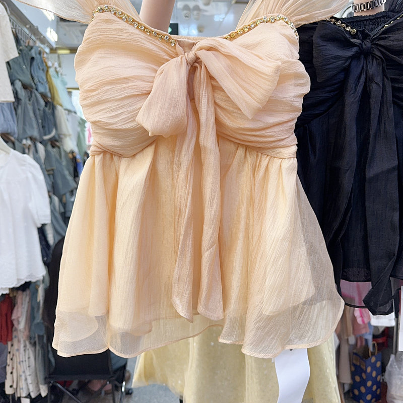 Майка топ с бантиком, модная рубашка без рукавов, городской стиль, с открытой спиной