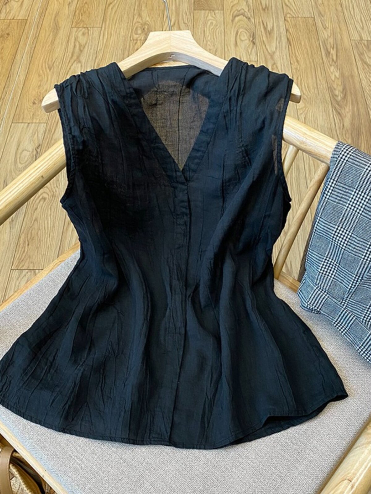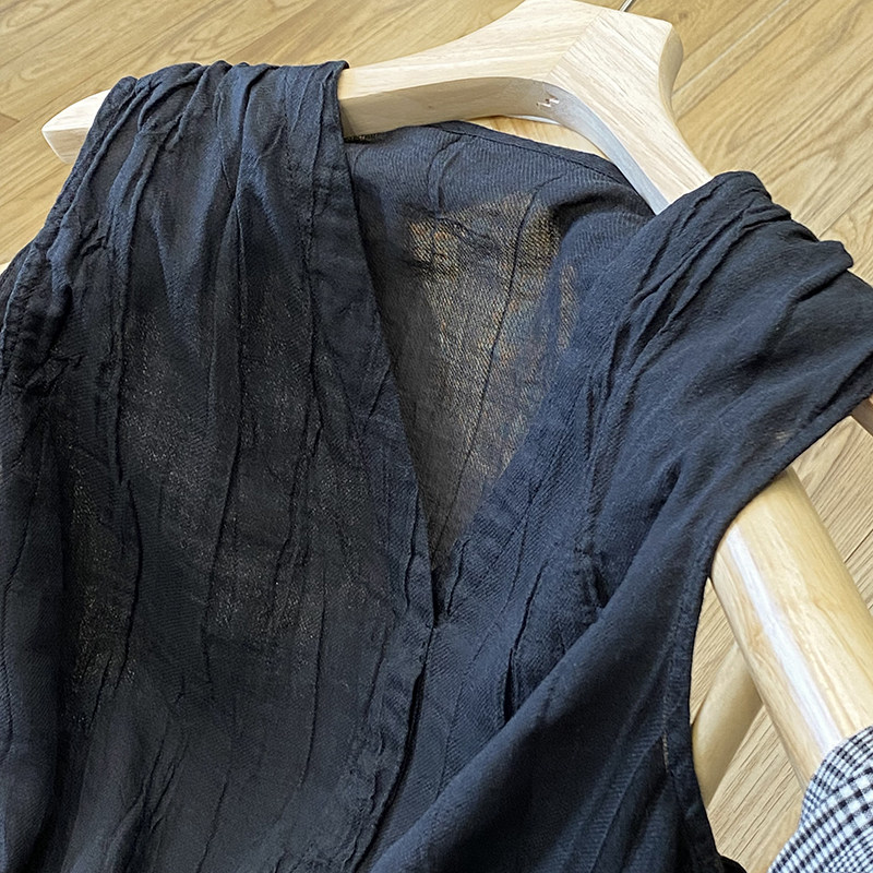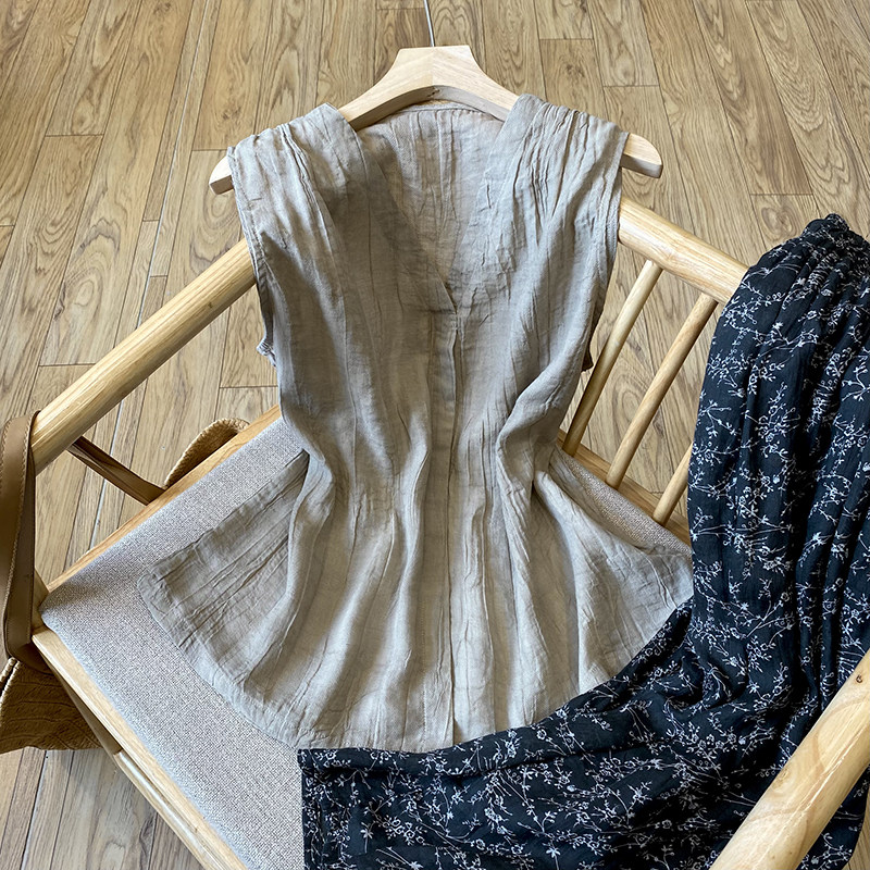 Японская летняя майка топ, рубашка без рукавов, стиль, V-образный вырез, свободный крой