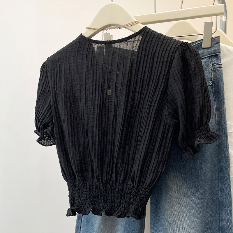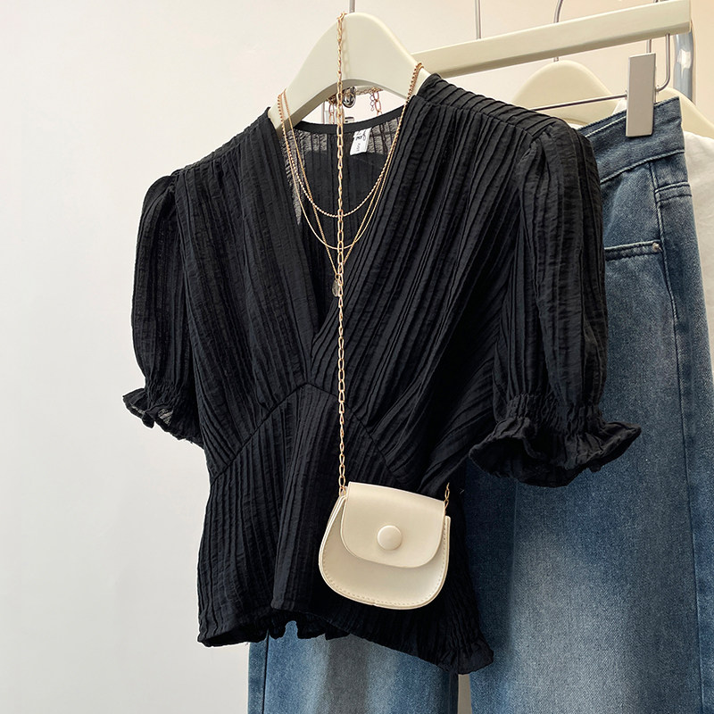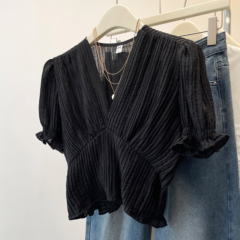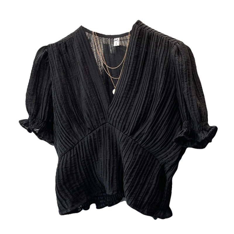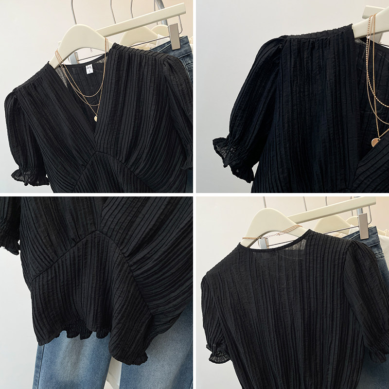 Черная шифоновая летняя рубашка, корсет, французский стиль, V-образный вырез, большой размер, изысканный стиль