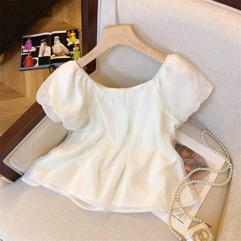 Летняя рубашка, дизайнерская кукла с бабочкой, квадратный вырез, рукава фонарики, новая коллекция, тренд сезона, короткий рукав