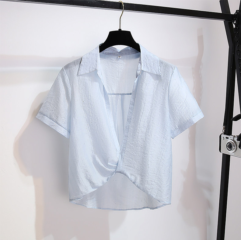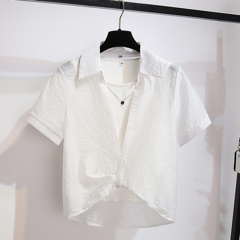 Белая рубашка, топ с чашечками, летний комплект, защита от солнца, для маленькой груди, ассиметричный крой