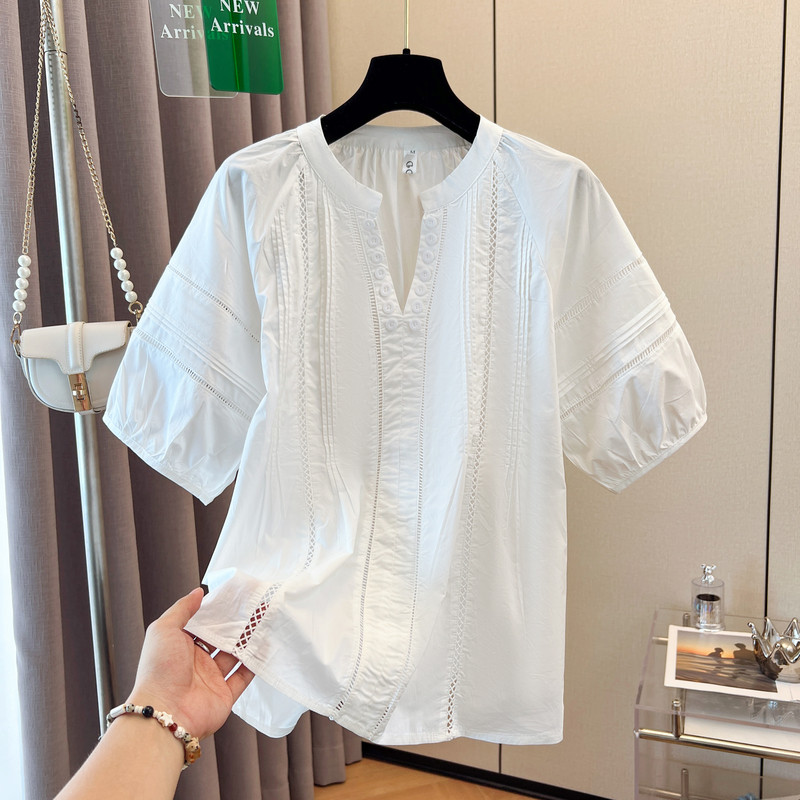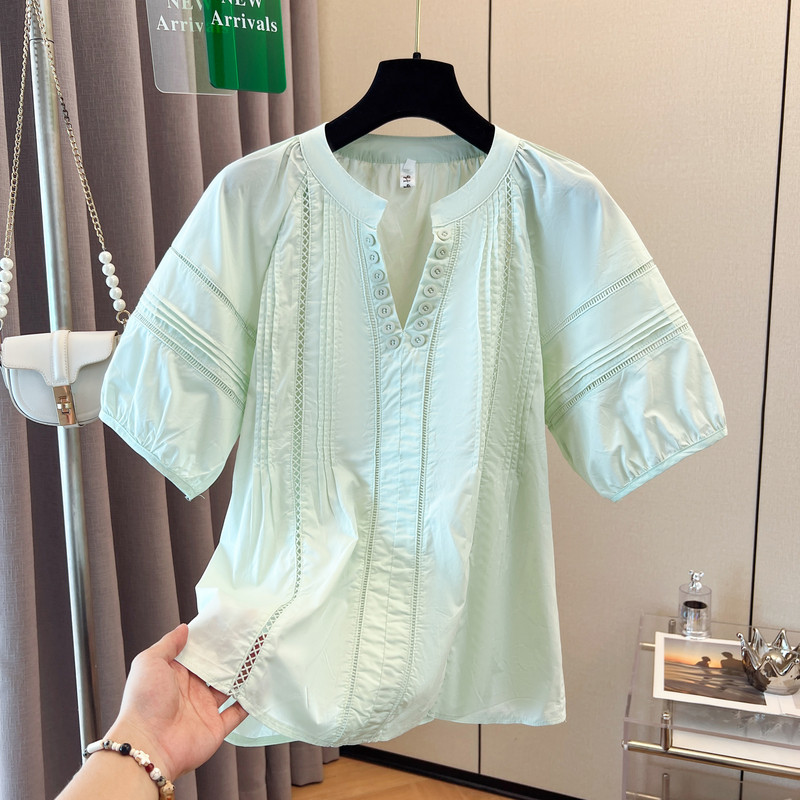 Розовая летняя рубашка, V-образный вырез, большой размер, изысканный стиль
