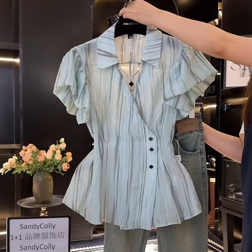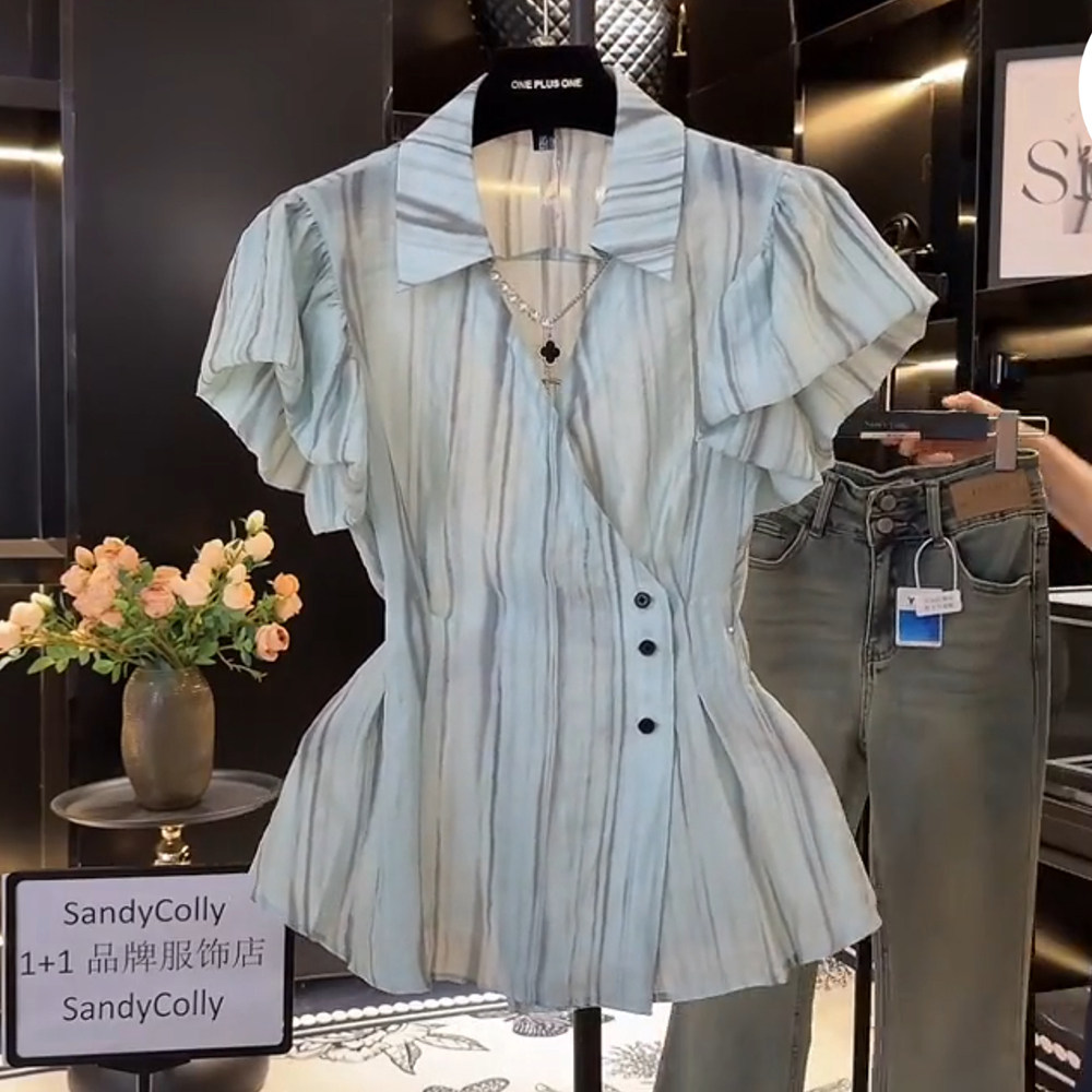 Приталенный корсет, летняя рубашка, футболка, размер, французский стиль, V-образный вырез, городской стиль, короткий рукав