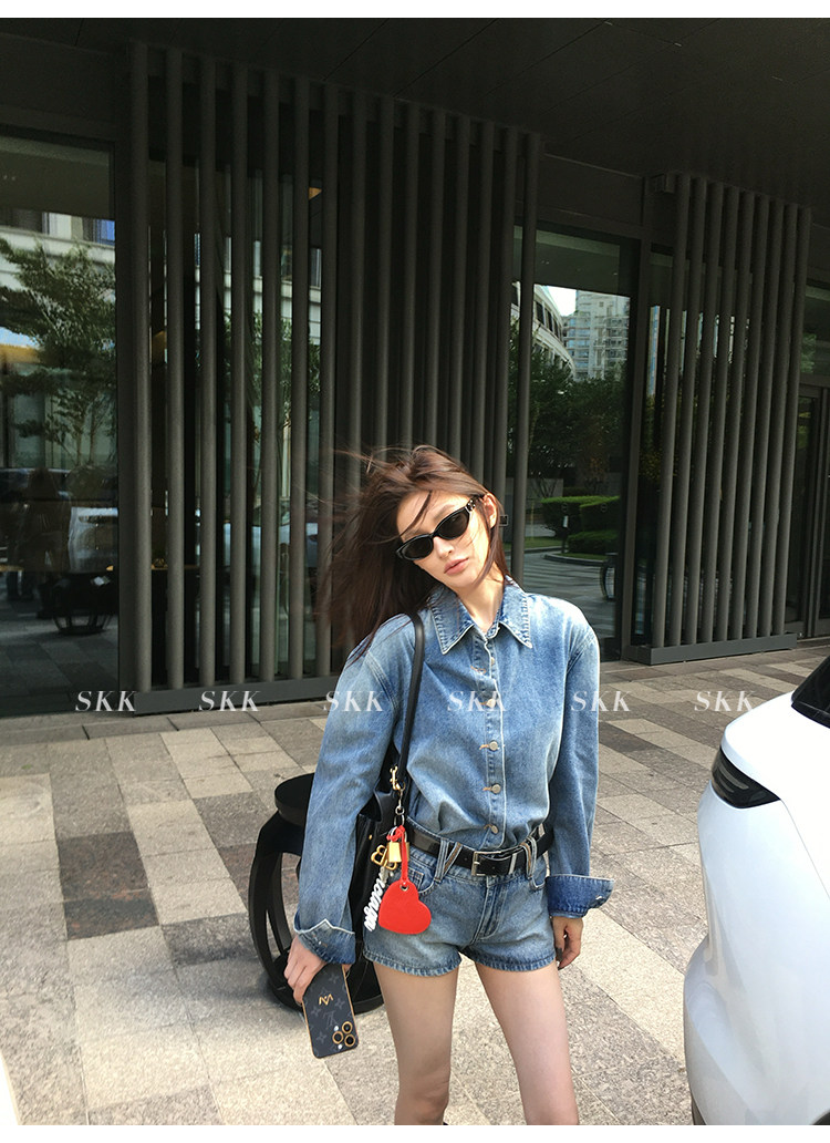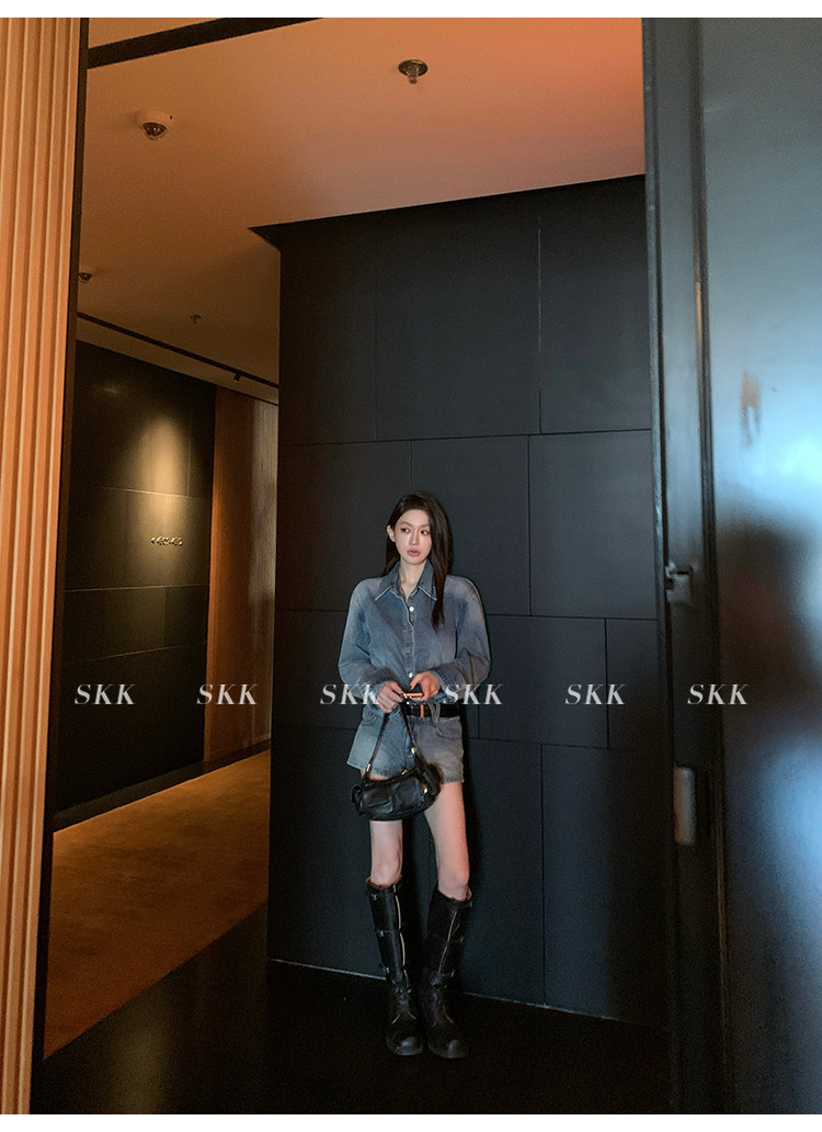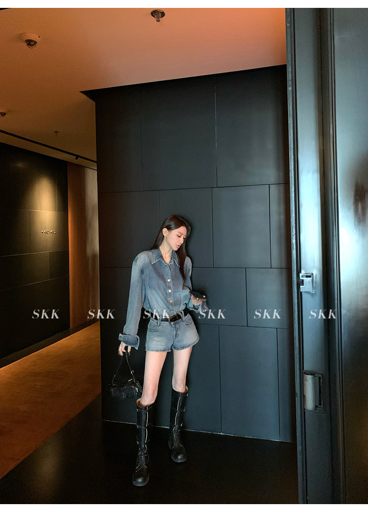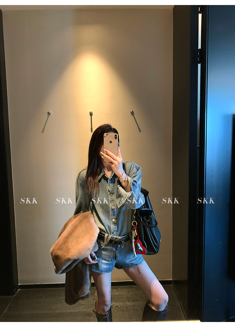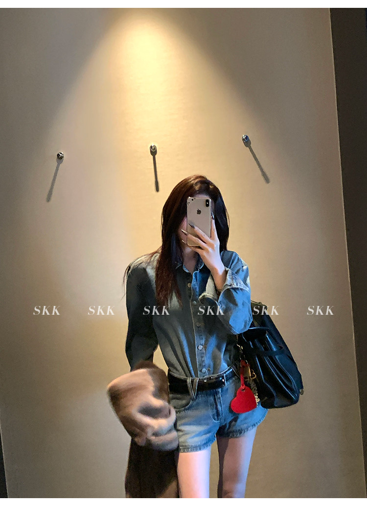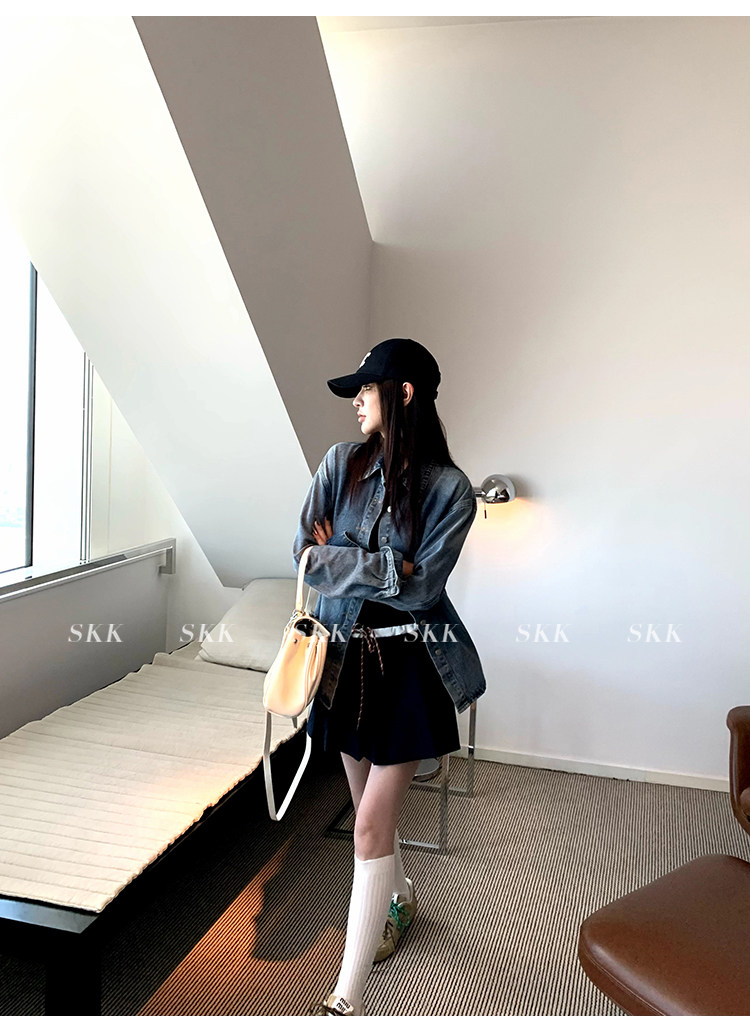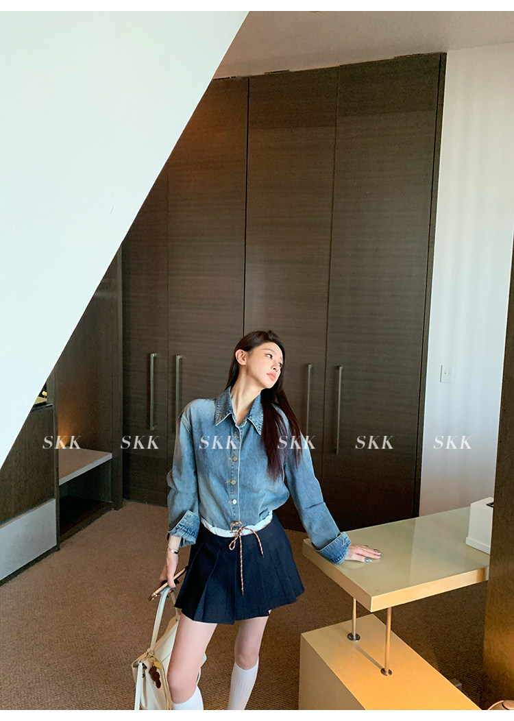 Синяя рубашка, джинсовая юбка, комплект, осенняя