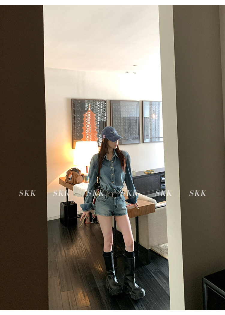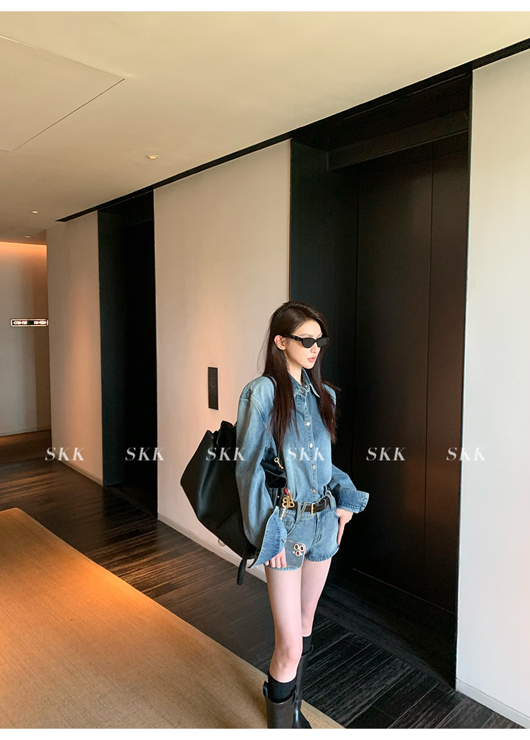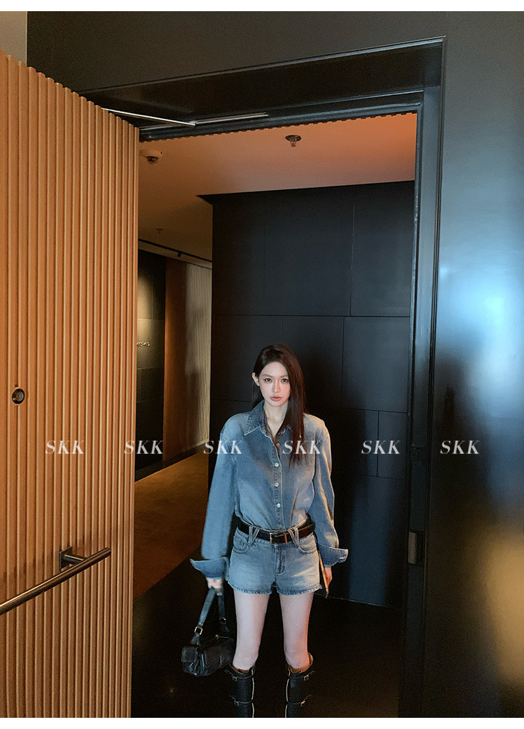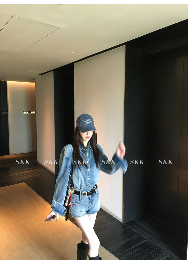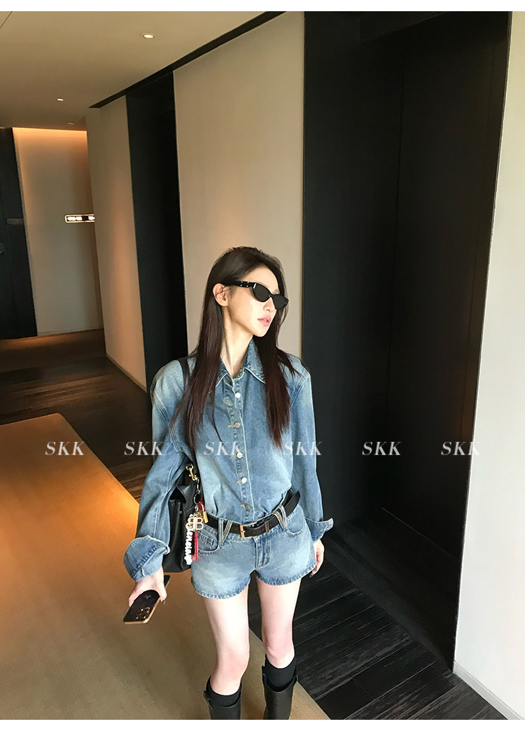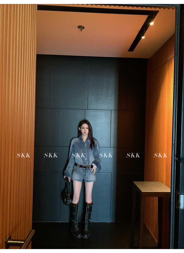 Синяя рубашка, джинсовая юбка, комплект, осенняя