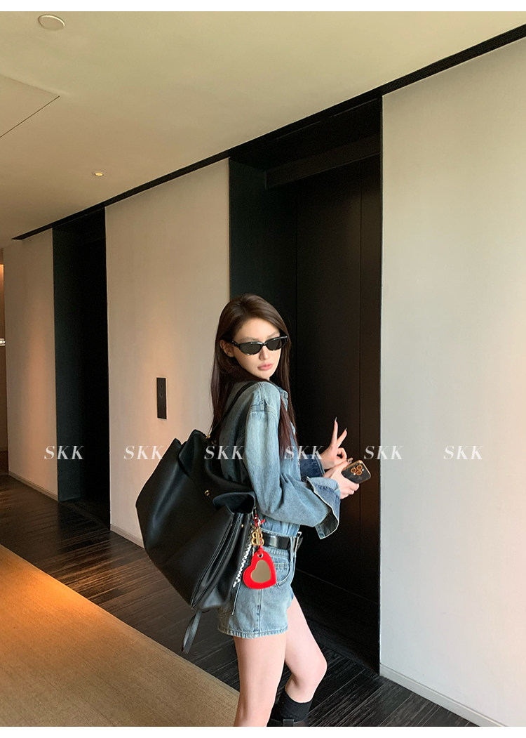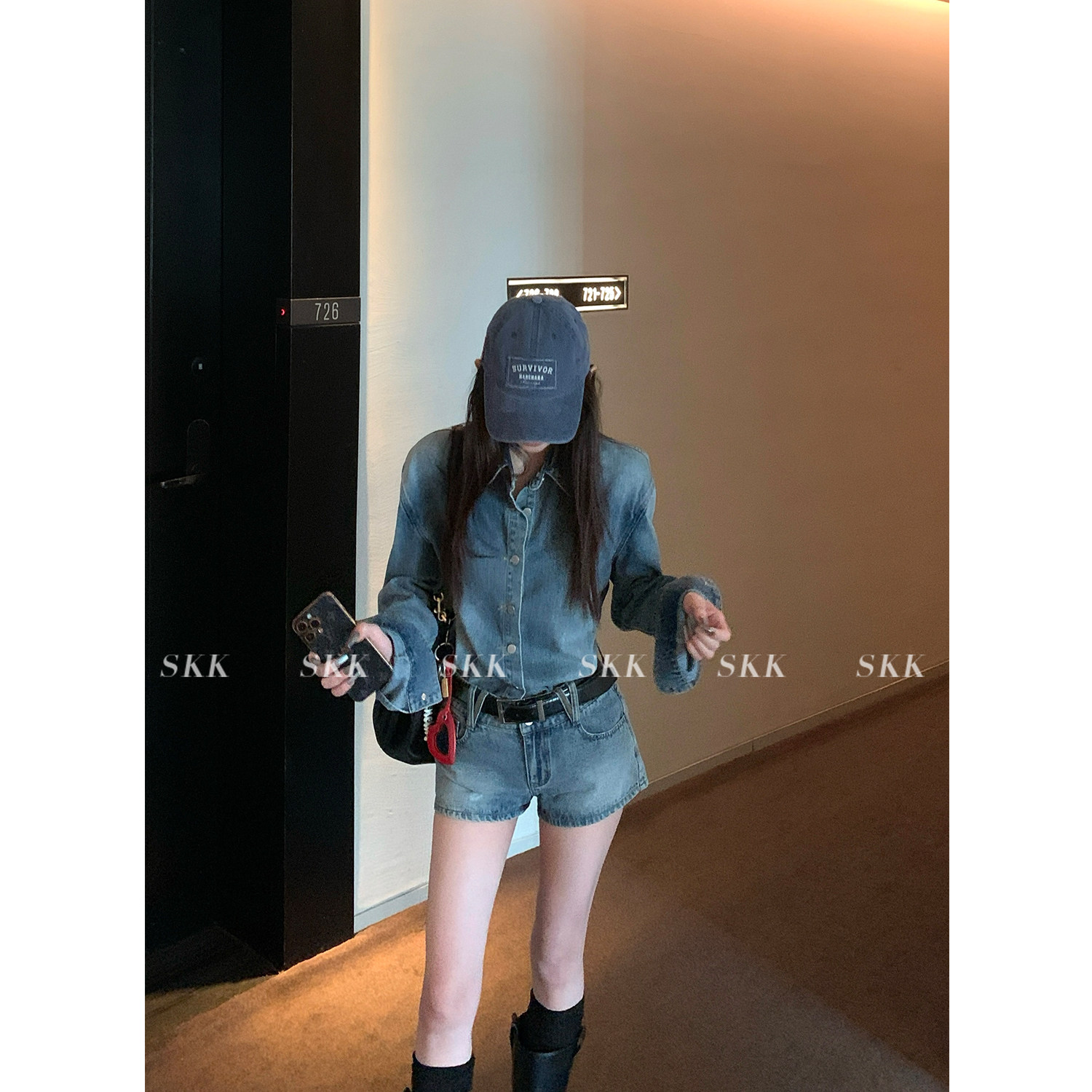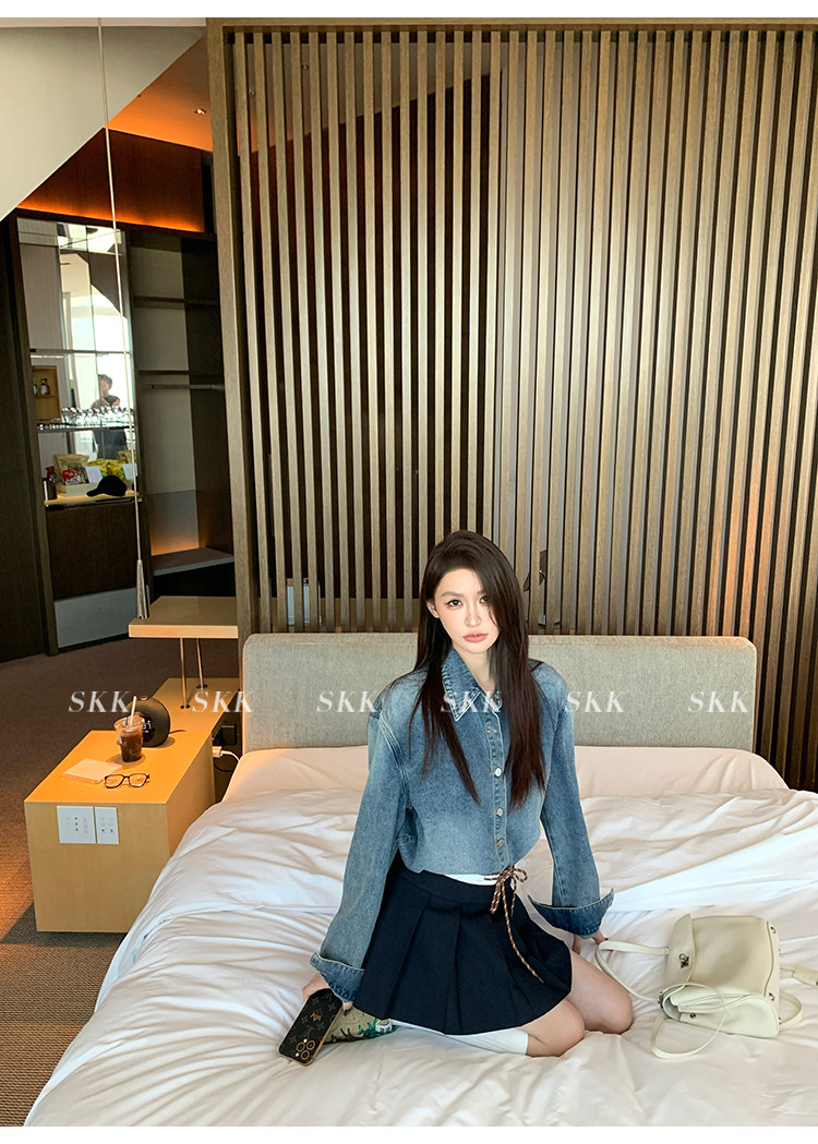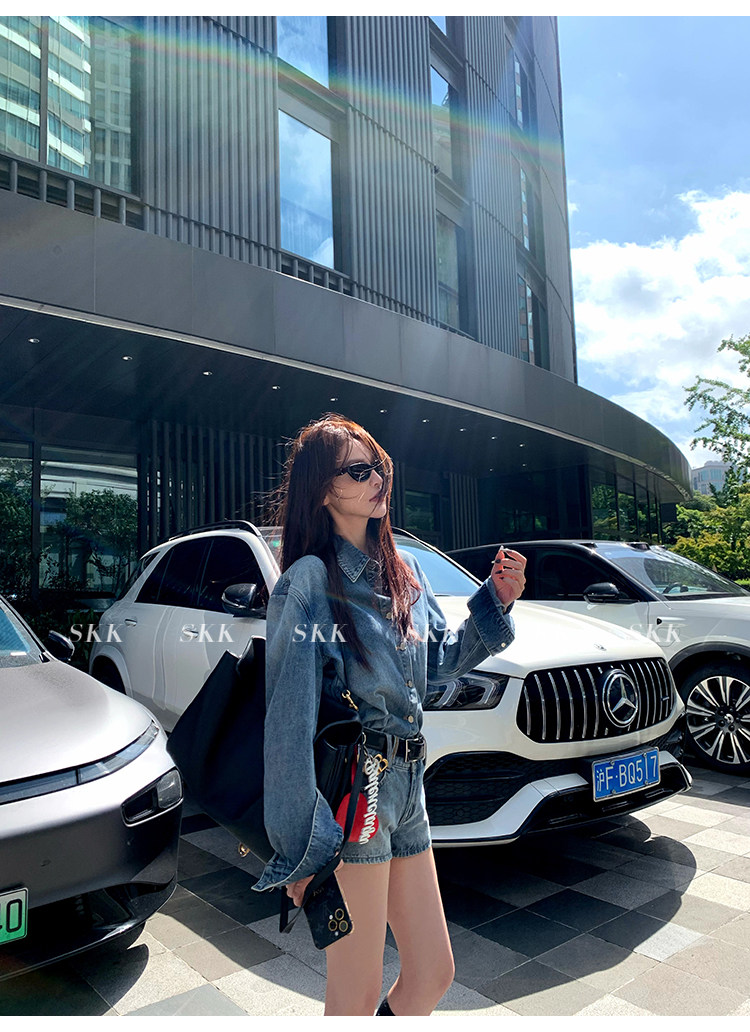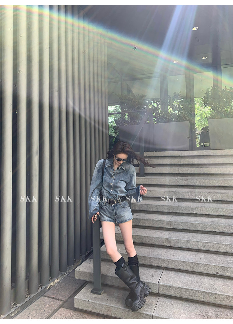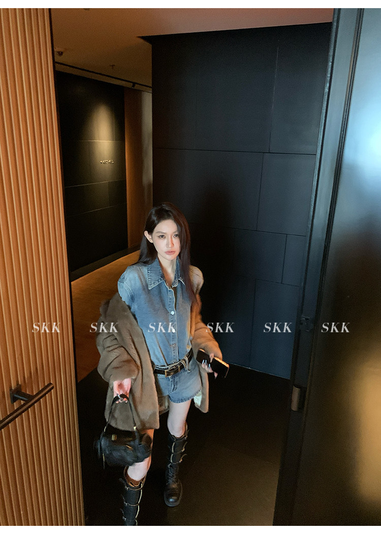Синяя рубашка, джинсовая юбка, комплект, осенняя