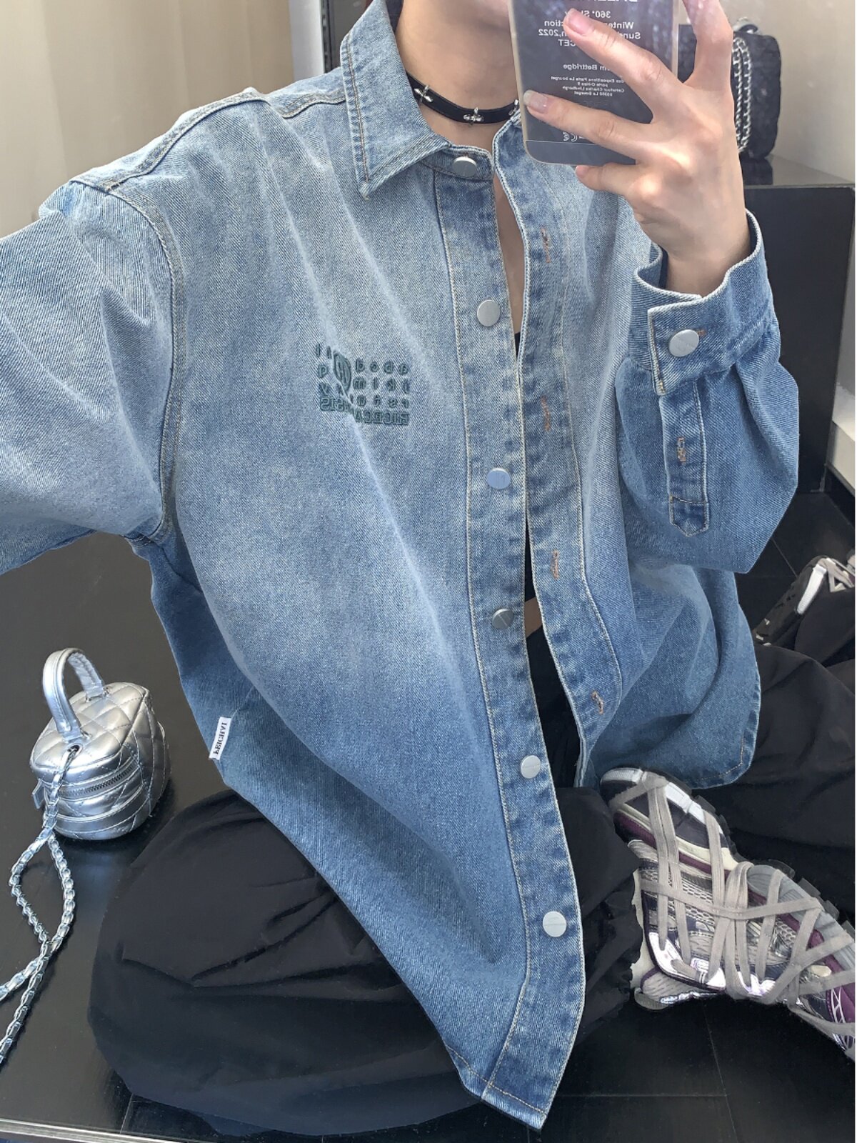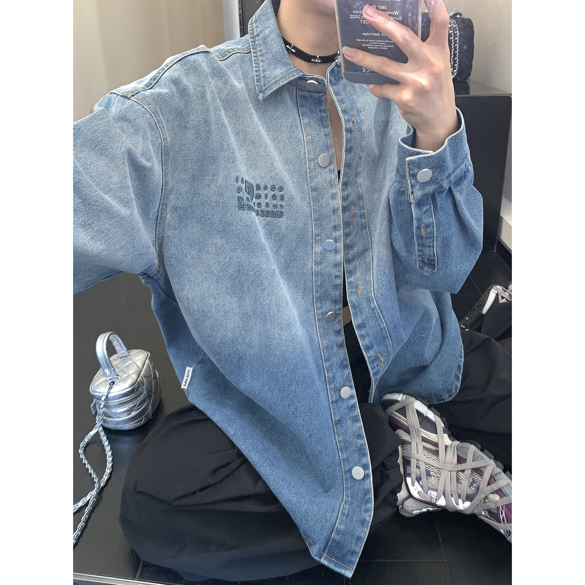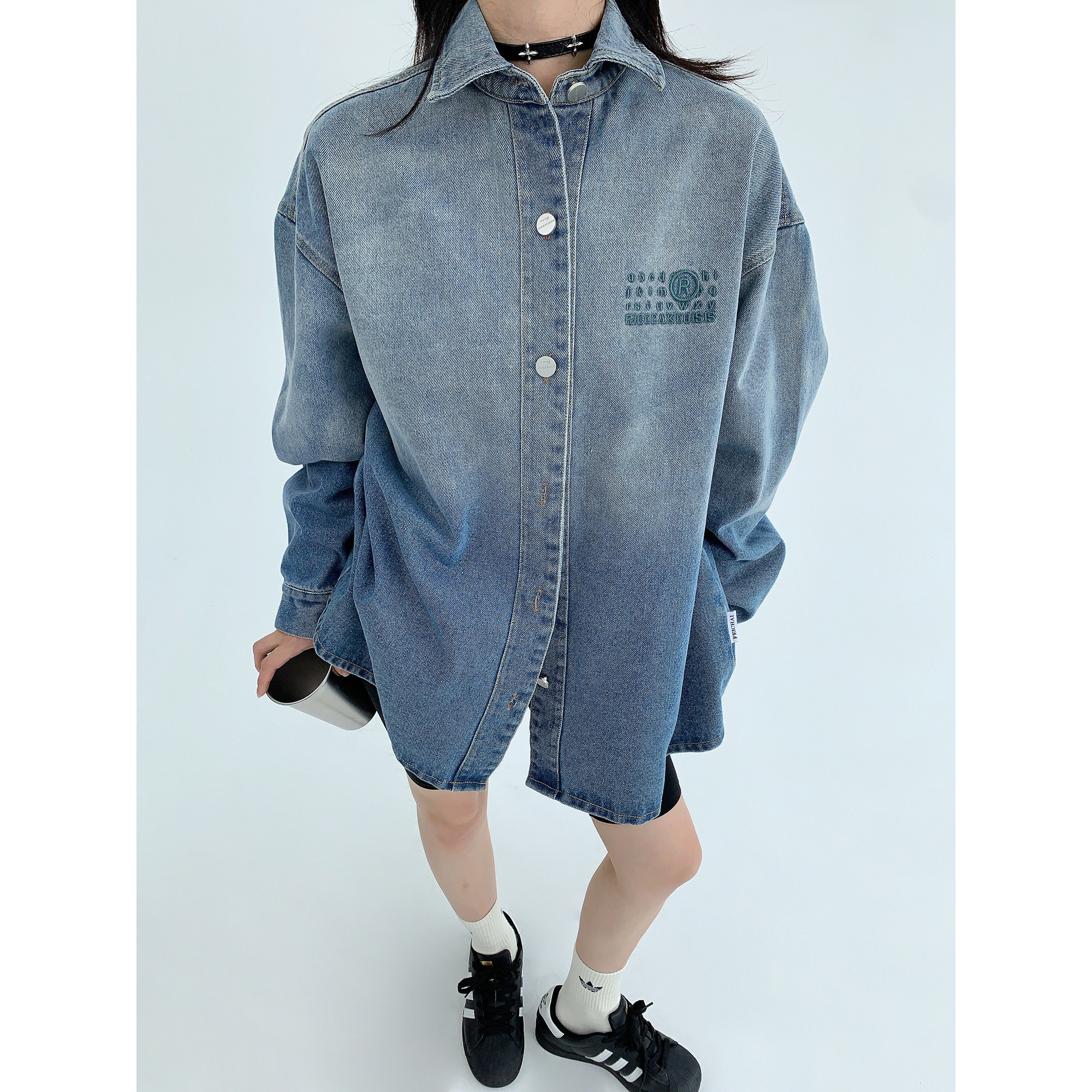 Рубашка, куртка, в американском стиле, градиент, с вышивкой, свободный крой