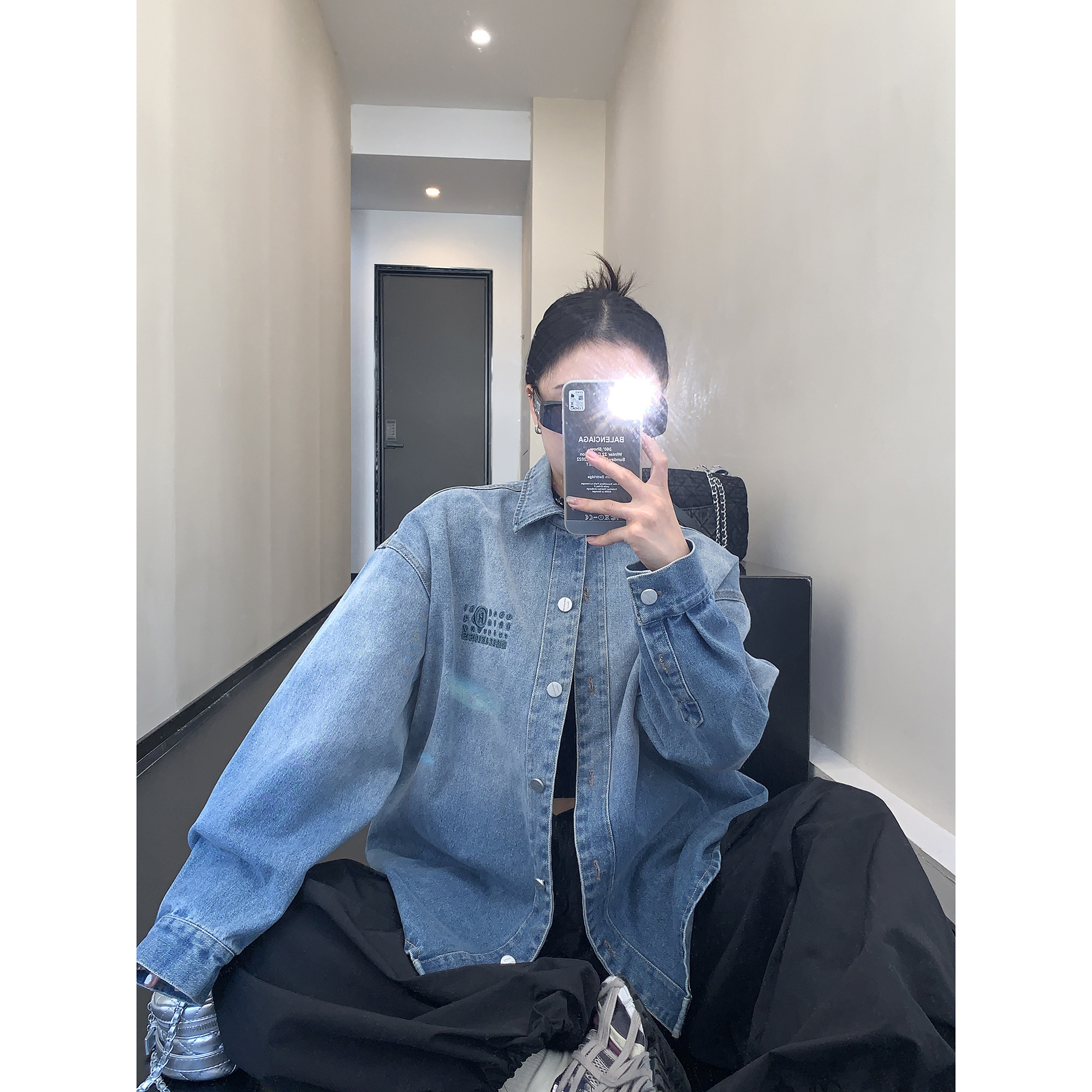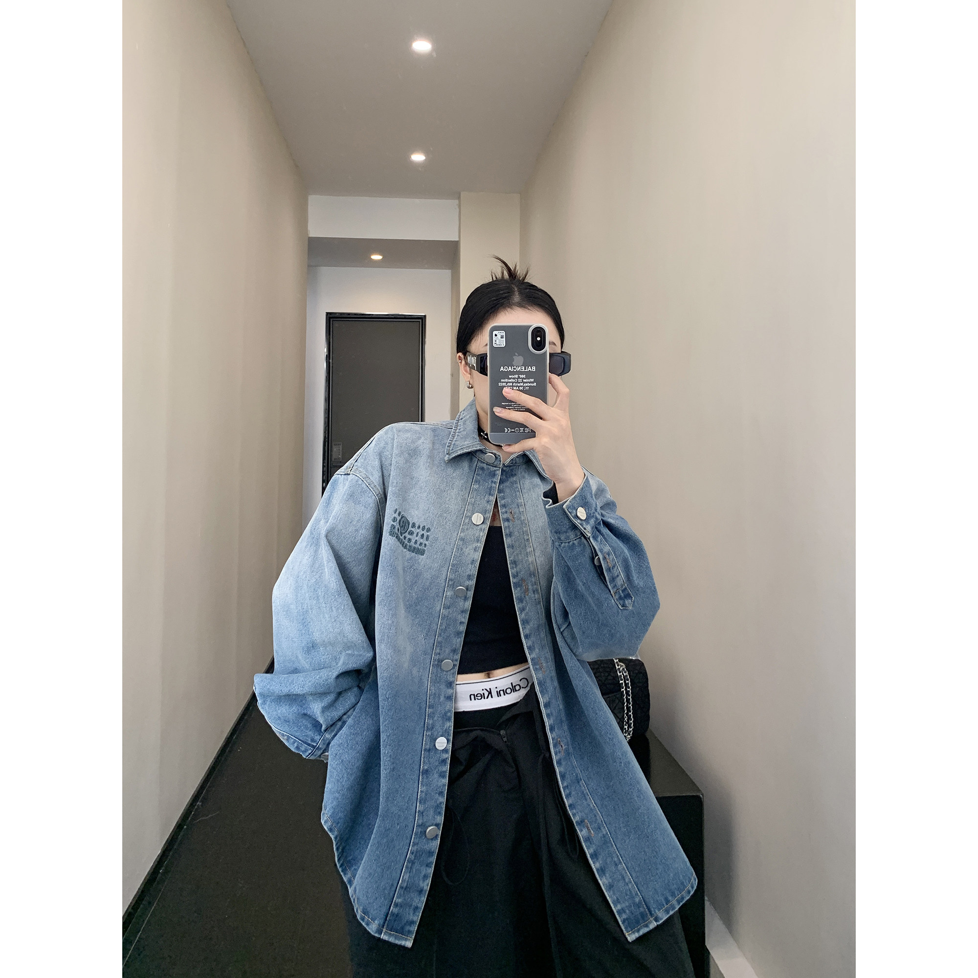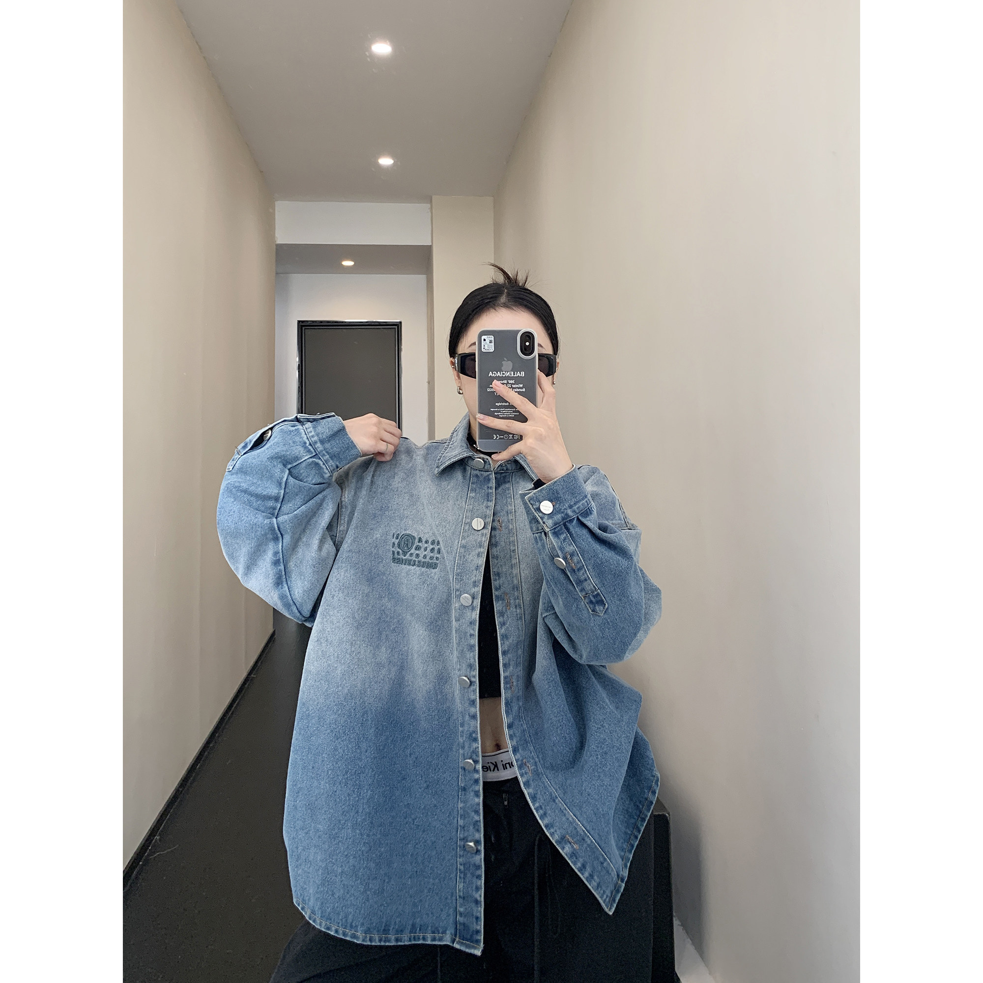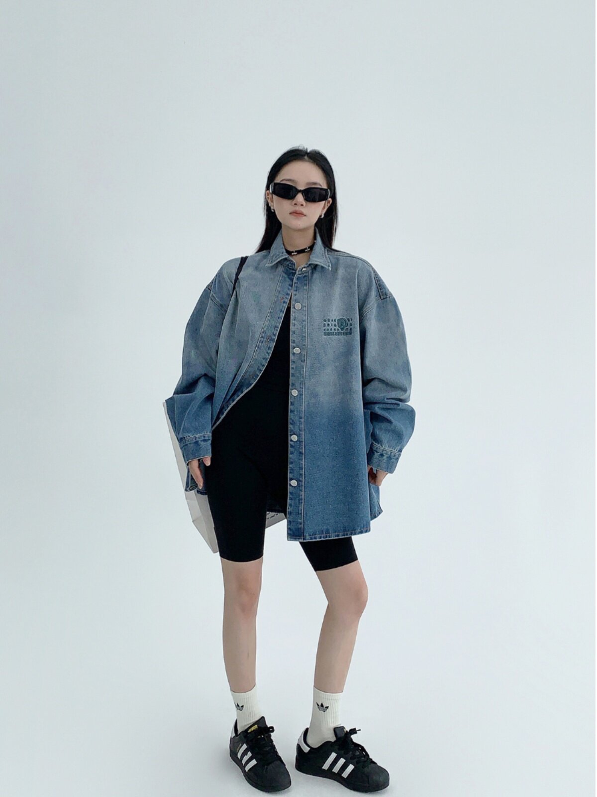 Рубашка, куртка, в американском стиле, градиент, с вышивкой, свободный крой