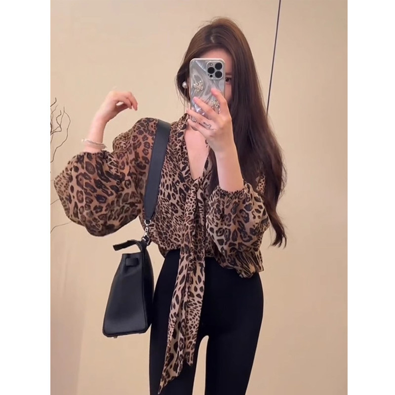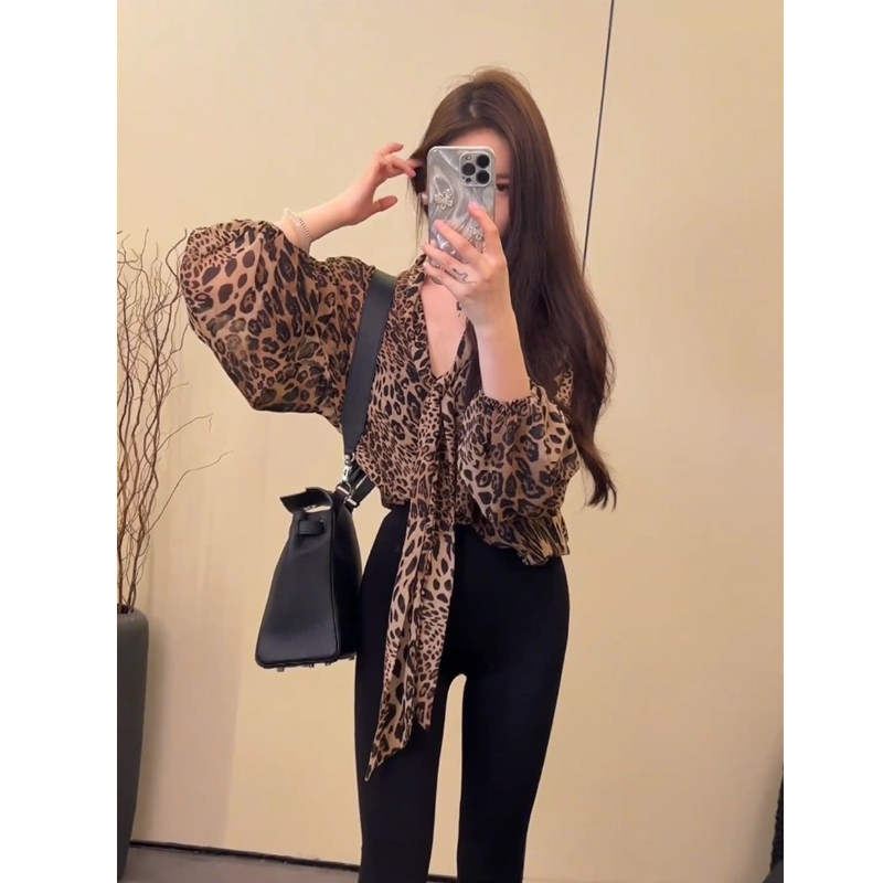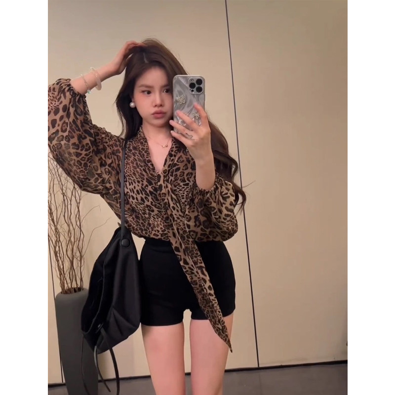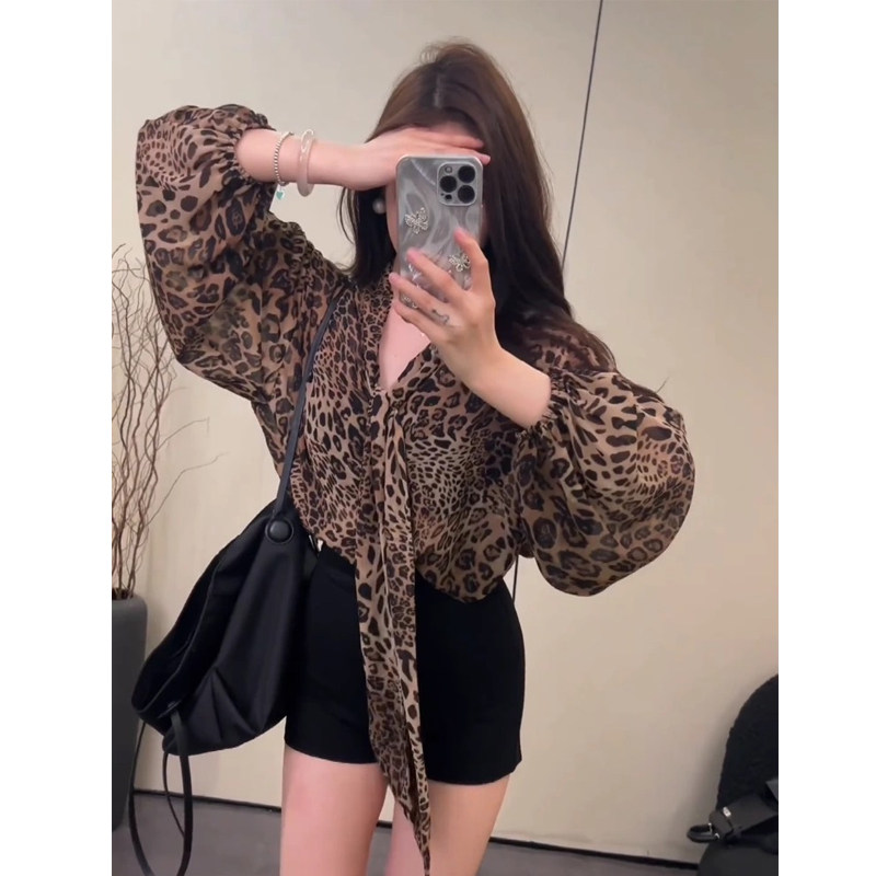 Шифоновая весенняя длинная рубашка, в американском стиле, V-образный вырез, средней длины
