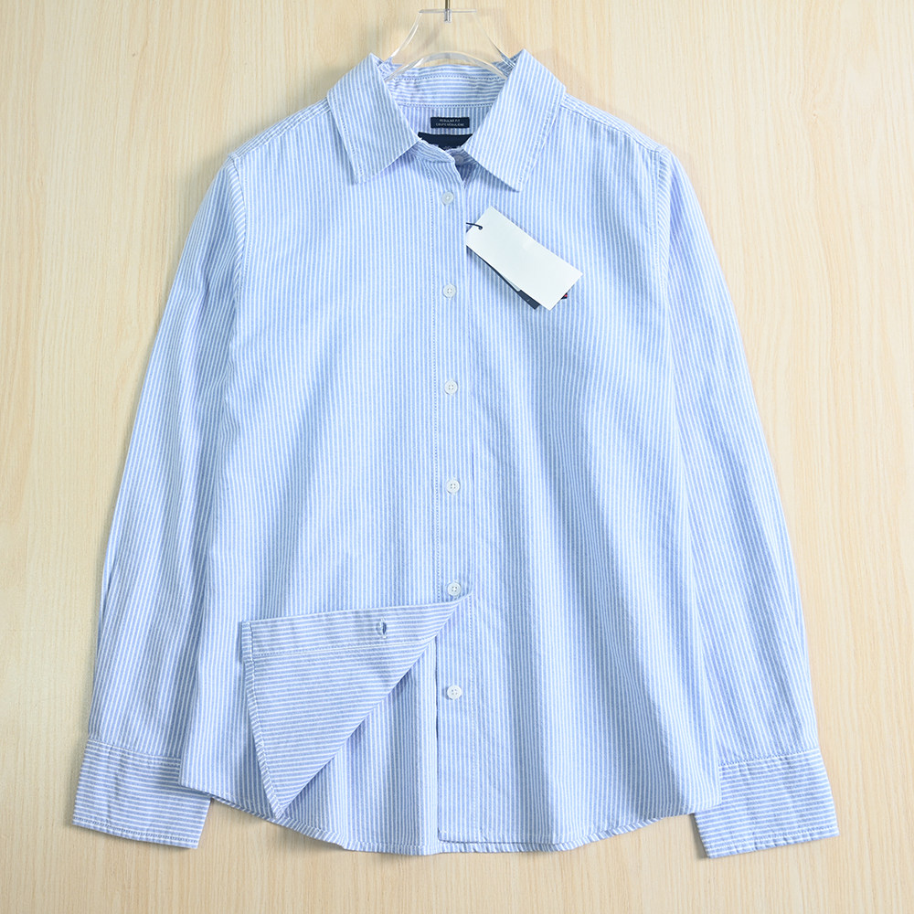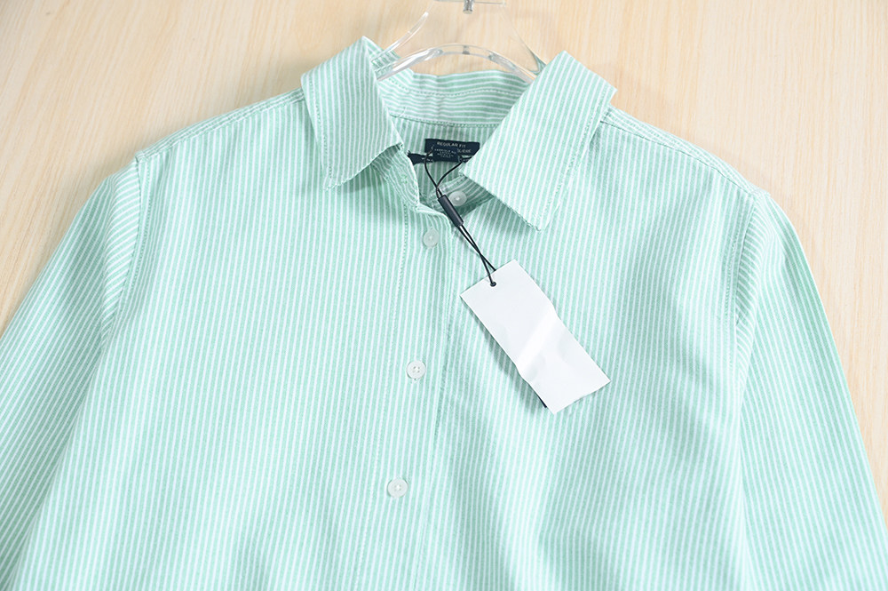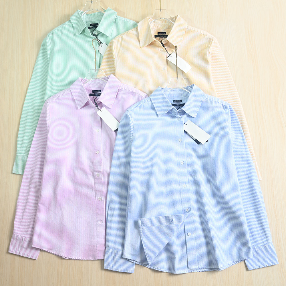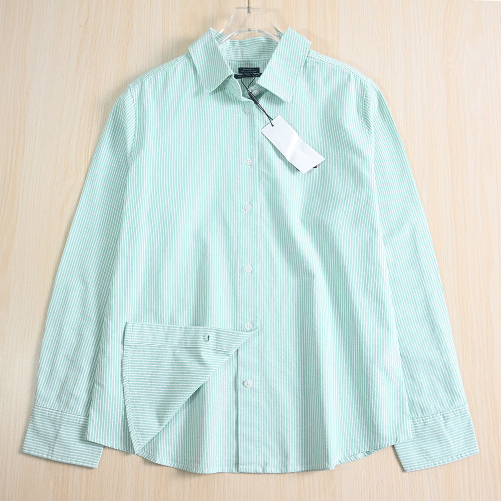 Siqi Женский женский 9/2 MEI Качество отварка, качество, полосатый хлопковый лацлен, длинная оксфордская рубашка оксфорда
