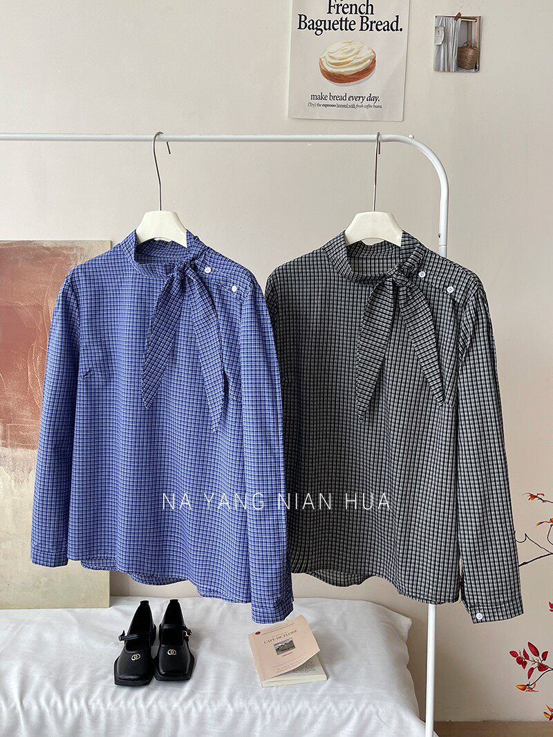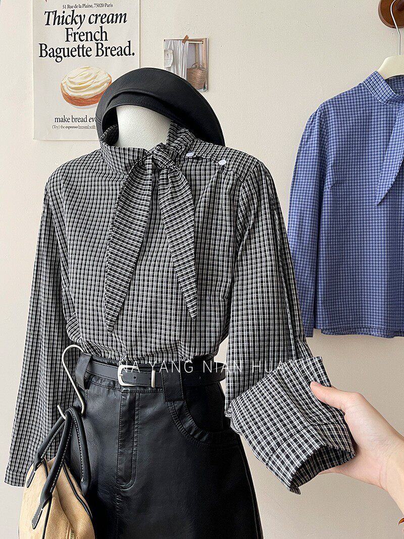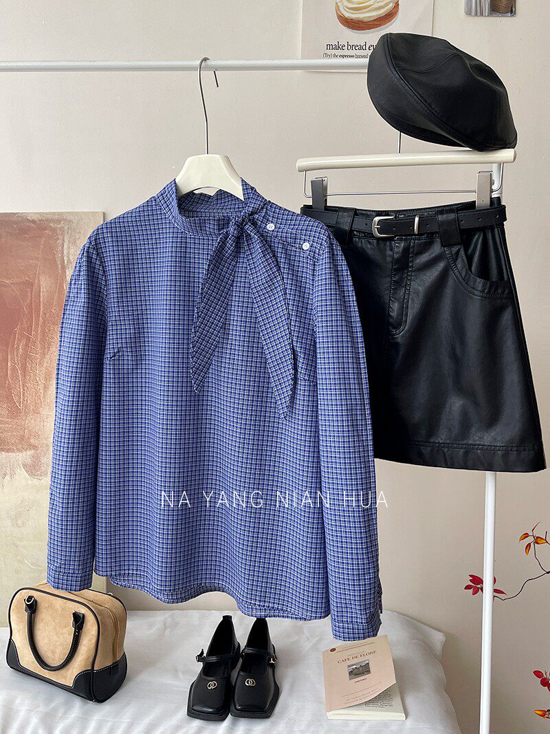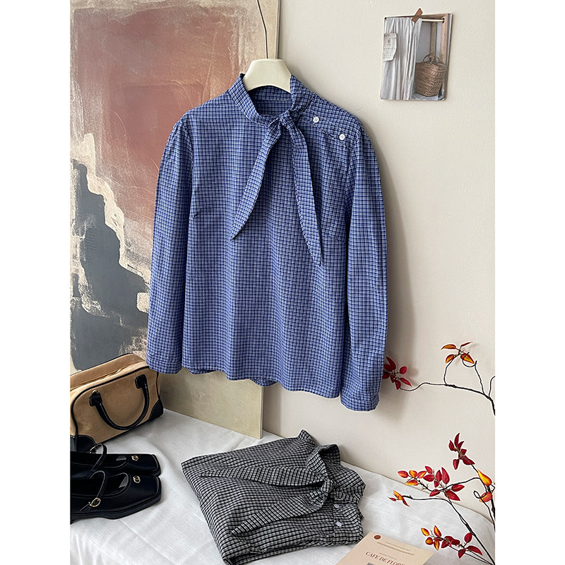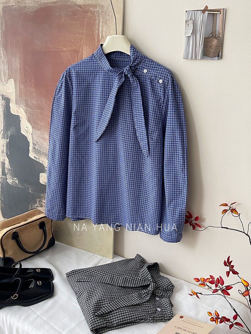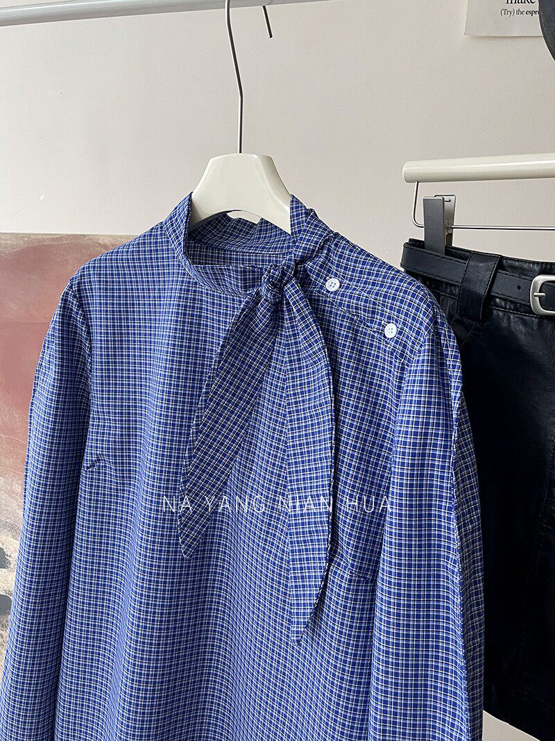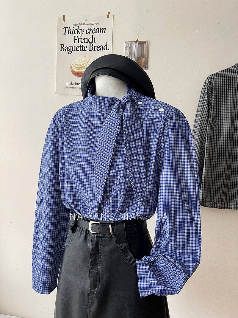 Ретро галстук-бабочка, синяя осенняя дизайнерская рубашка для отдыха, японские и корейские, французский стиль, в западном стиле