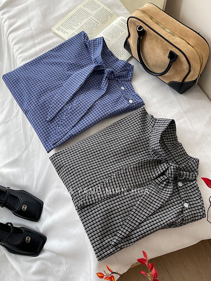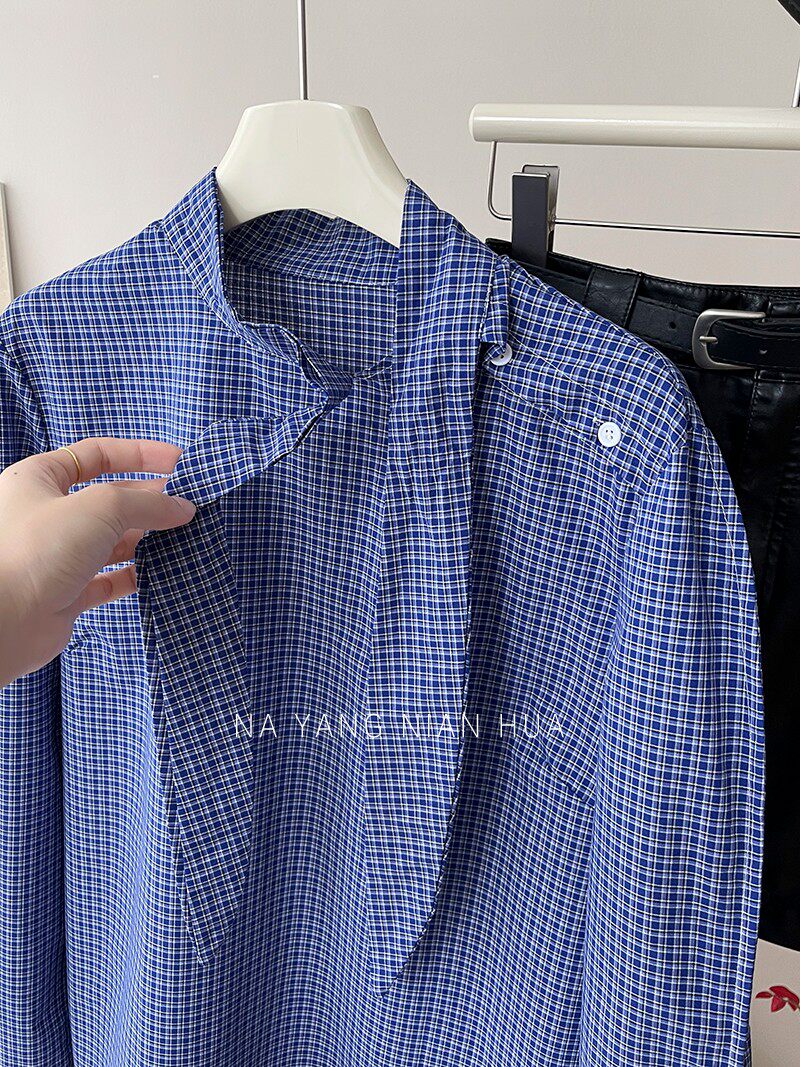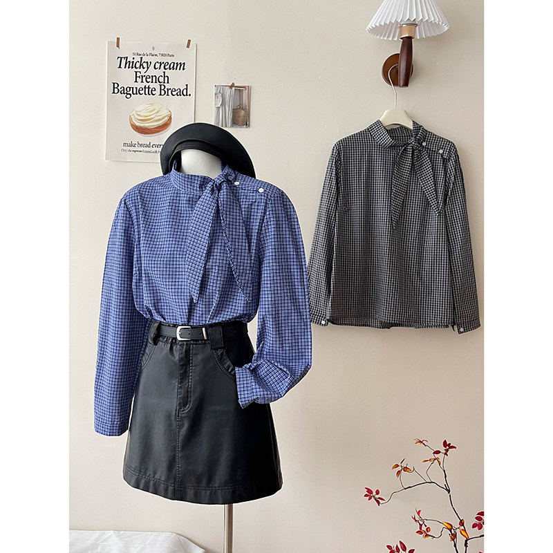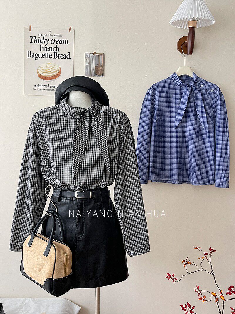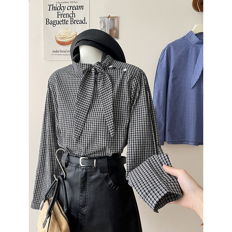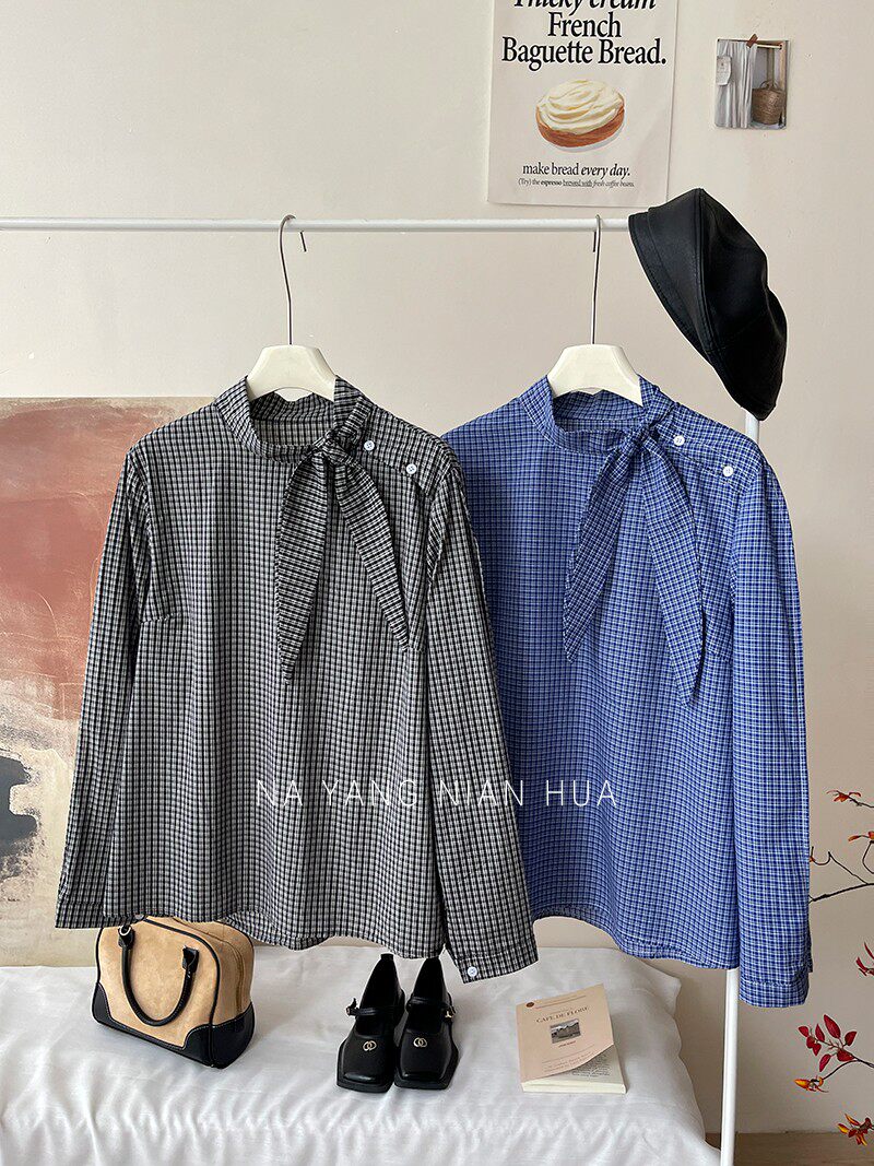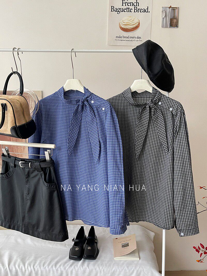 Ретро галстук-бабочка, синяя осенняя дизайнерская рубашка для отдыха, японские и корейские, французский стиль, в западном стиле