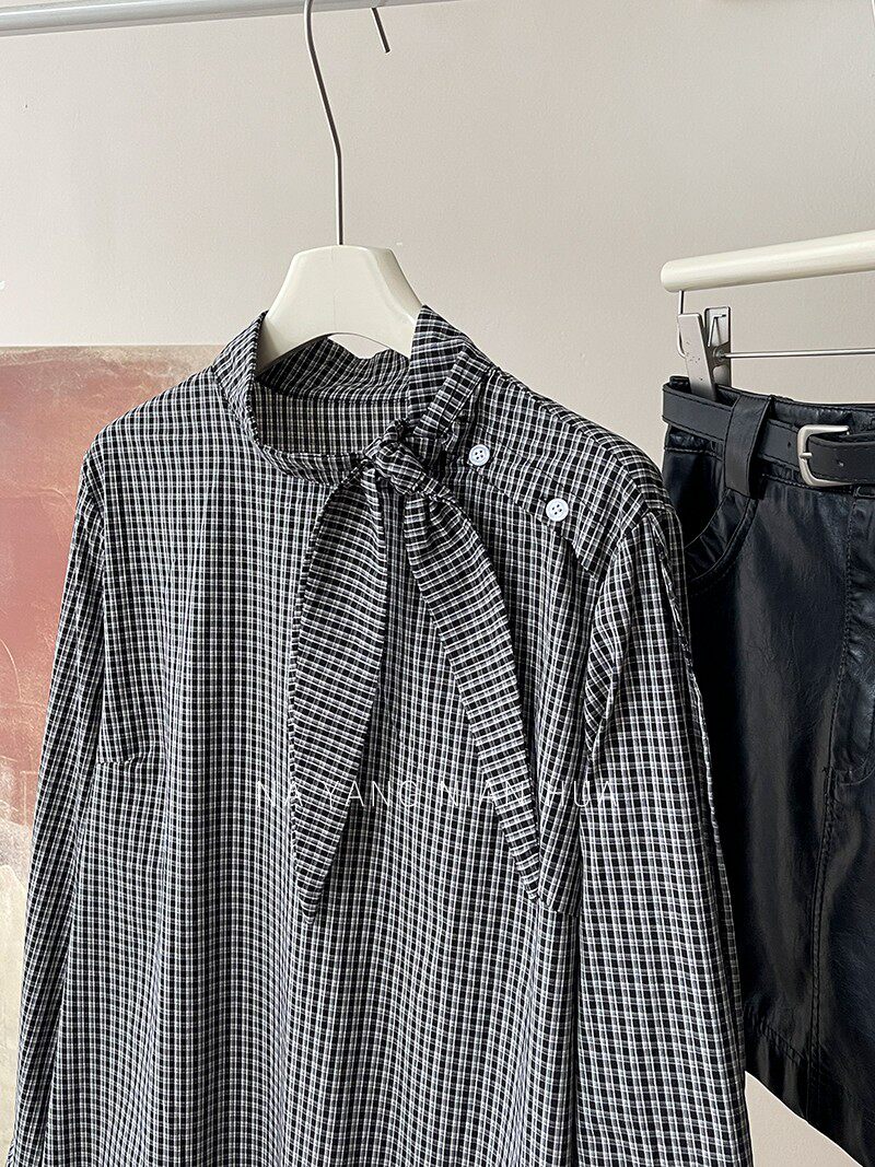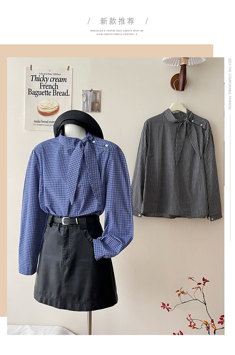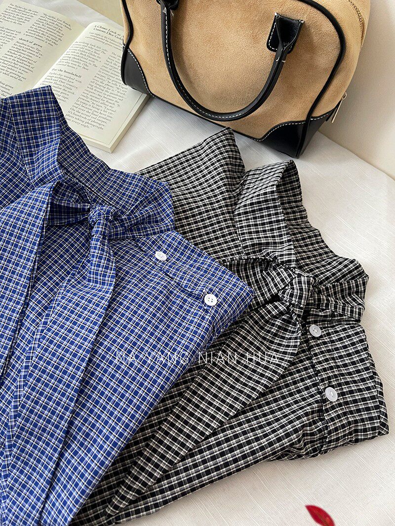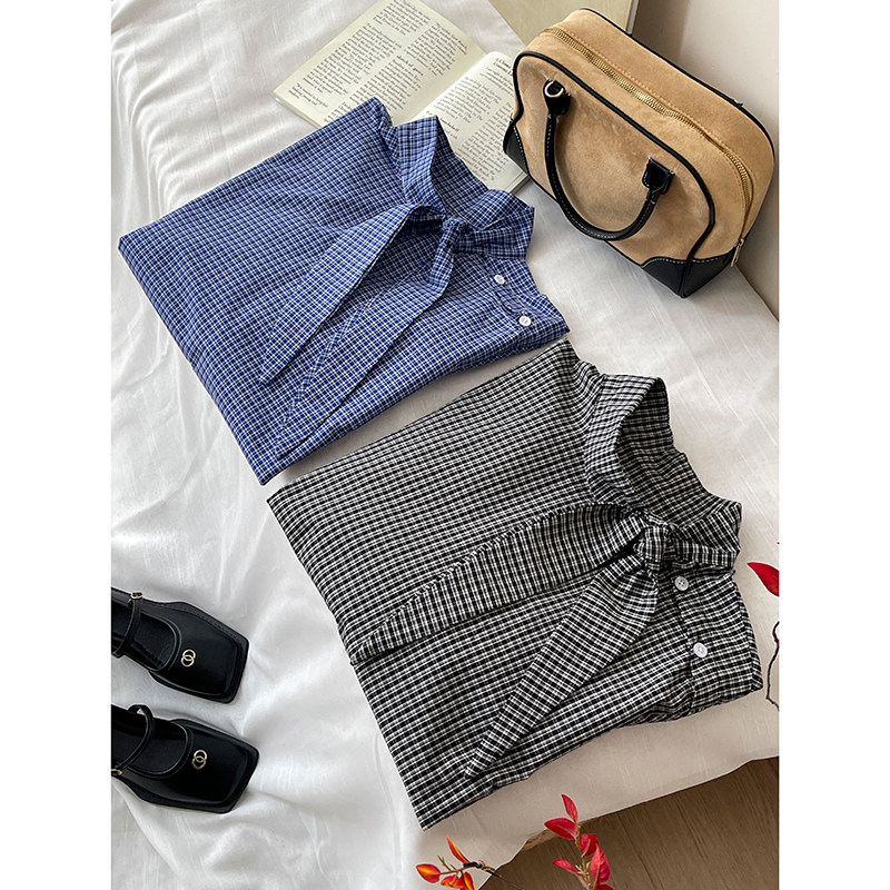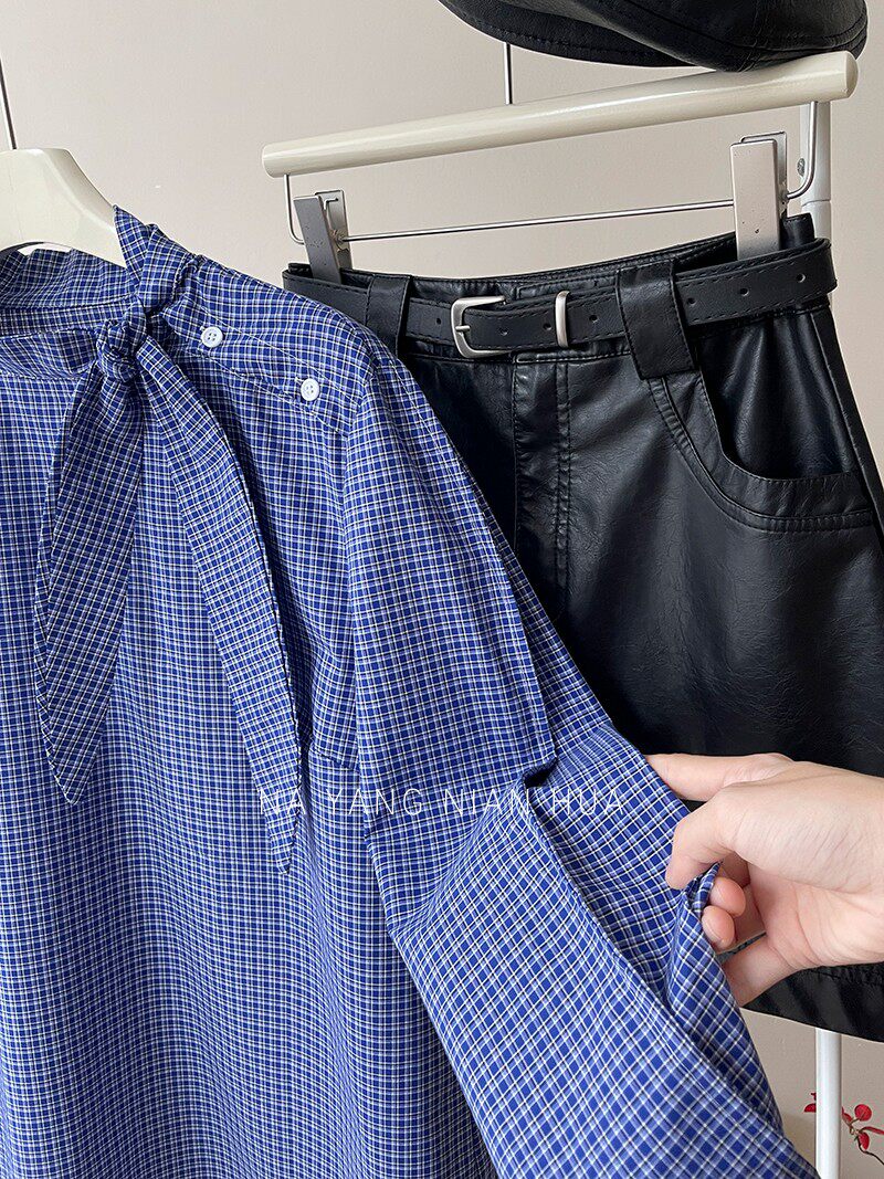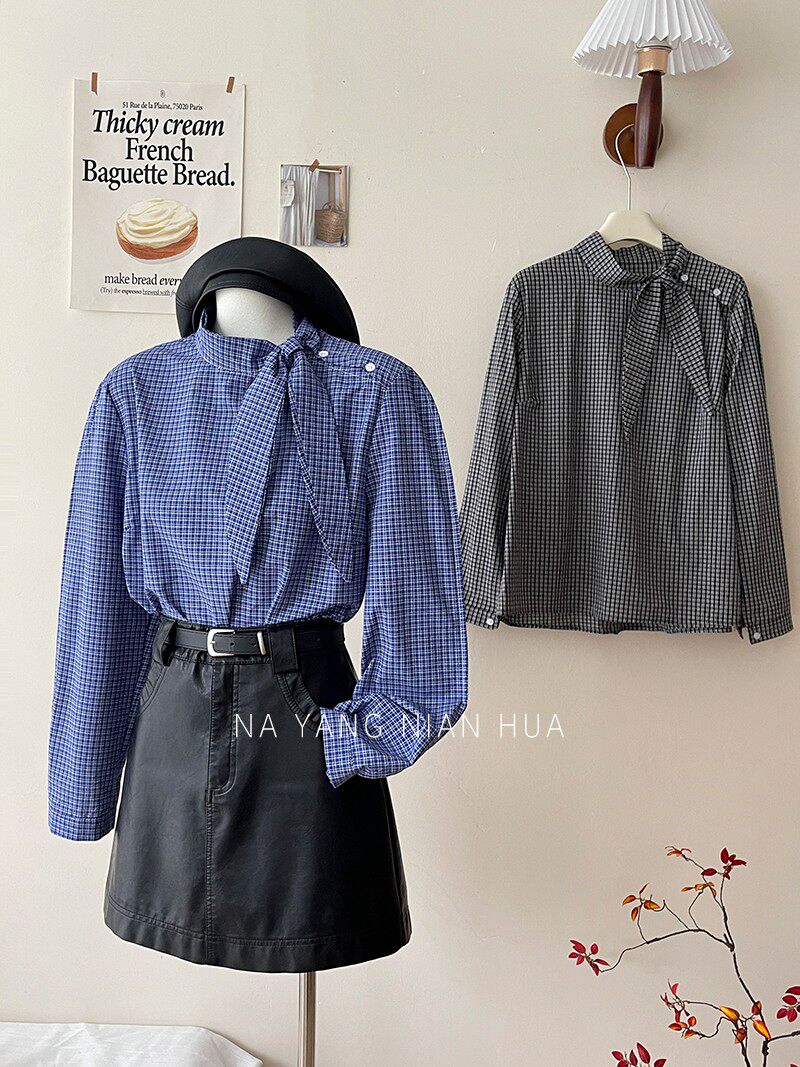 Ретро галстук-бабочка, синяя осенняя дизайнерская рубашка для отдыха, японские и корейские, французский стиль, в западном стиле