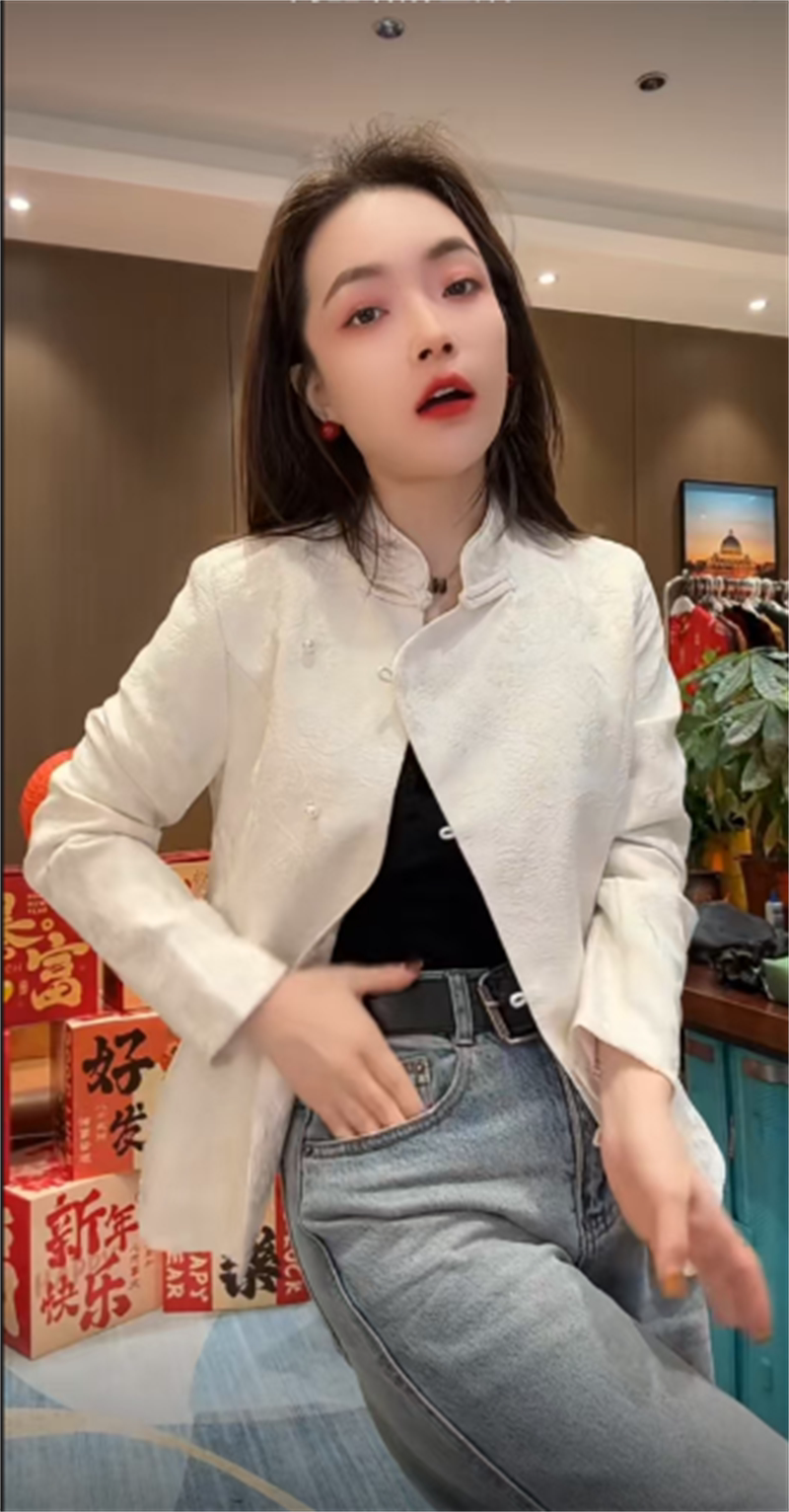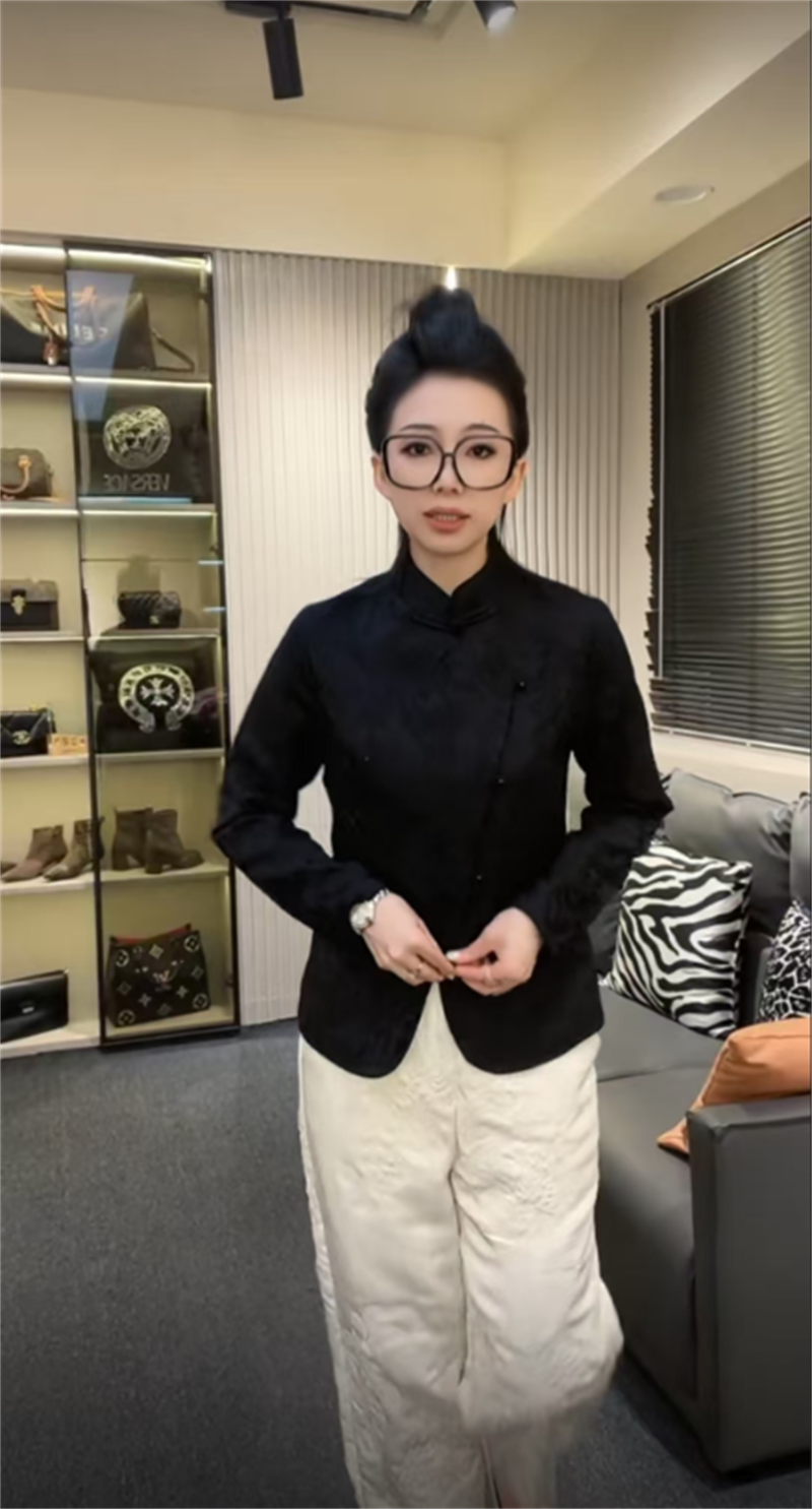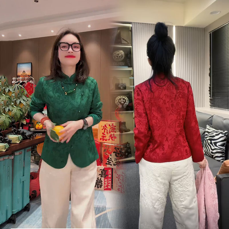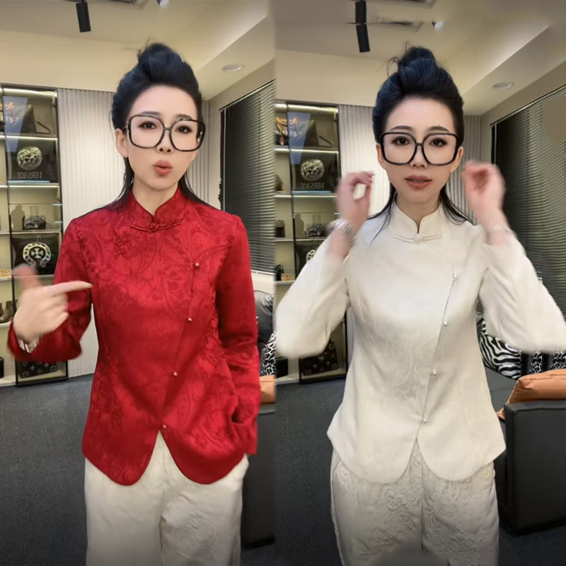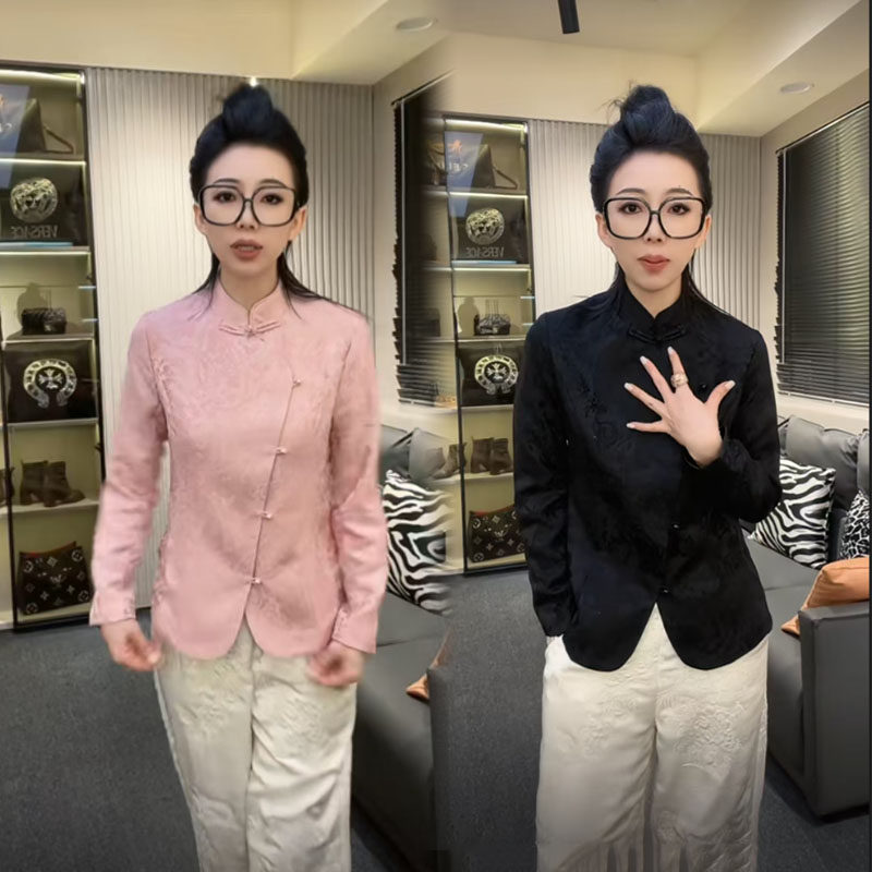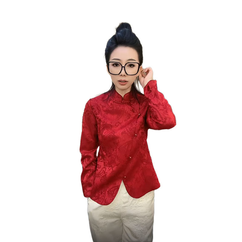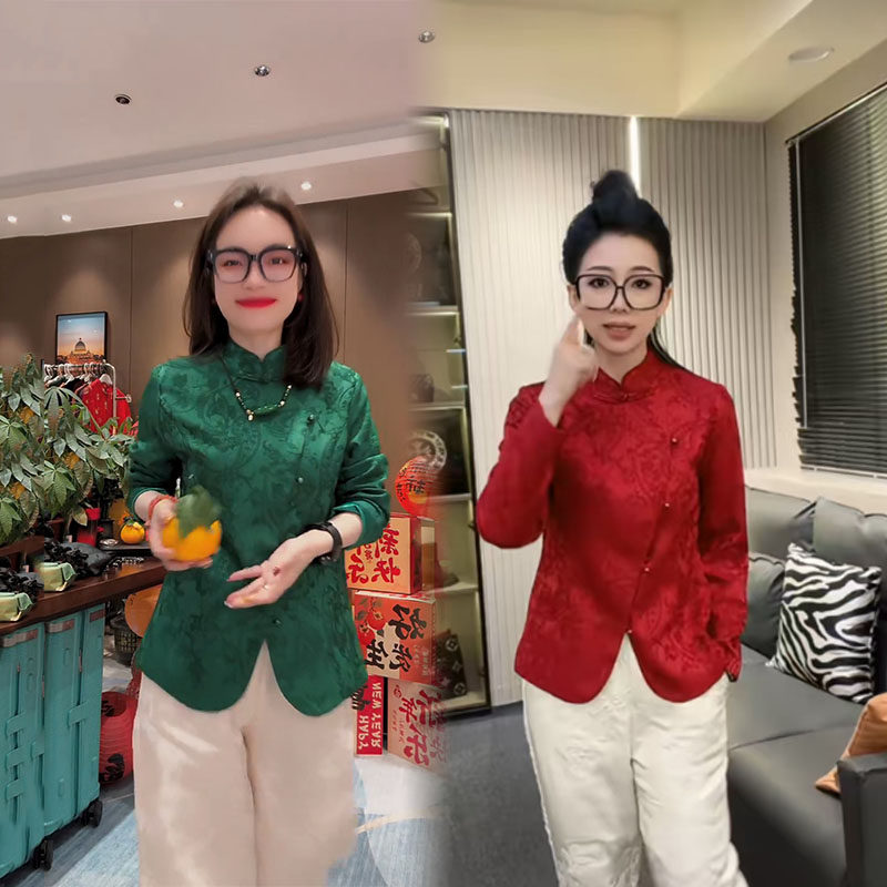 Жаккардовая атласная рубашка на пуговицах в национальном стиле для женщин 2025 года, ранняя весна, новый стиль, шикарный ретро-западный стиль, однотонный топ для похудения