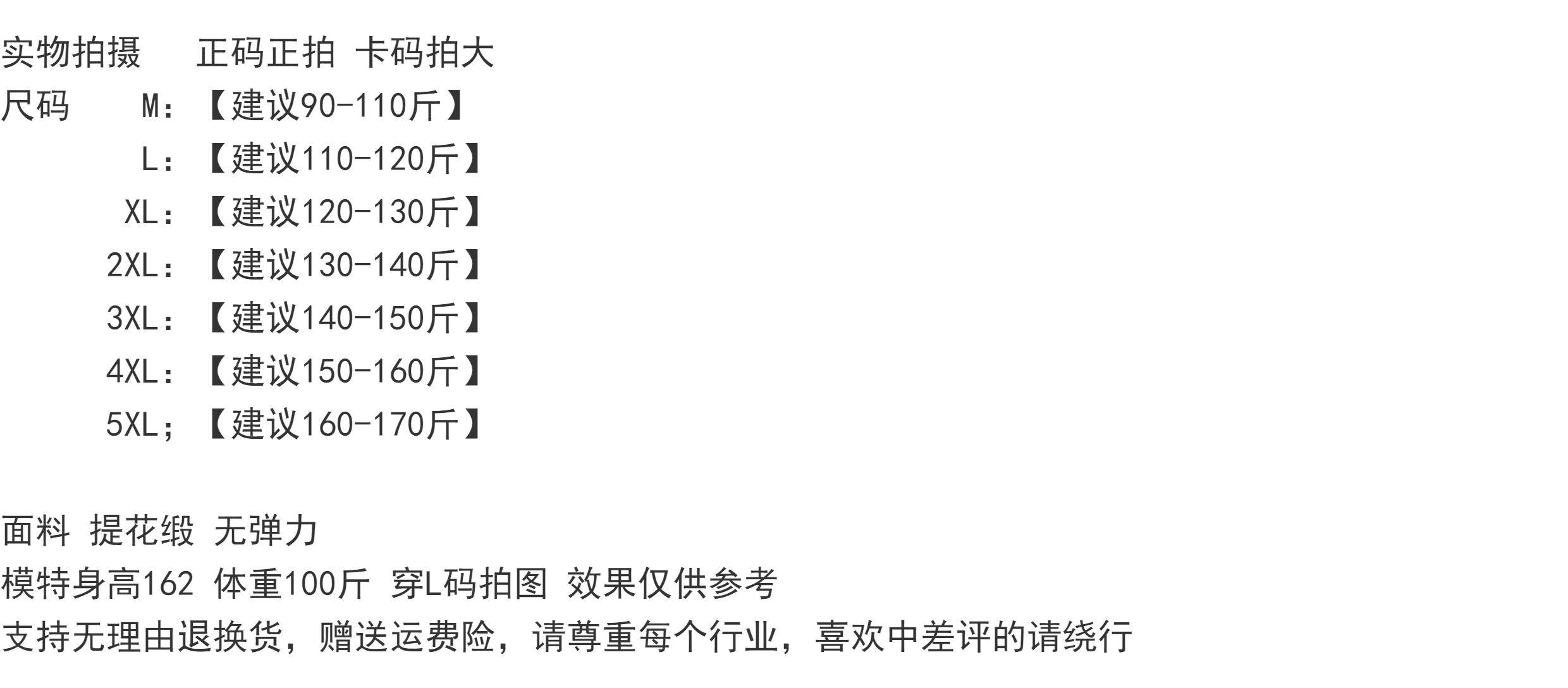 | Размер: | M [Предложение 90-110 Catties], L [Предложение 110-120 Catties], XL [предложение 120-130 Catties], 2xl [предложение 130-140 Catties], 3xl [Предложение 140-150 Catties], 4xl [предложение 150-160 Catties], 5XL [рекомендуемый вес 160–170 фунтов] |