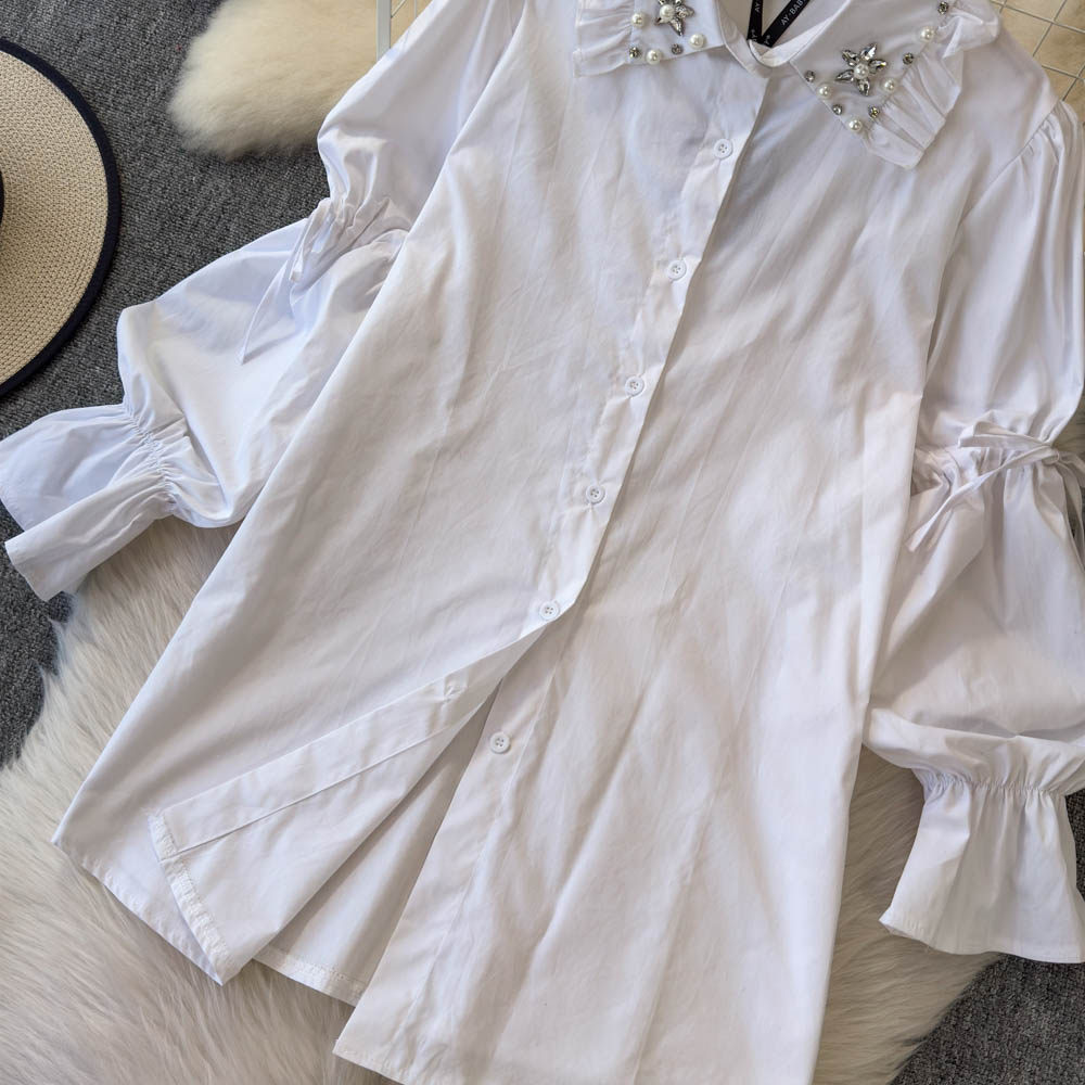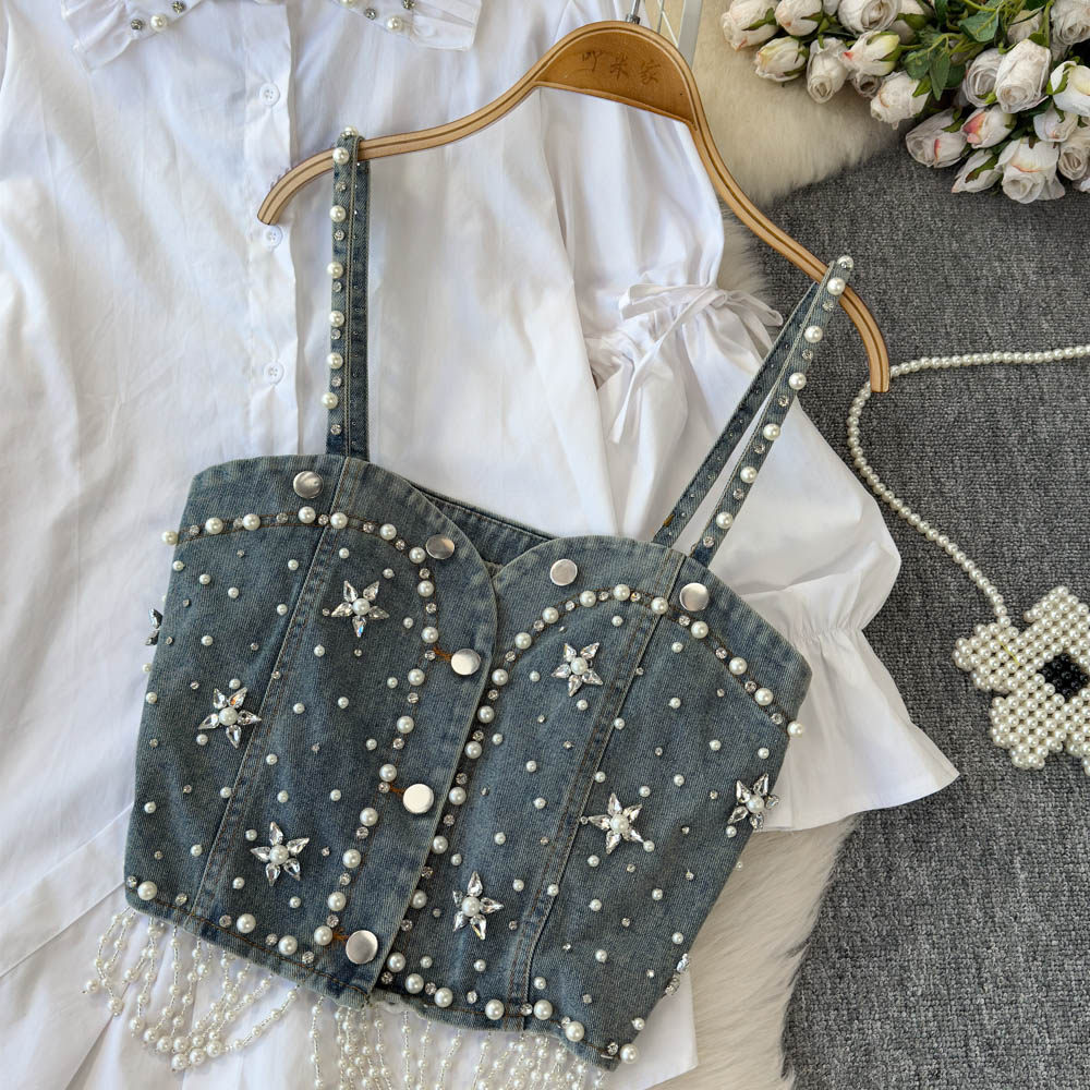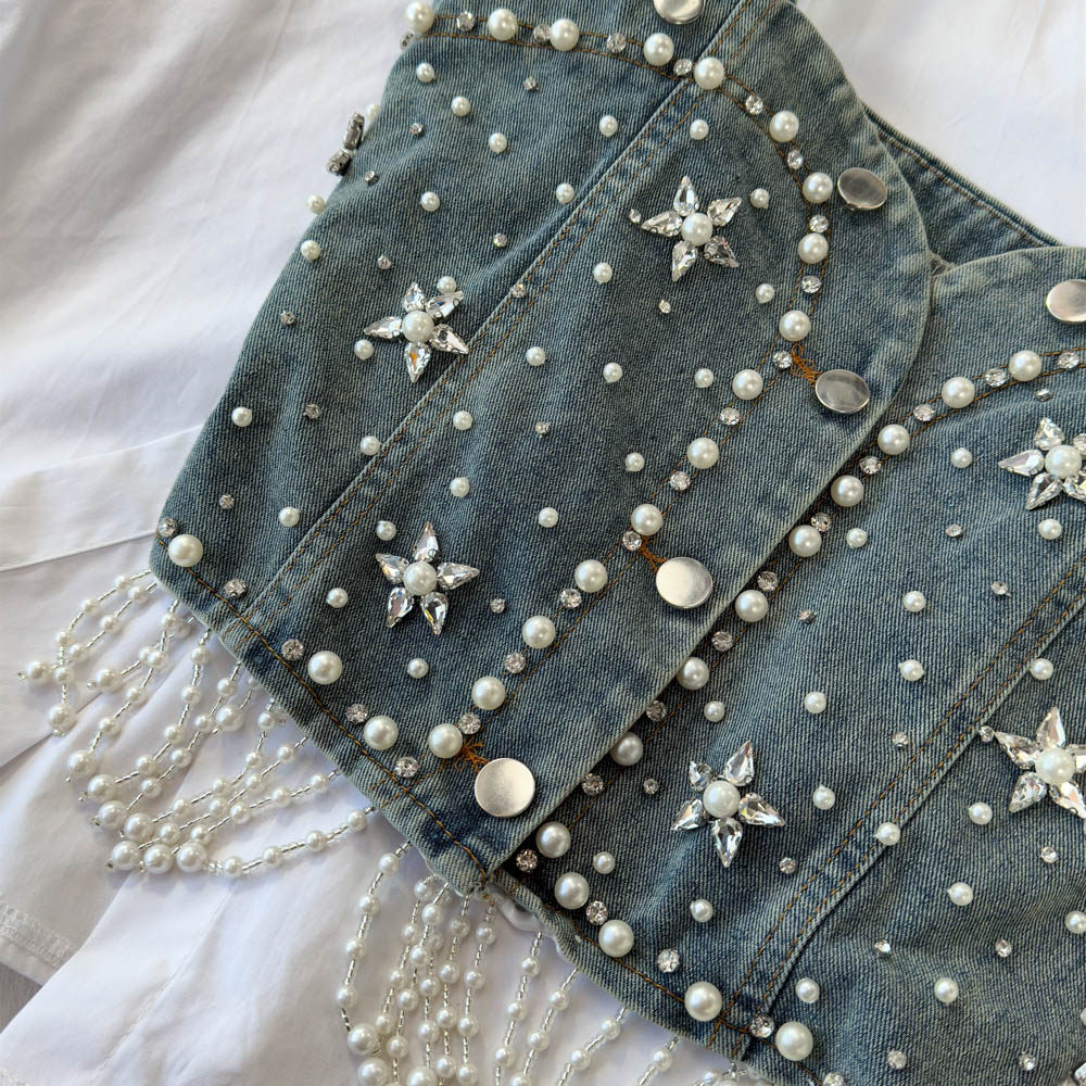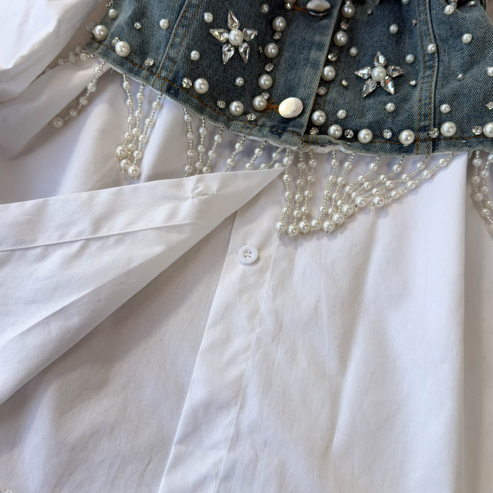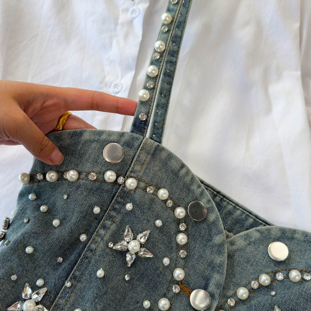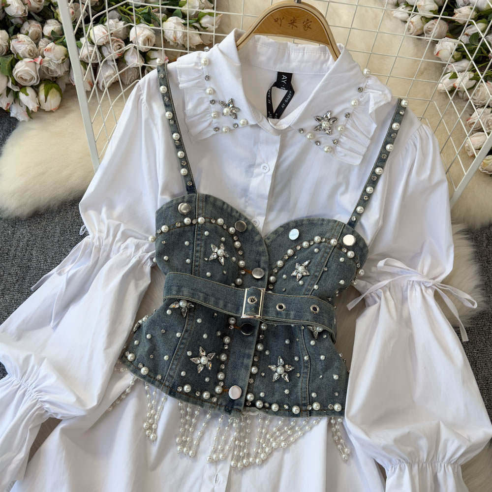 Ретро рубашка, фонарь, джинсовый топ с чашечками, комплект, с рукавом