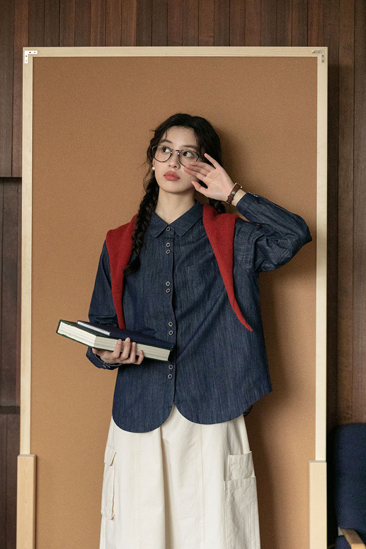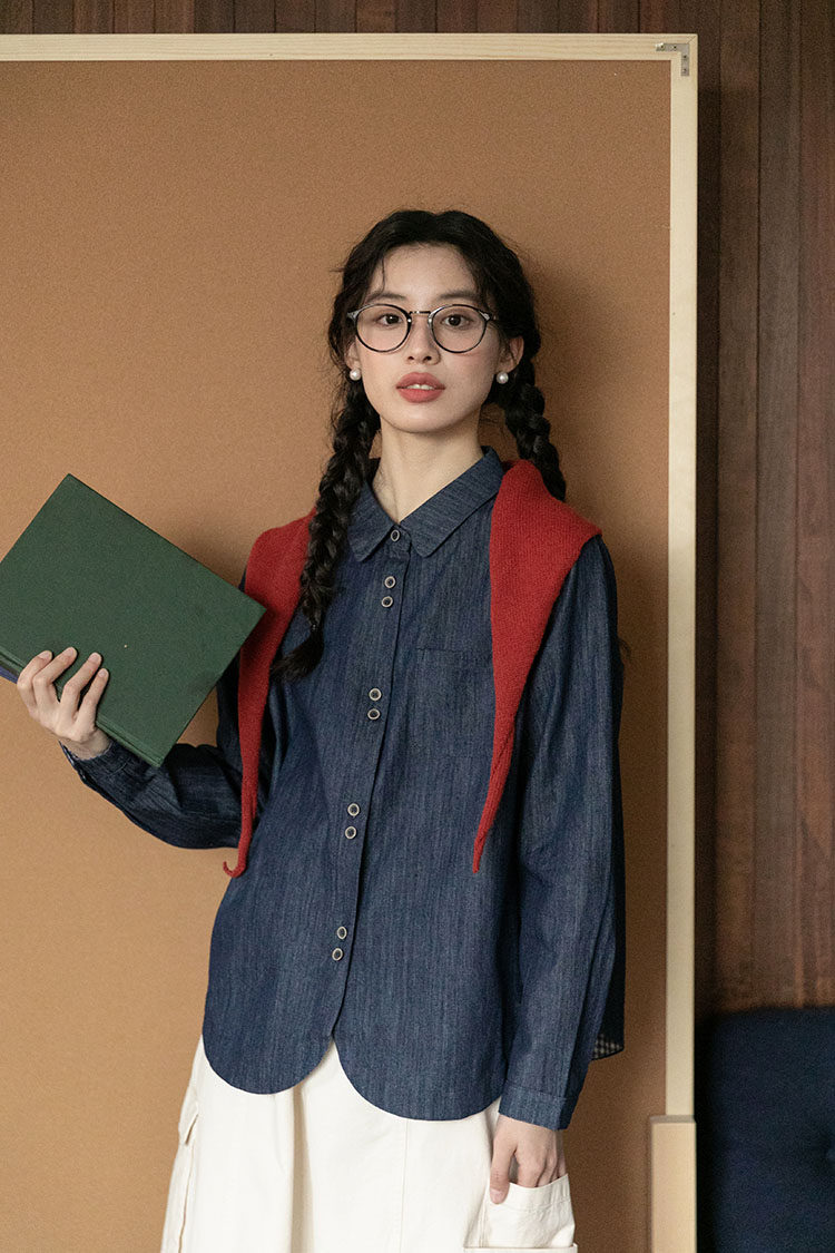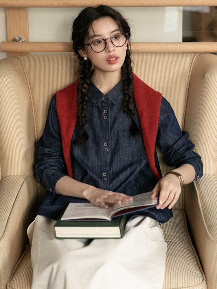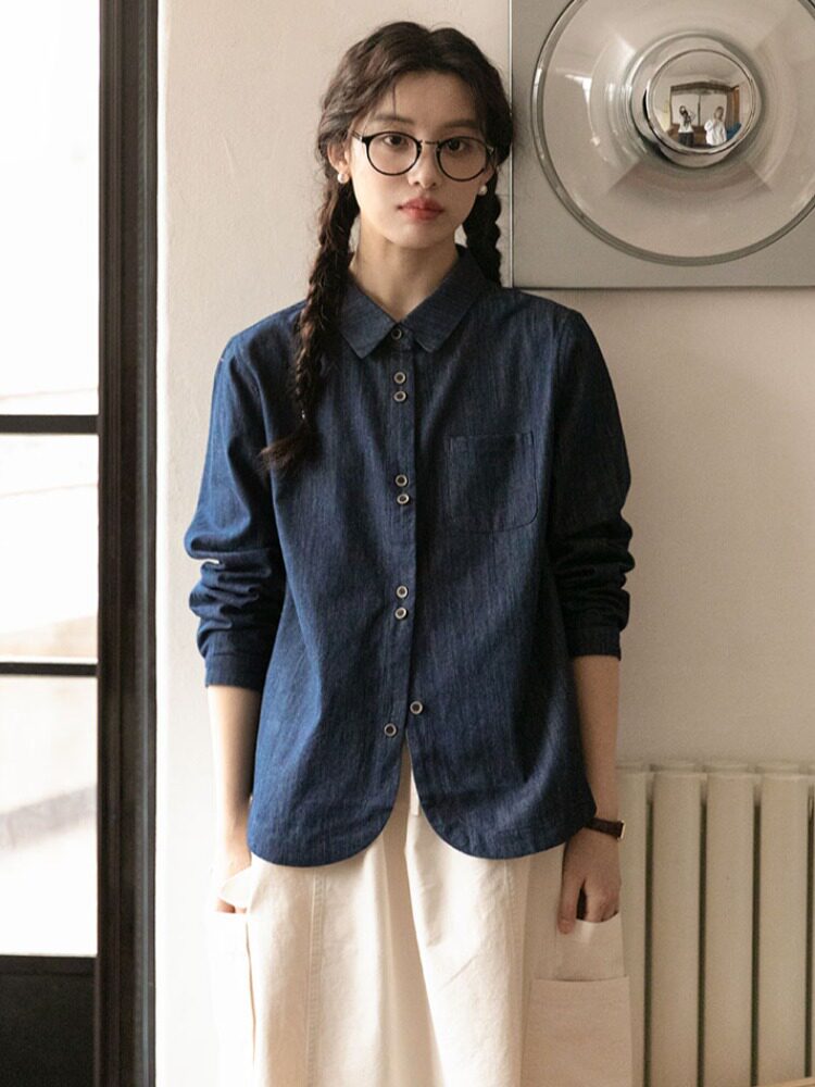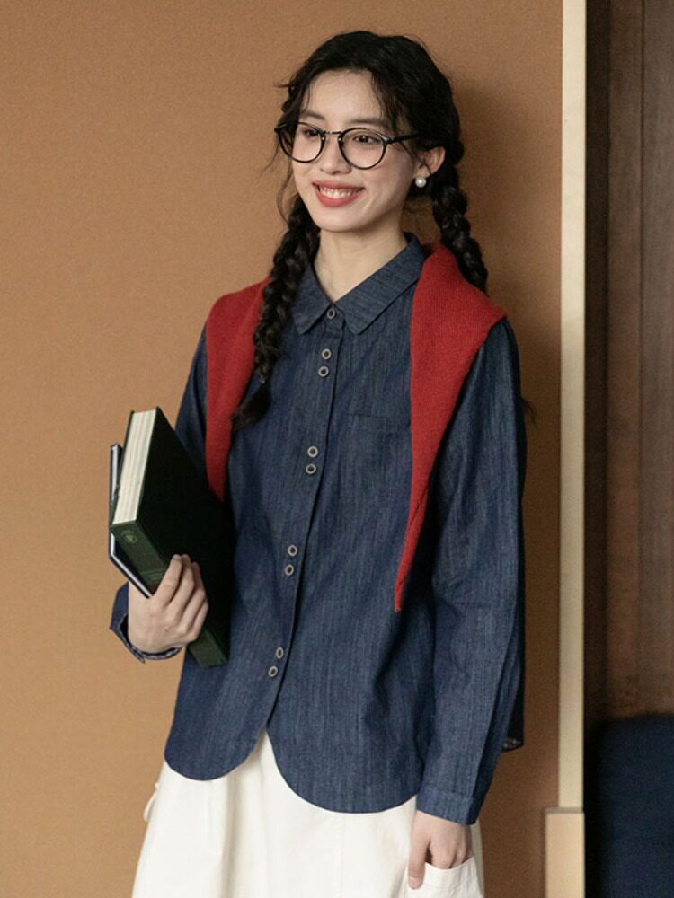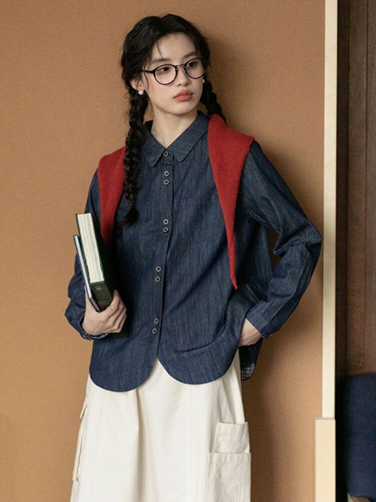 Японская осенняя рубашка, лонгслив, в западном стиле
