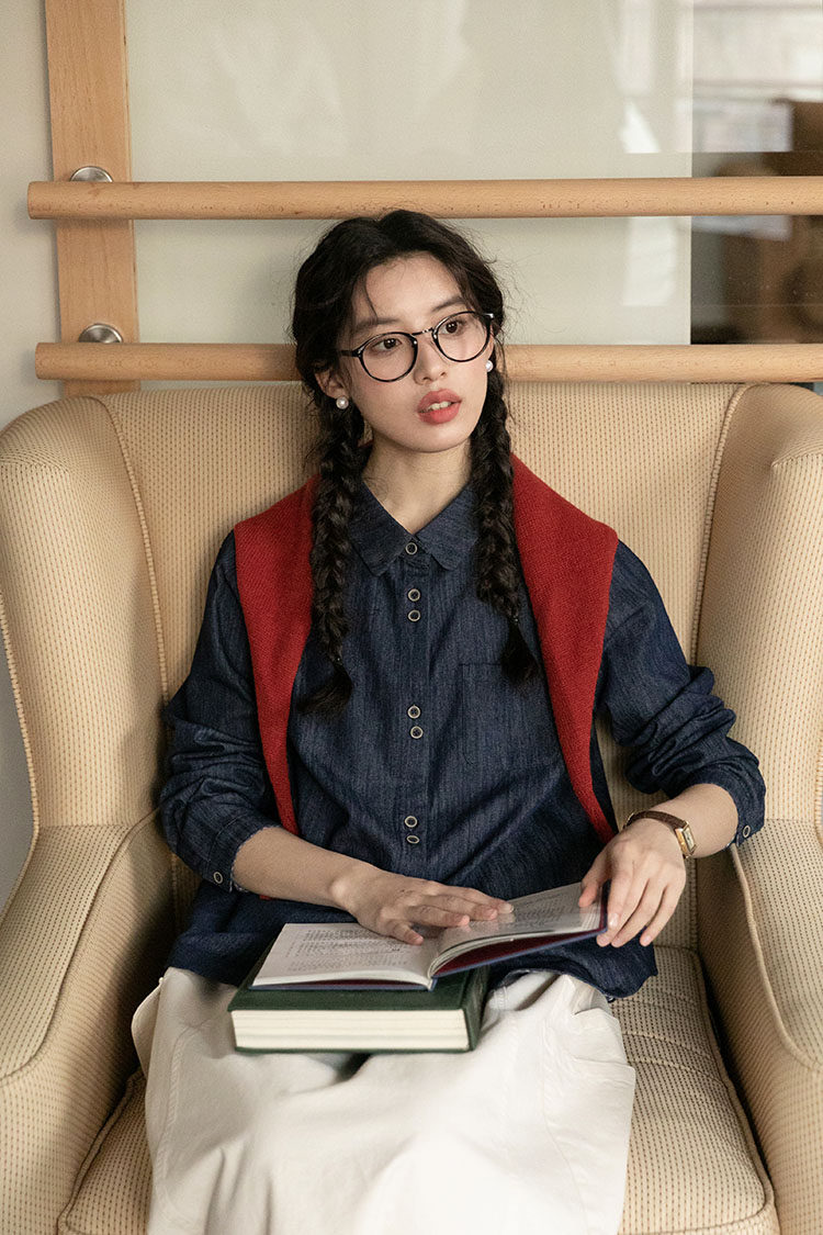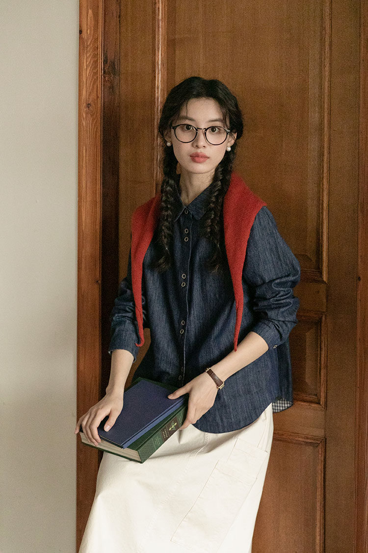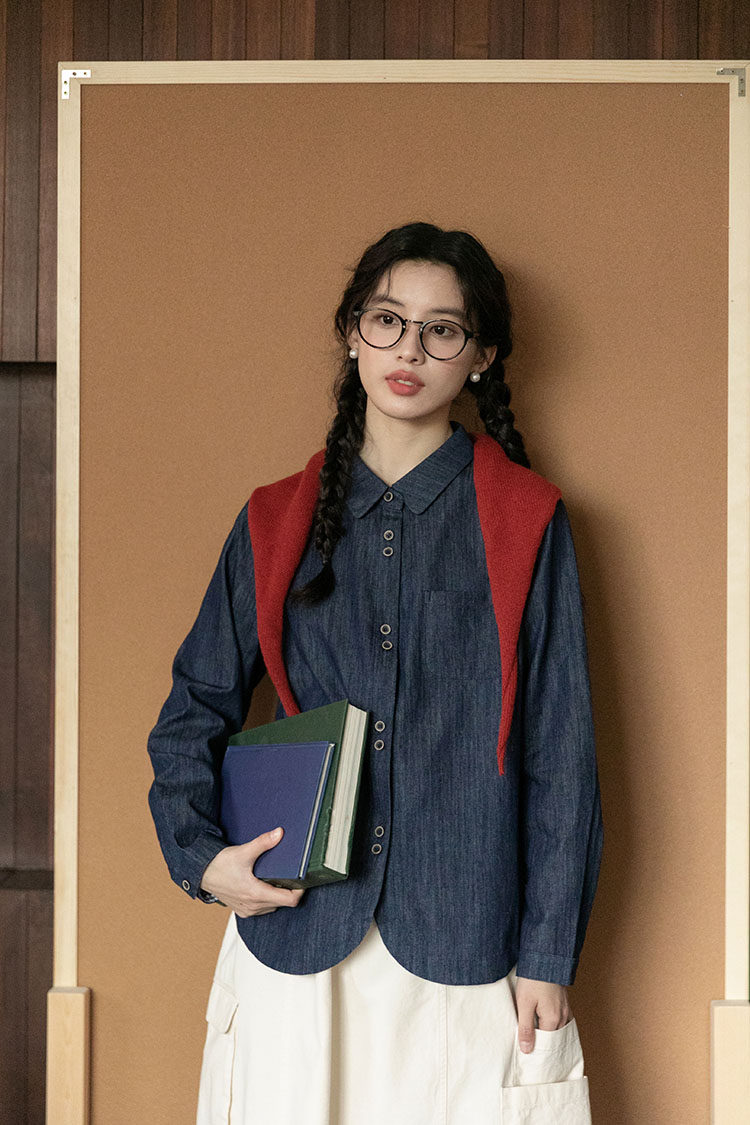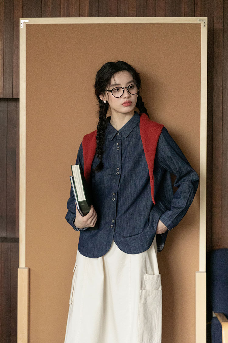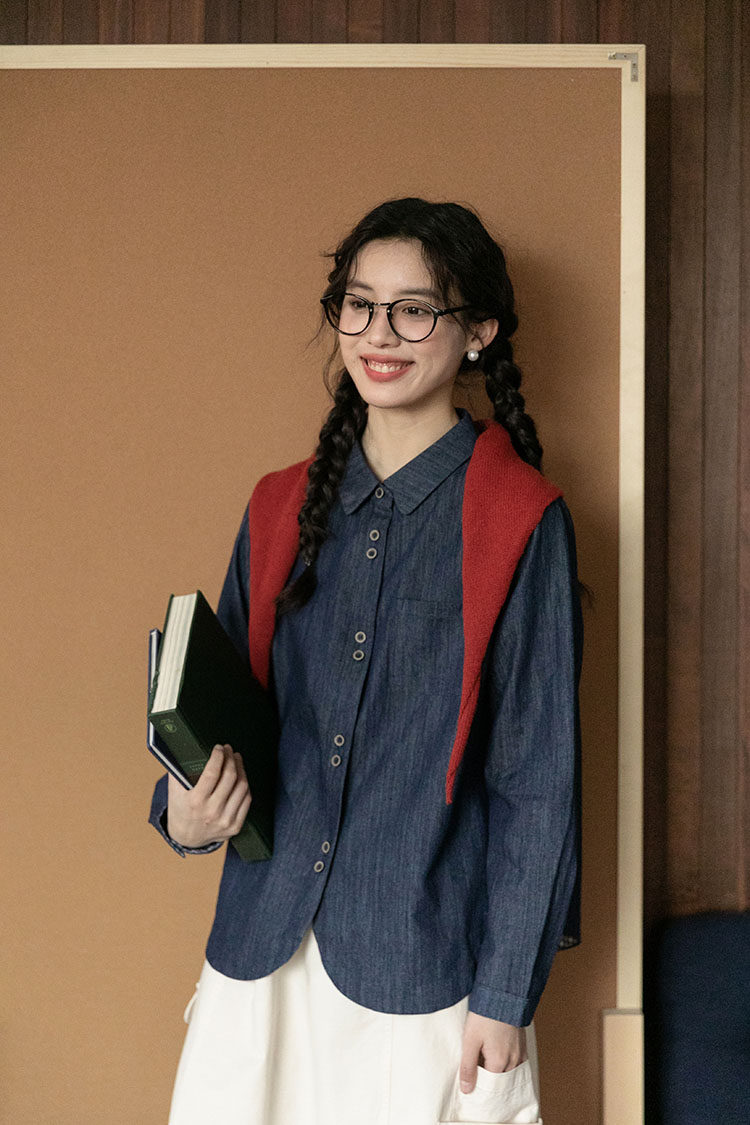 Японская осенняя рубашка, лонгслив, в западном стиле