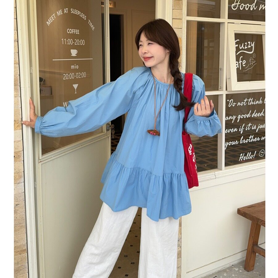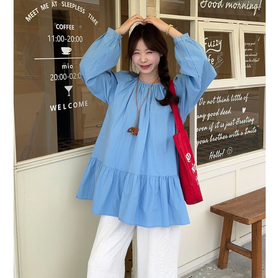 Синяя милая весенняя рубашка, длинная кукла, большой размер, средней длины