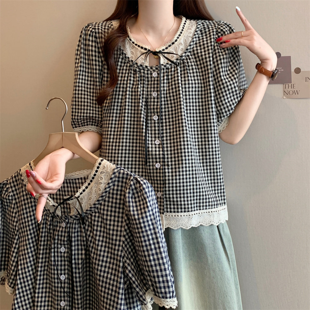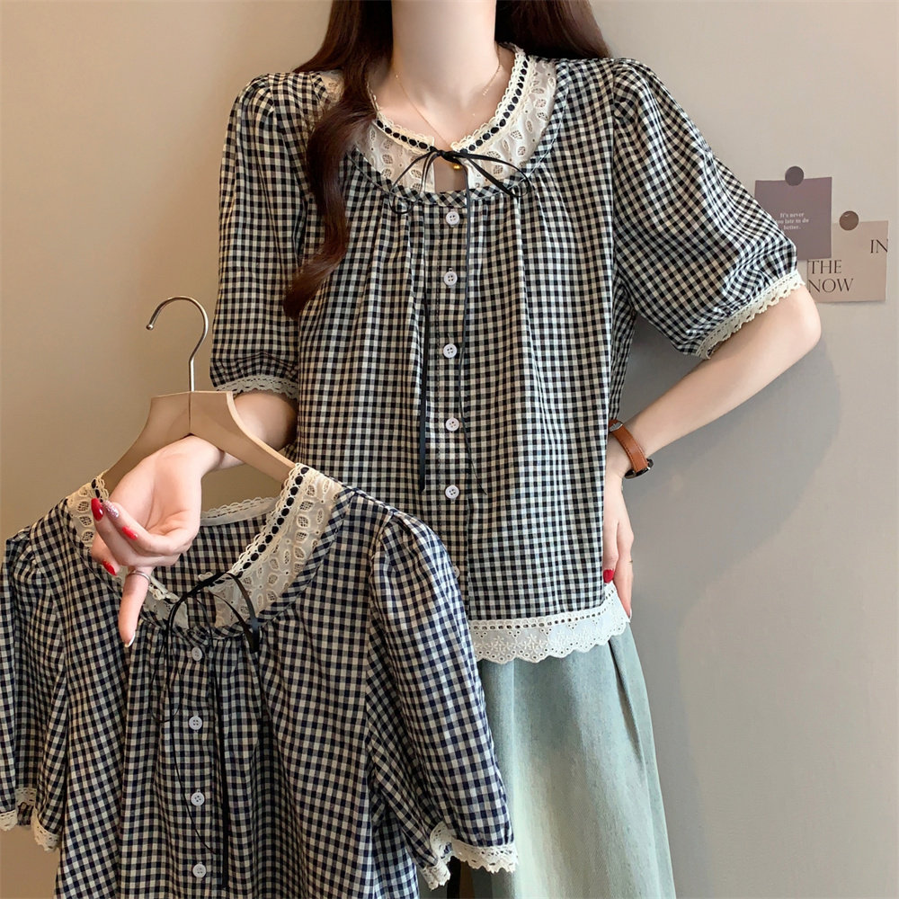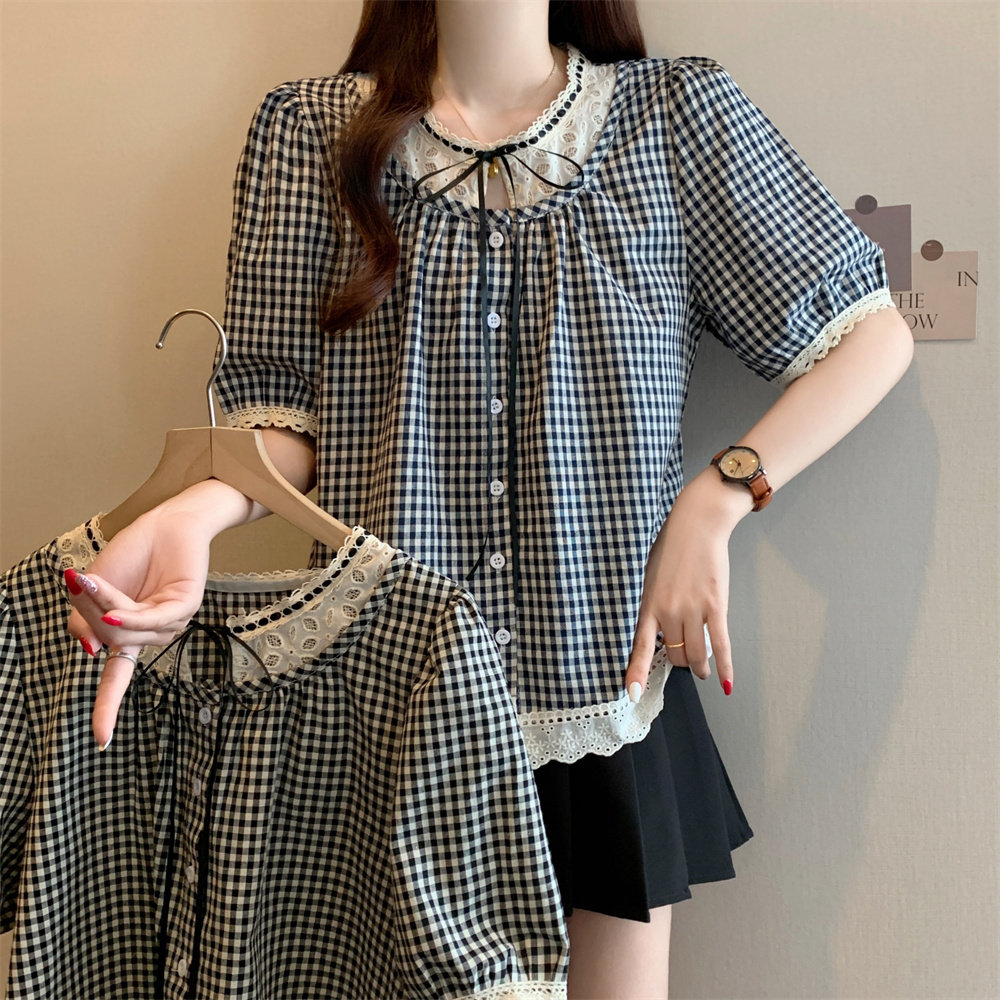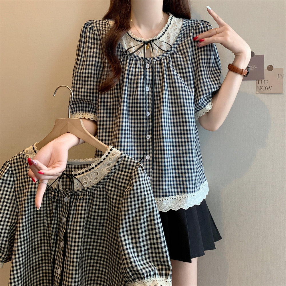 Летняя кружевная рубашка с круглым воротником, большой размер, кружевное платье, оверсайз