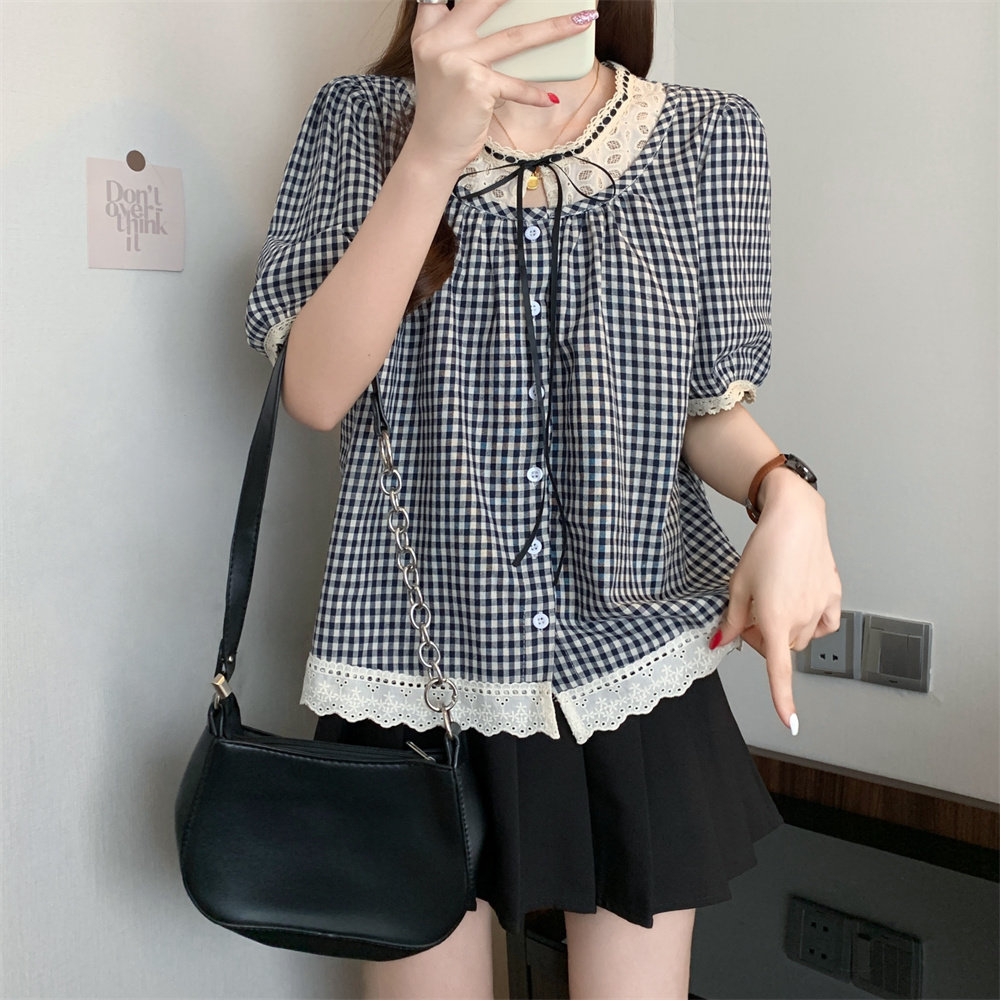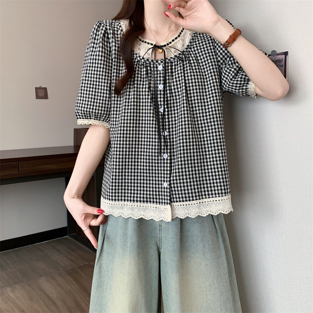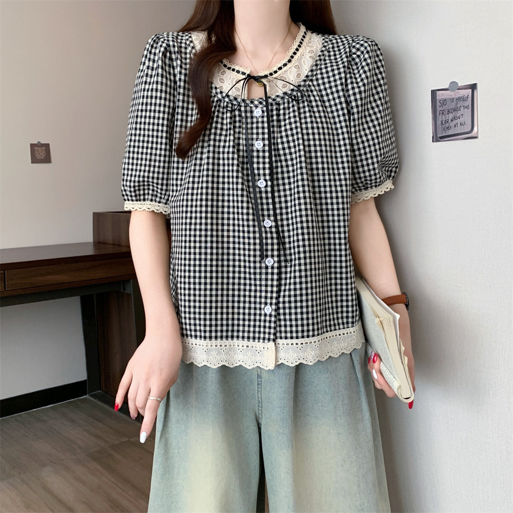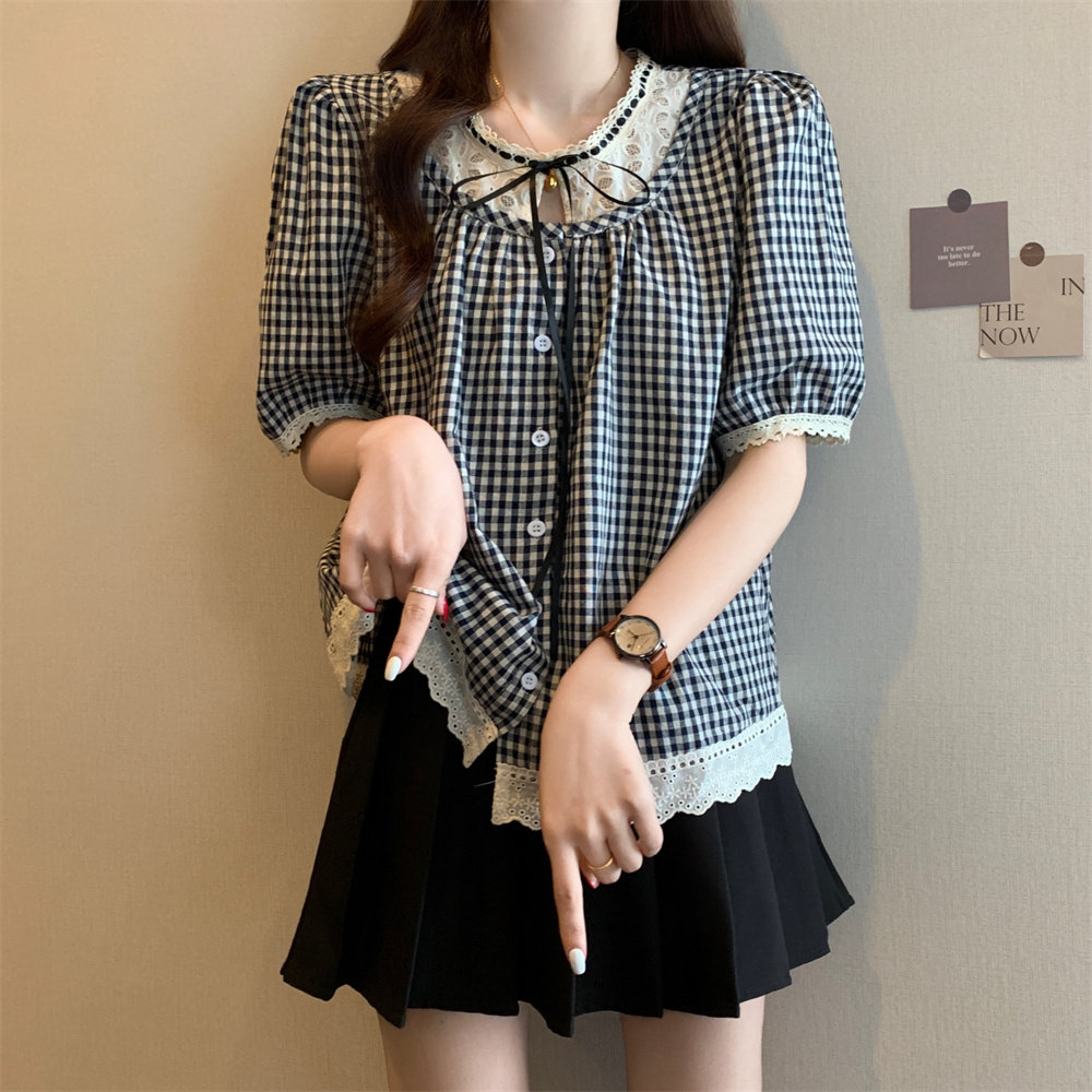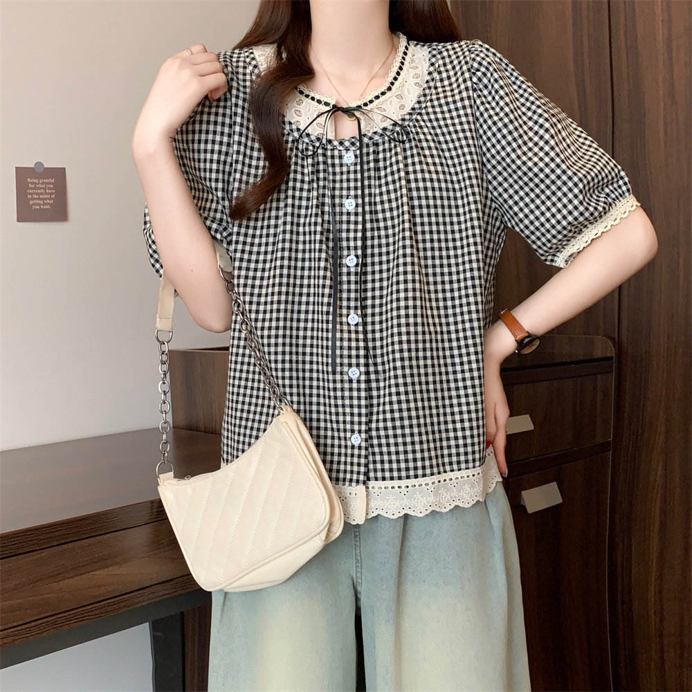 Летняя кружевная рубашка с круглым воротником, большой размер, кружевное платье, оверсайз