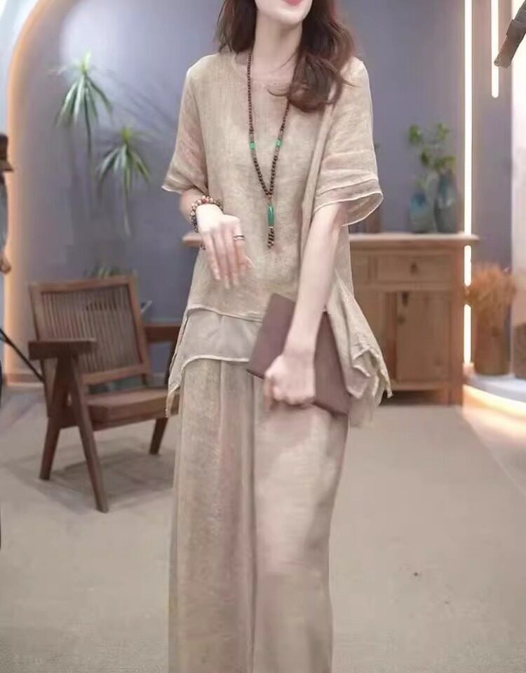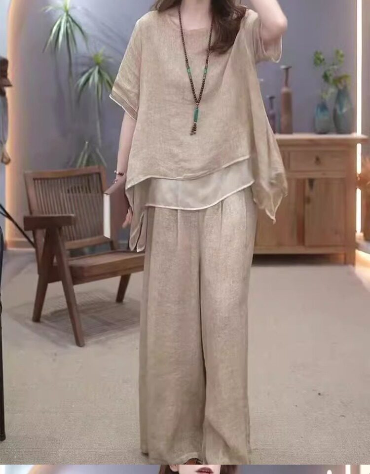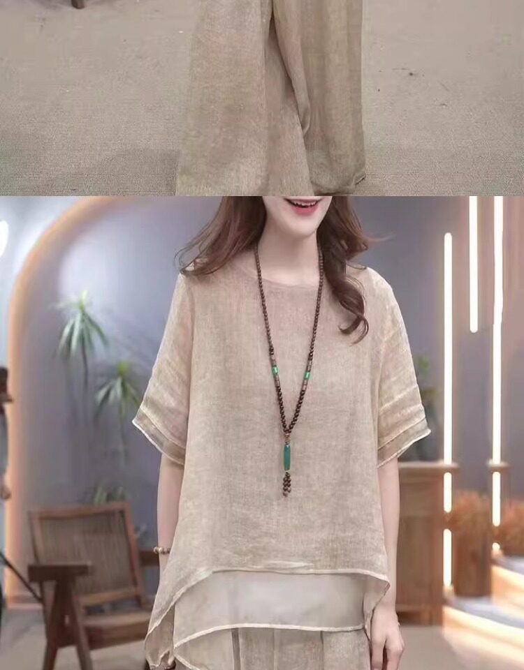 Этнический комплект, из хлопка и льна, этнический стиль, свободный крой