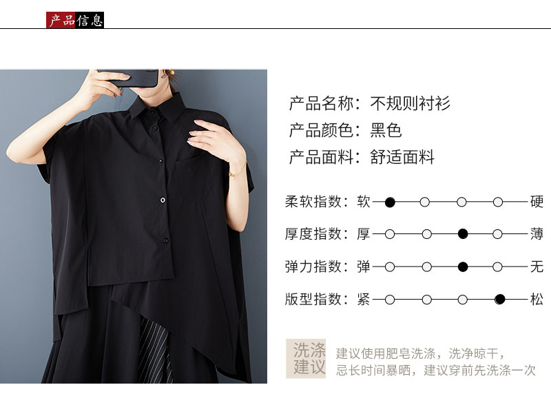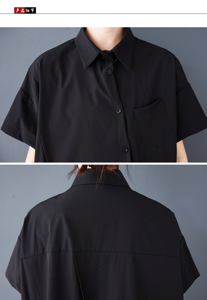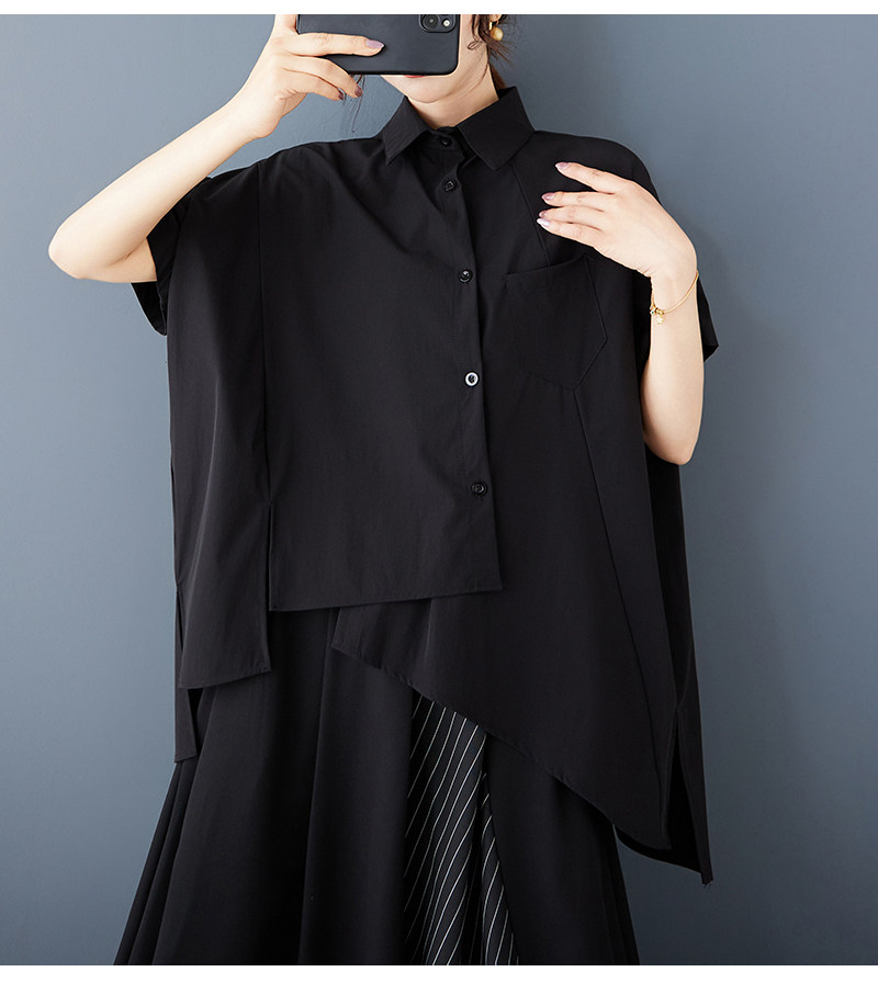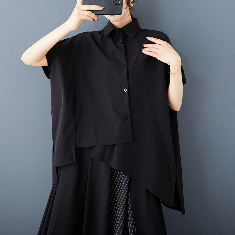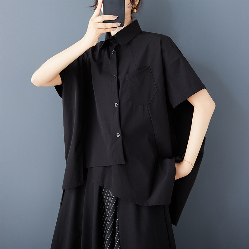 Черная летняя небольшая дизайнерская модная рубашка, тренд сезона, свободный крой, оверсайз