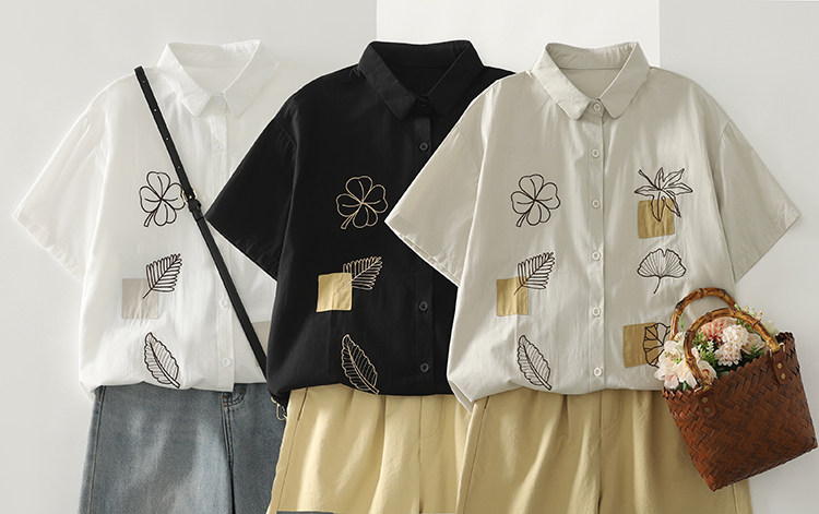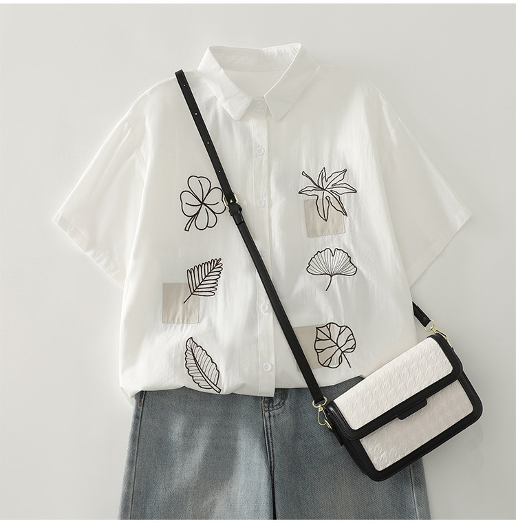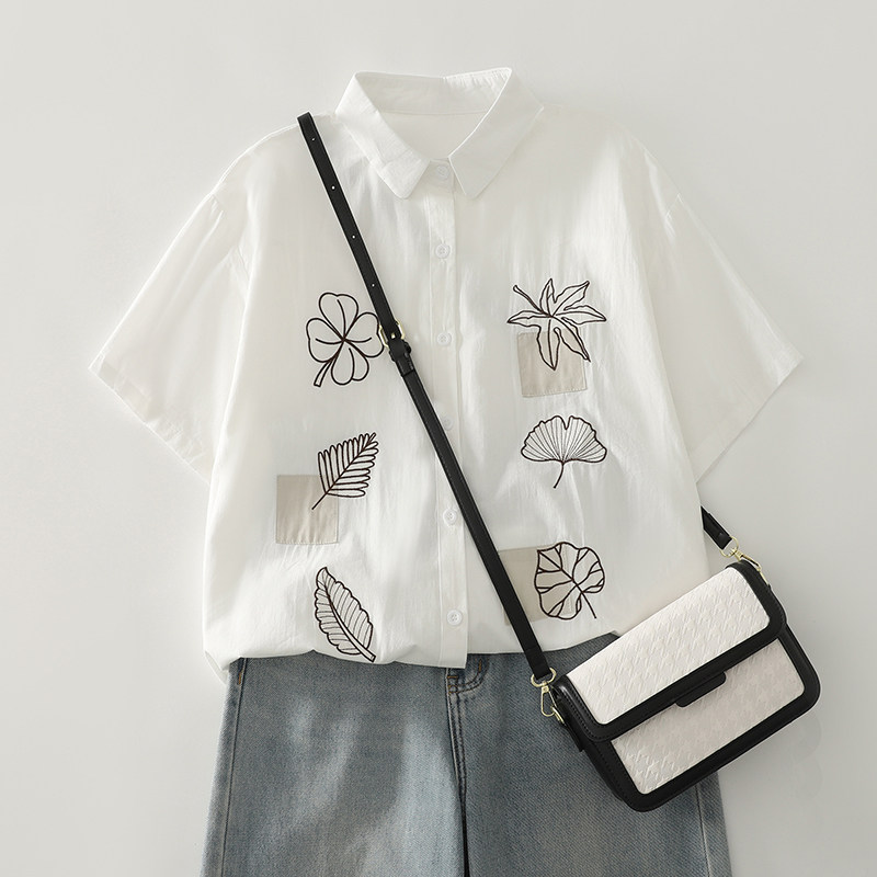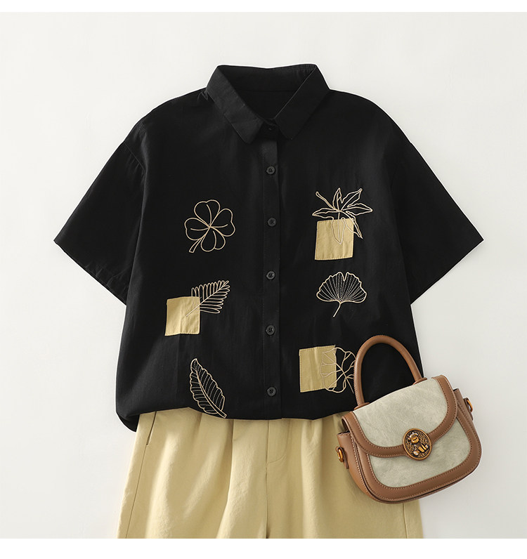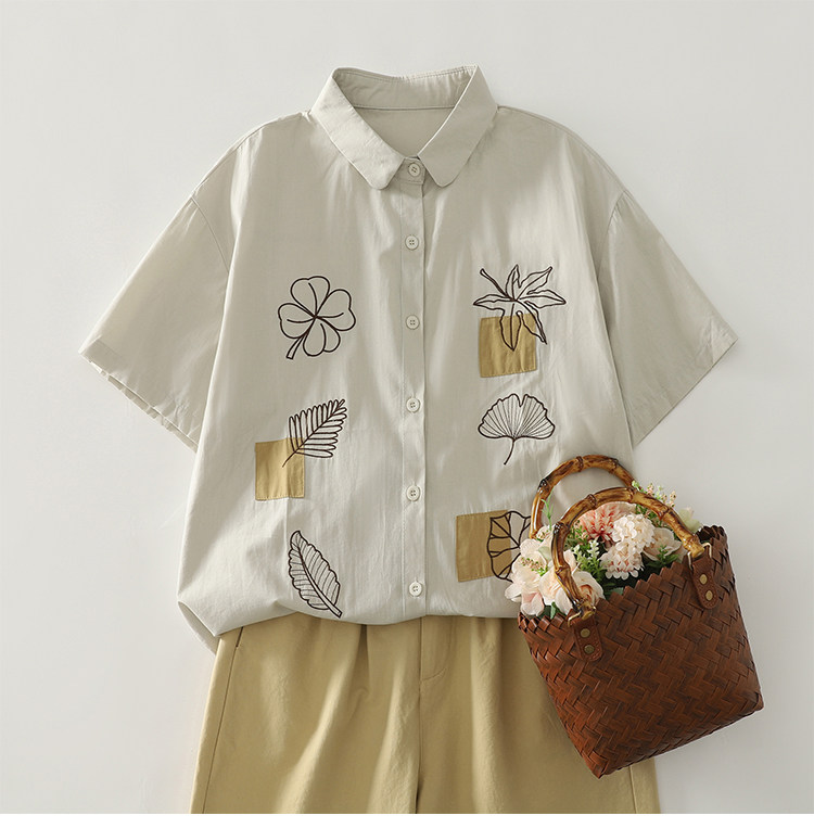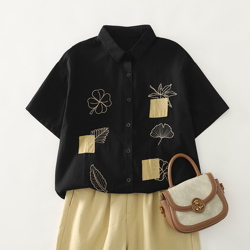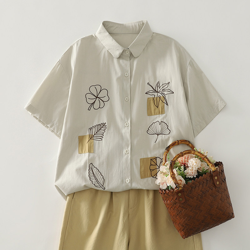 Ретро летняя рубашка, с вышивкой, из хлопка и льна, оверсайз
