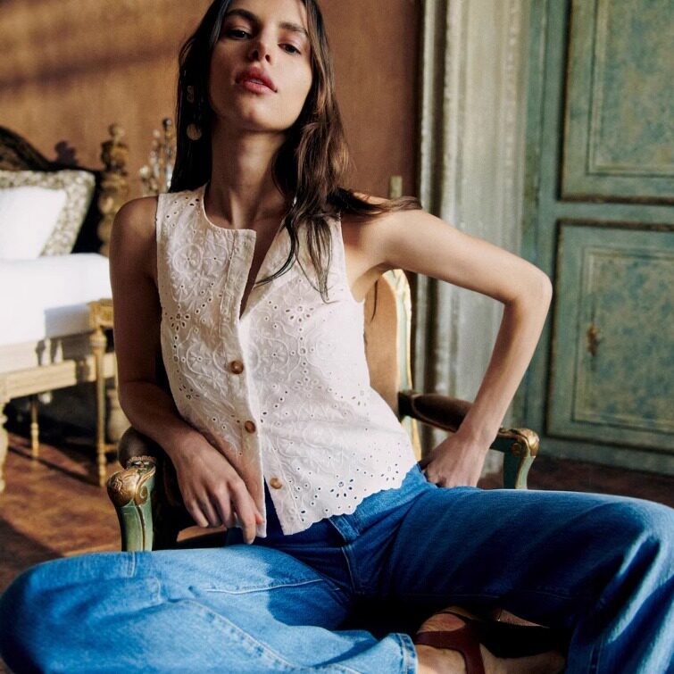 Кружевной жилет без рукавов, рубашка, юбка, комплект, французский стиль, с вышивкой