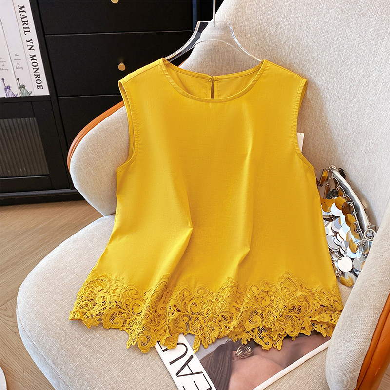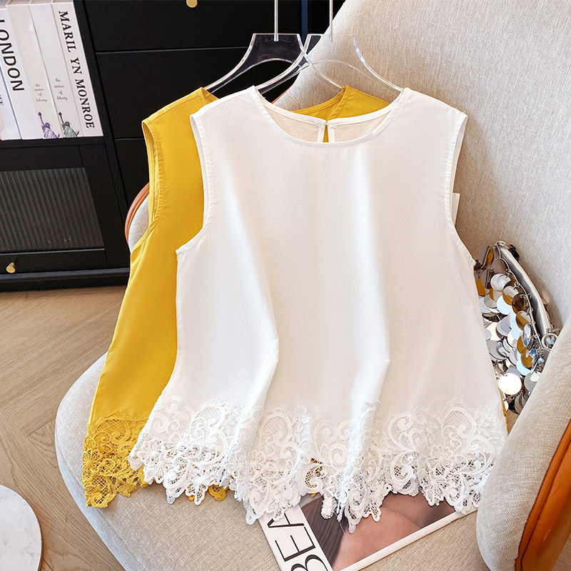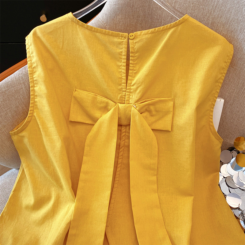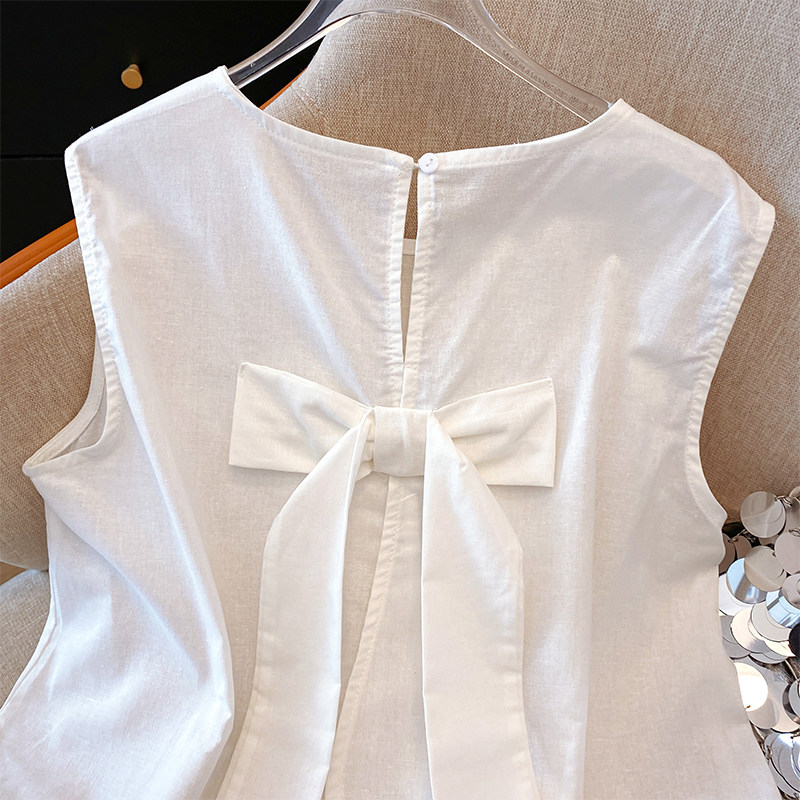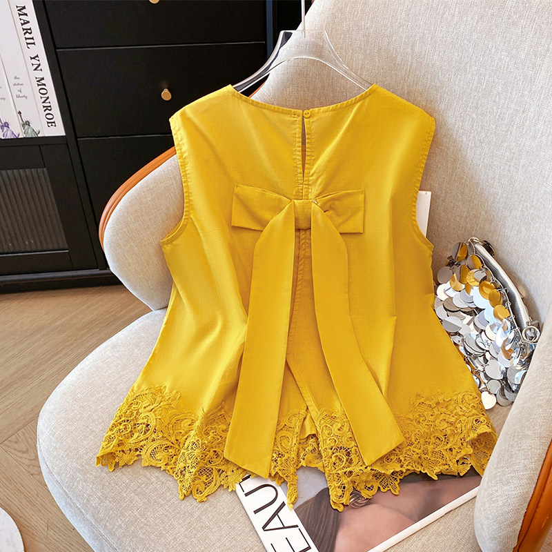 Жилет без рукавов, летняя кружевная короткая рубашка с бантиком