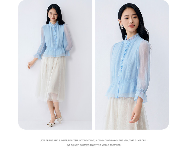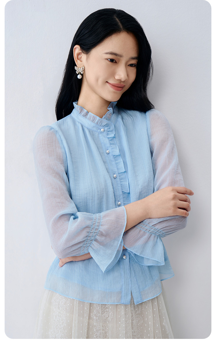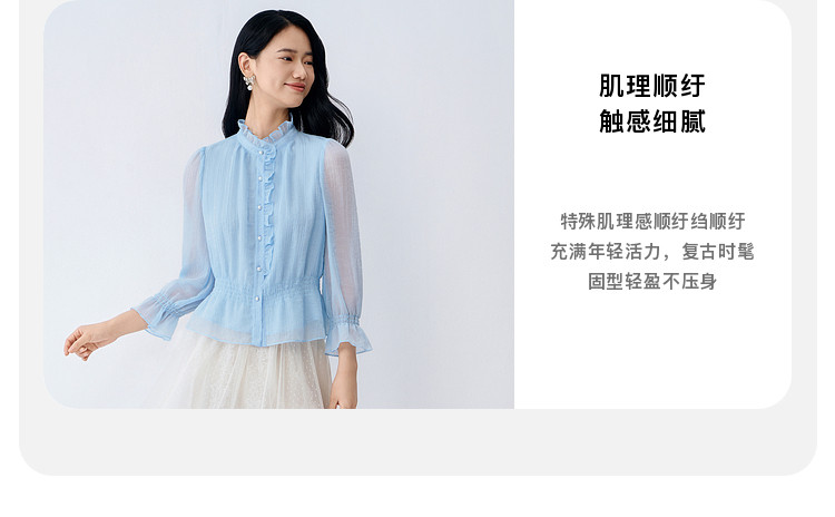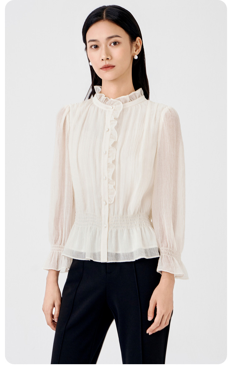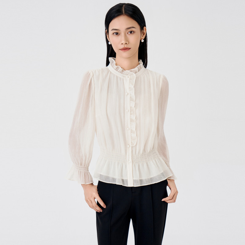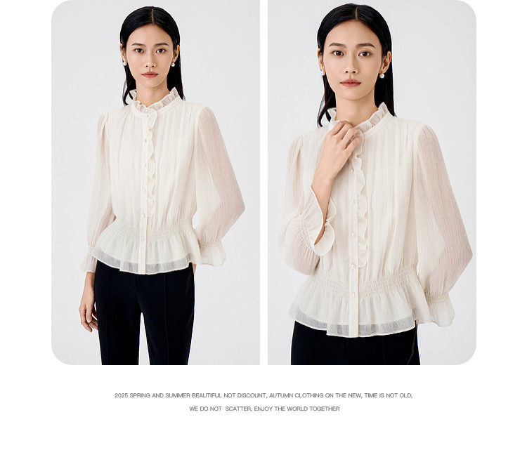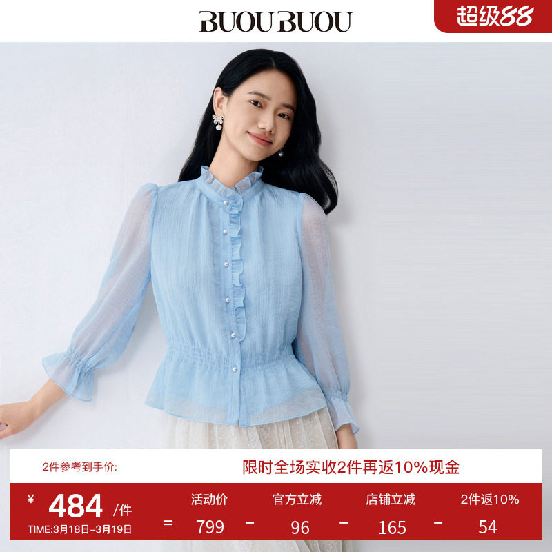 BuouBuou2026, весенняя новая текстура, шифоновый креп, рубашки с рюшами, топы для женщин, элегантные и романтичные