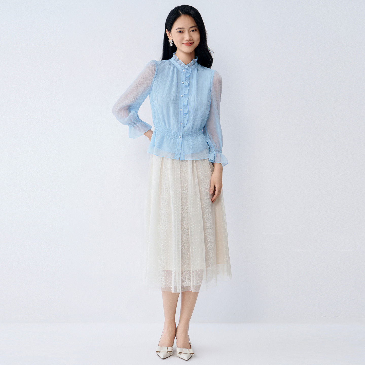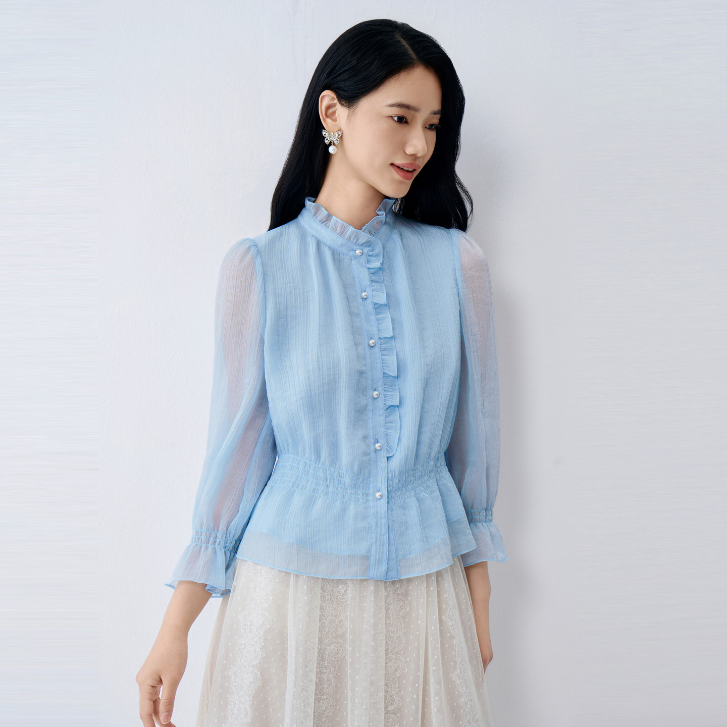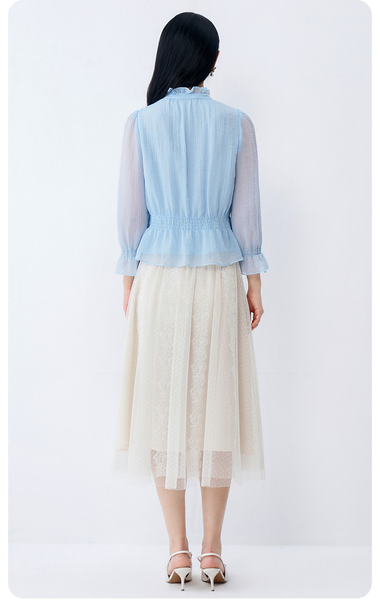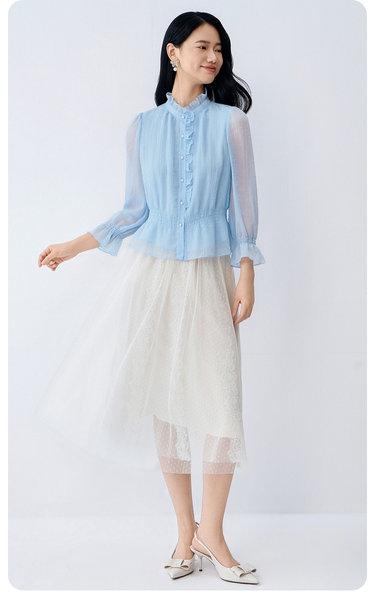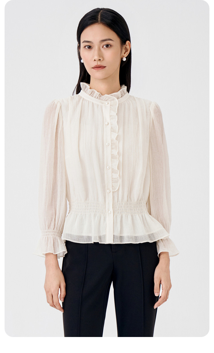 BuouBuou2026, весенняя новая текстура, шифоновый креп, рубашки с рюшами, топы для женщин, элегантные и романтичные