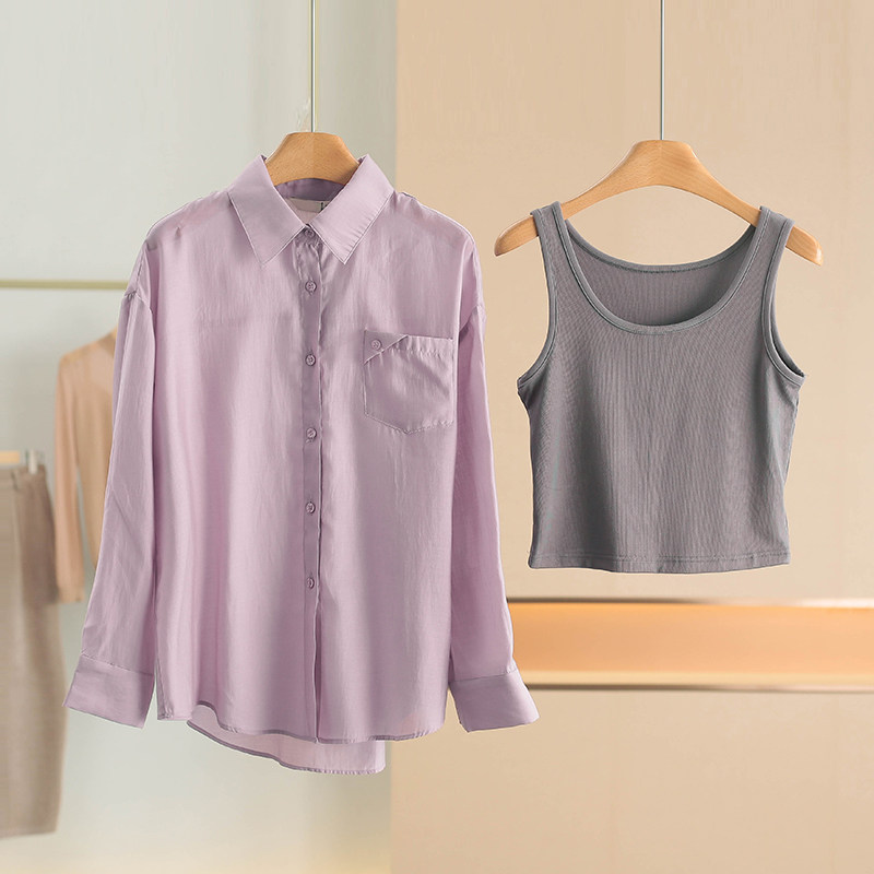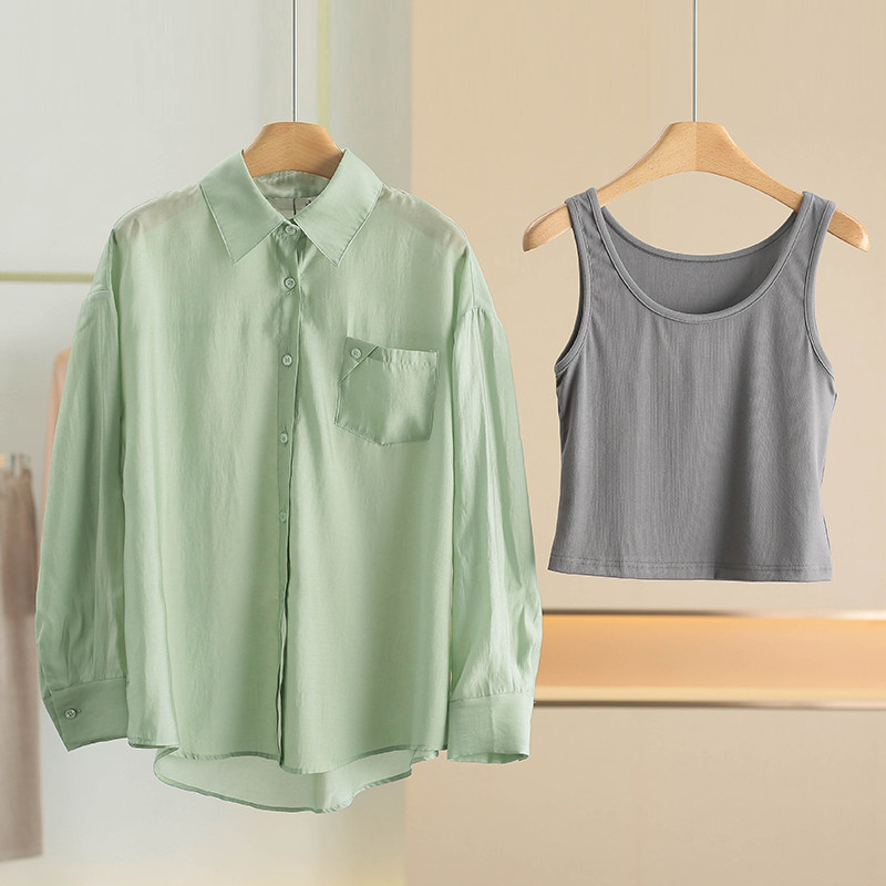Tag 539 [Hang*Mai] однотонная свободная рубашка + жилет из тенселя, комплект 2026, новая весенняя женская одежда 096