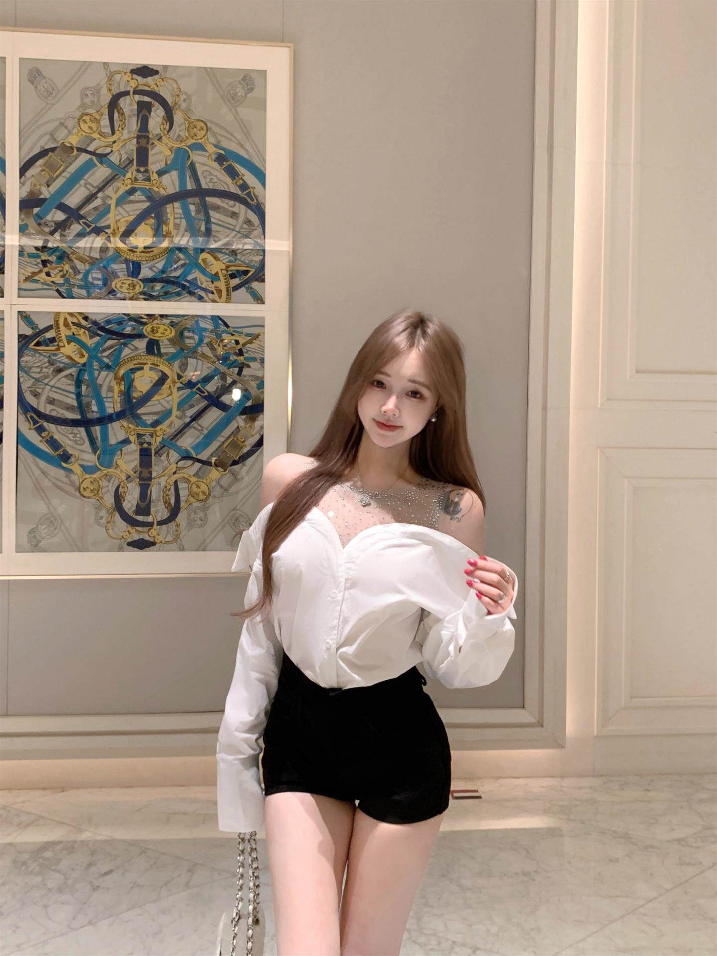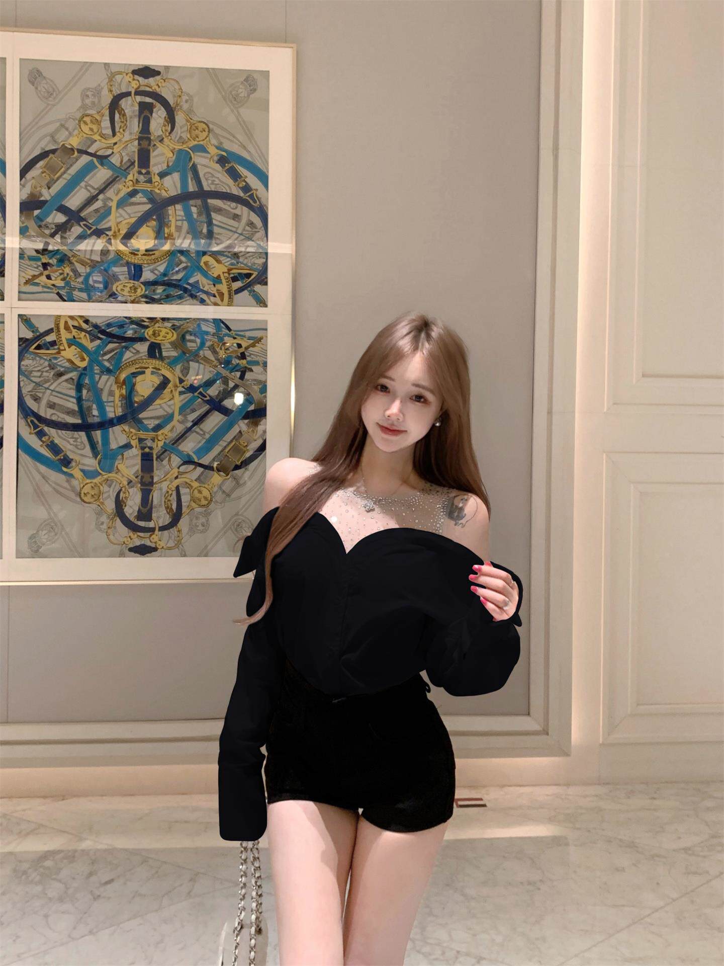 姚小姐 Комплект, осенняя черная рубашка