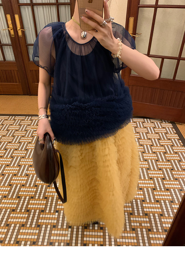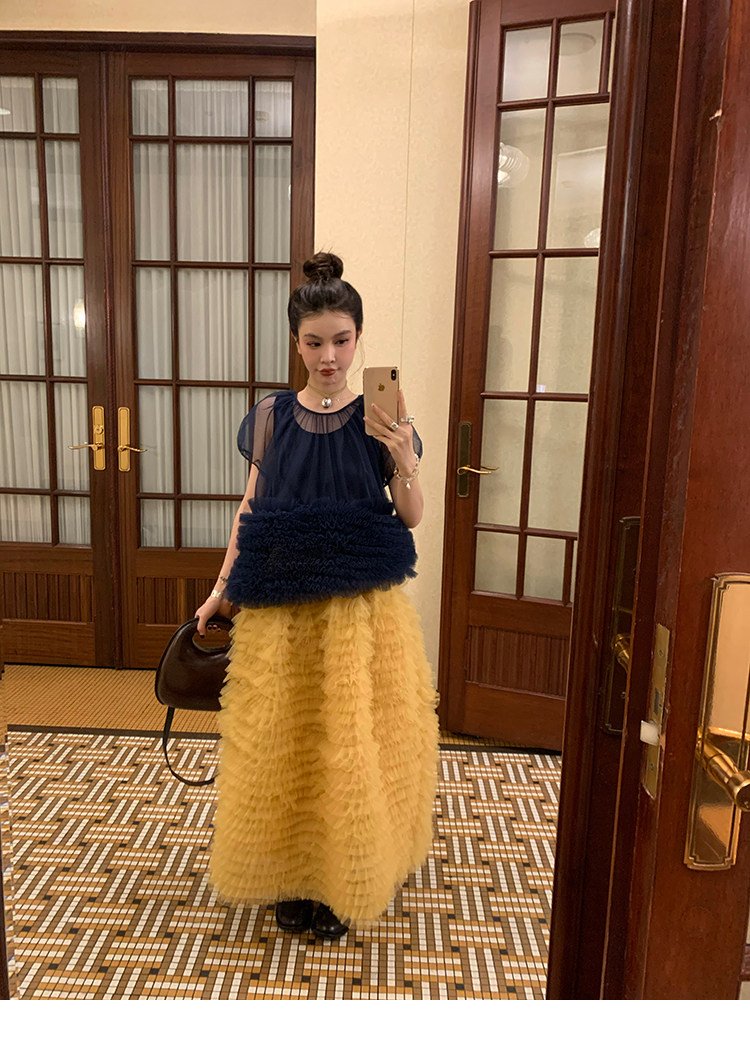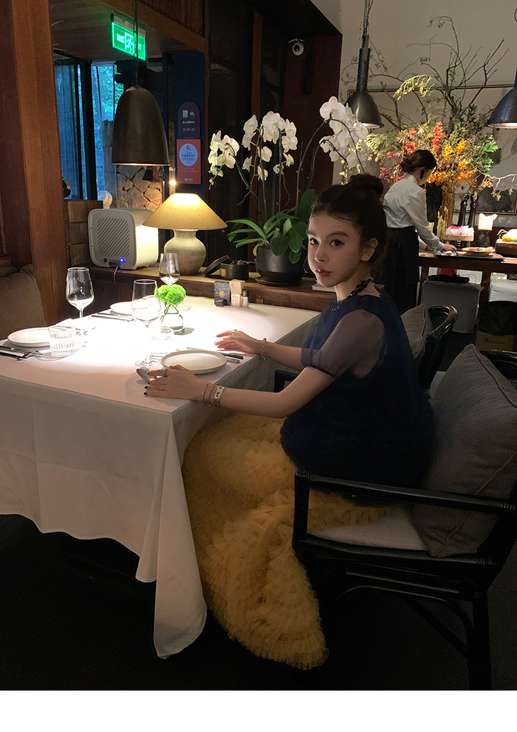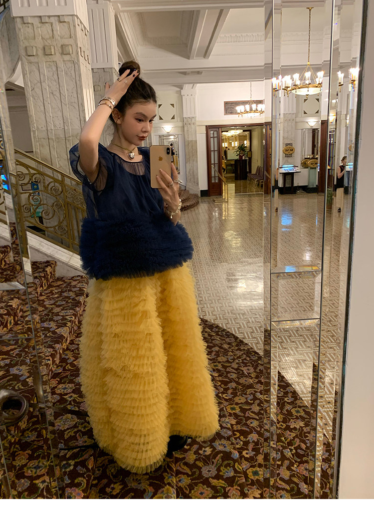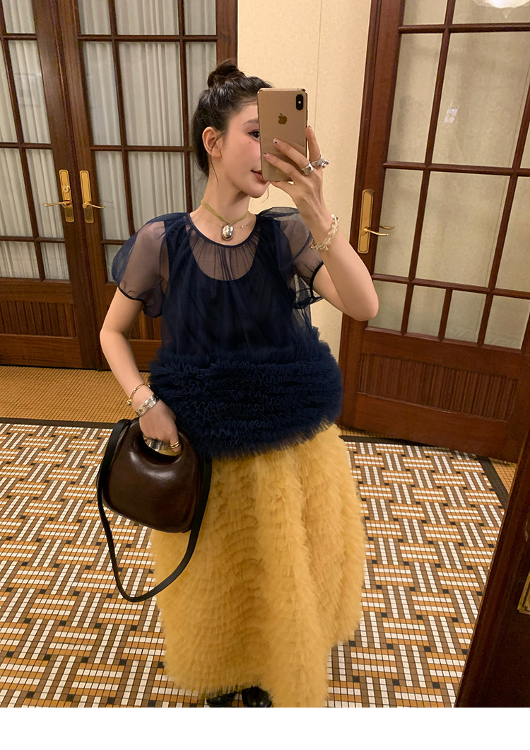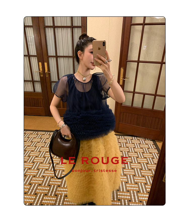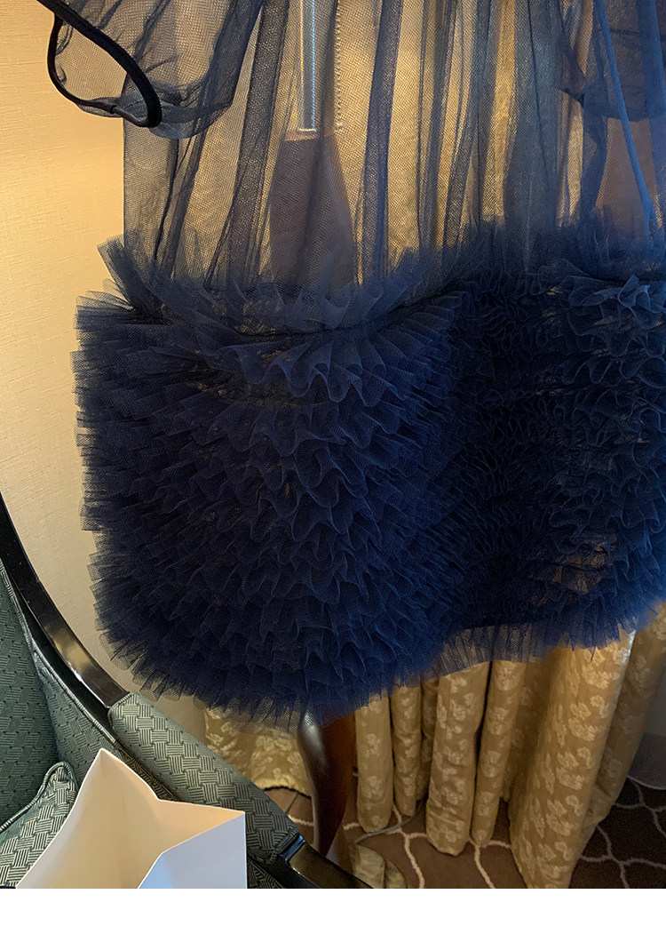 Le rouge Игривый темно-синий топ из многослойной кружевной сетки от Zhou Meimei для роскошных девушек