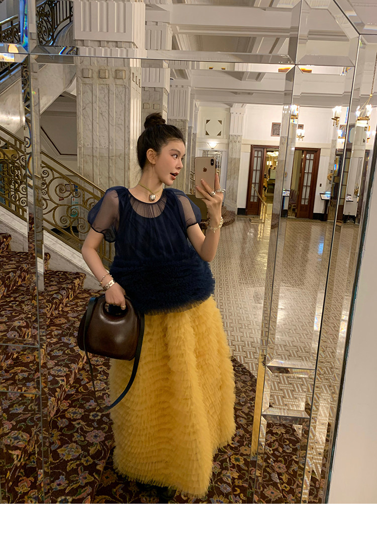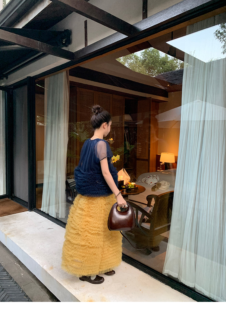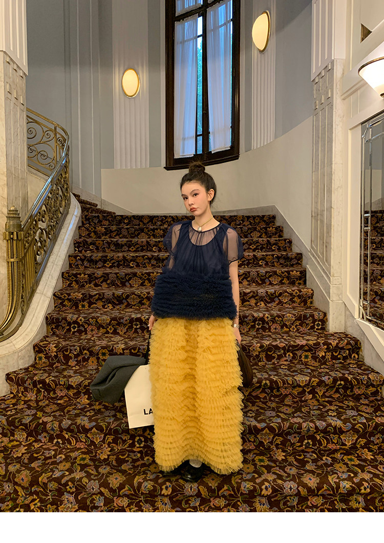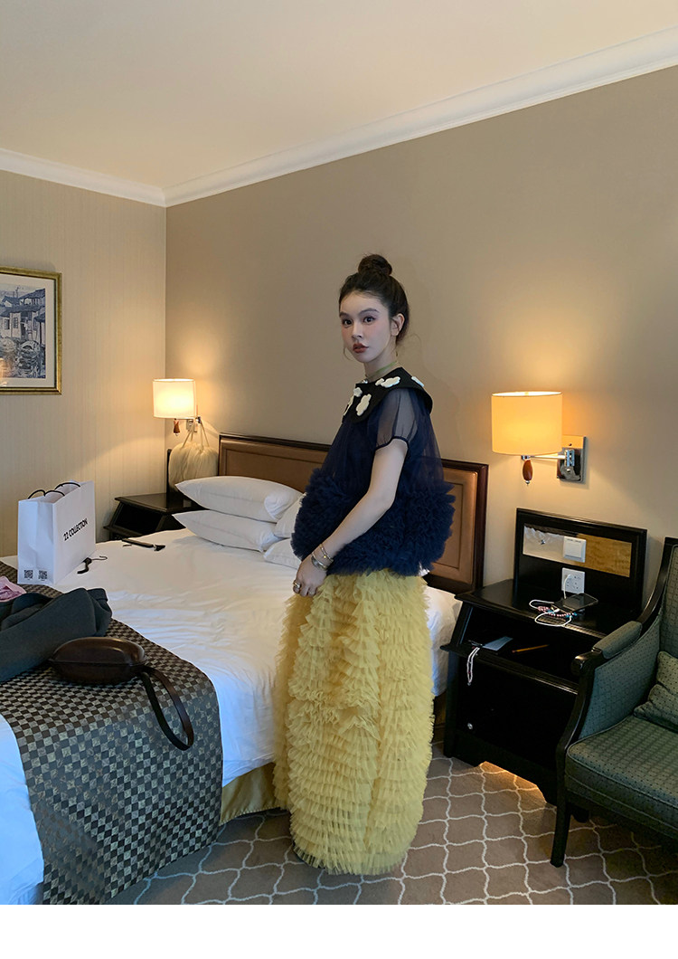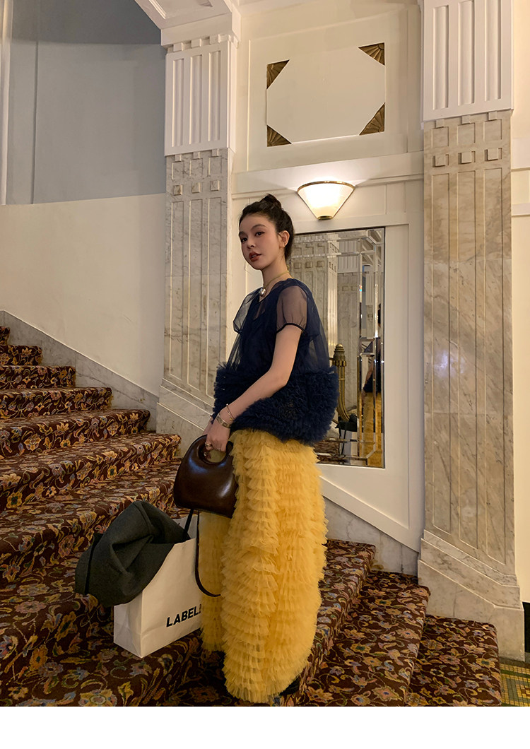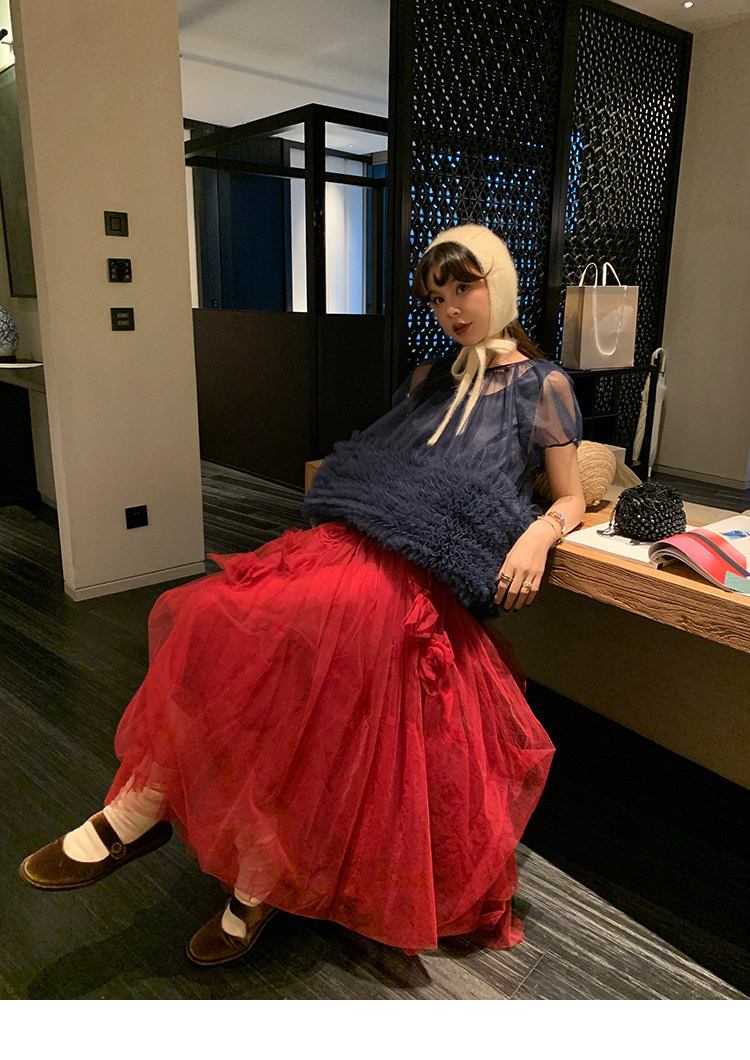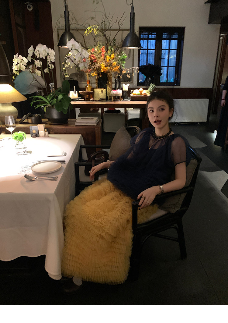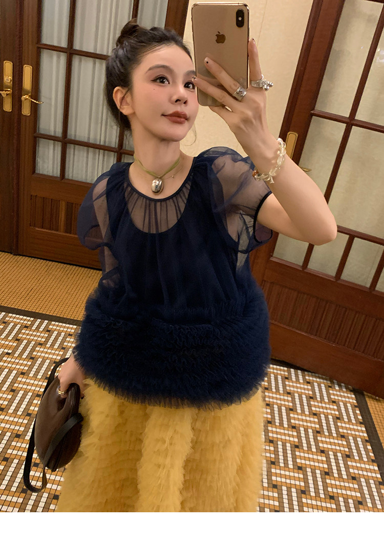 Le rouge Игривый темно-синий топ из многослойной кружевной сетки от Zhou Meimei для роскошных девушек