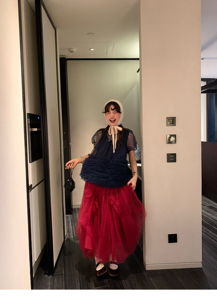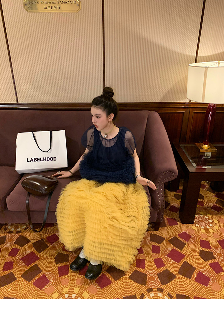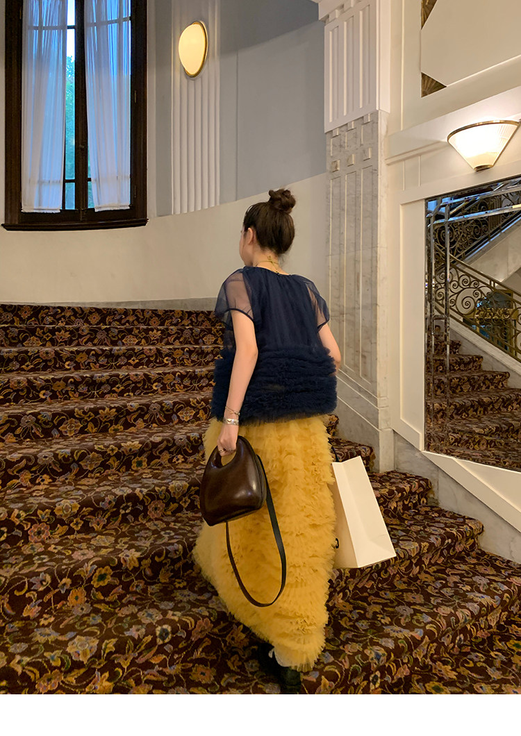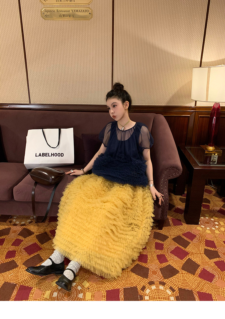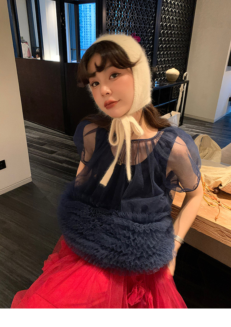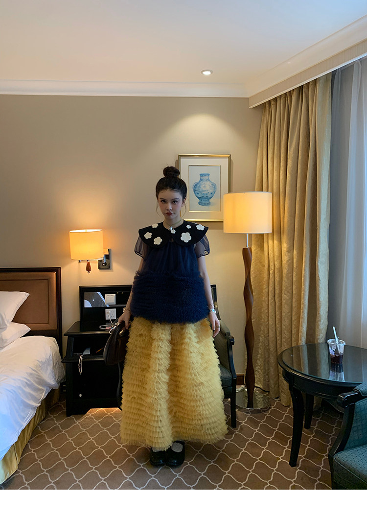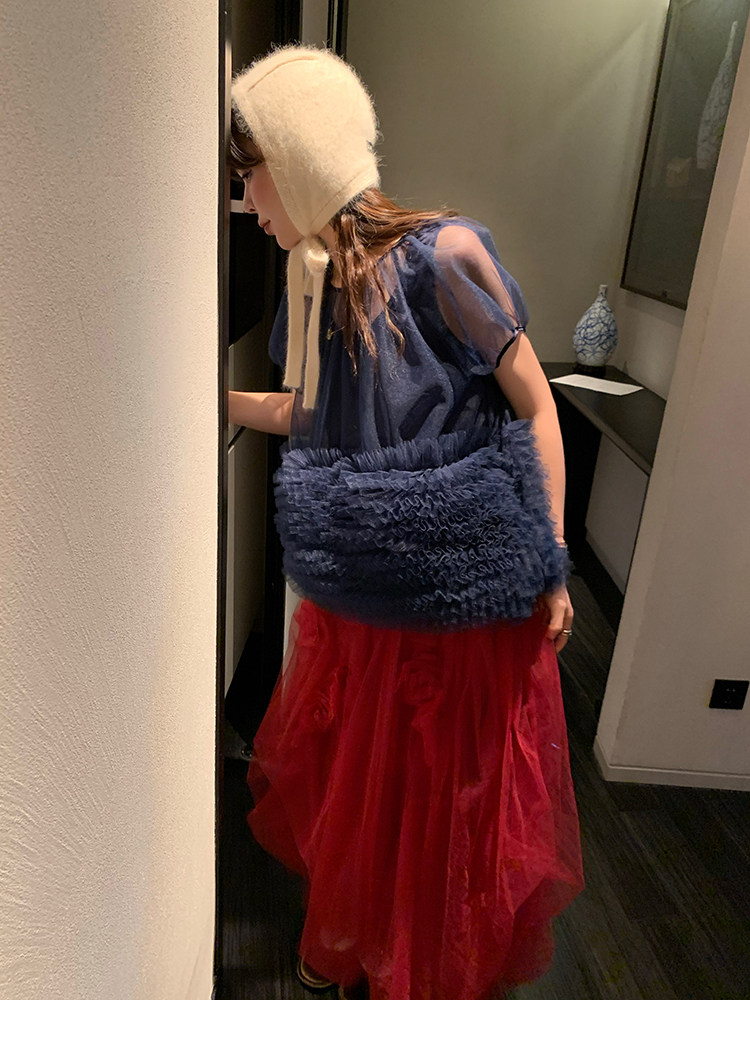 Le rouge Игривый темно-синий топ из многослойной кружевной сетки от Zhou Meimei для роскошных девушек