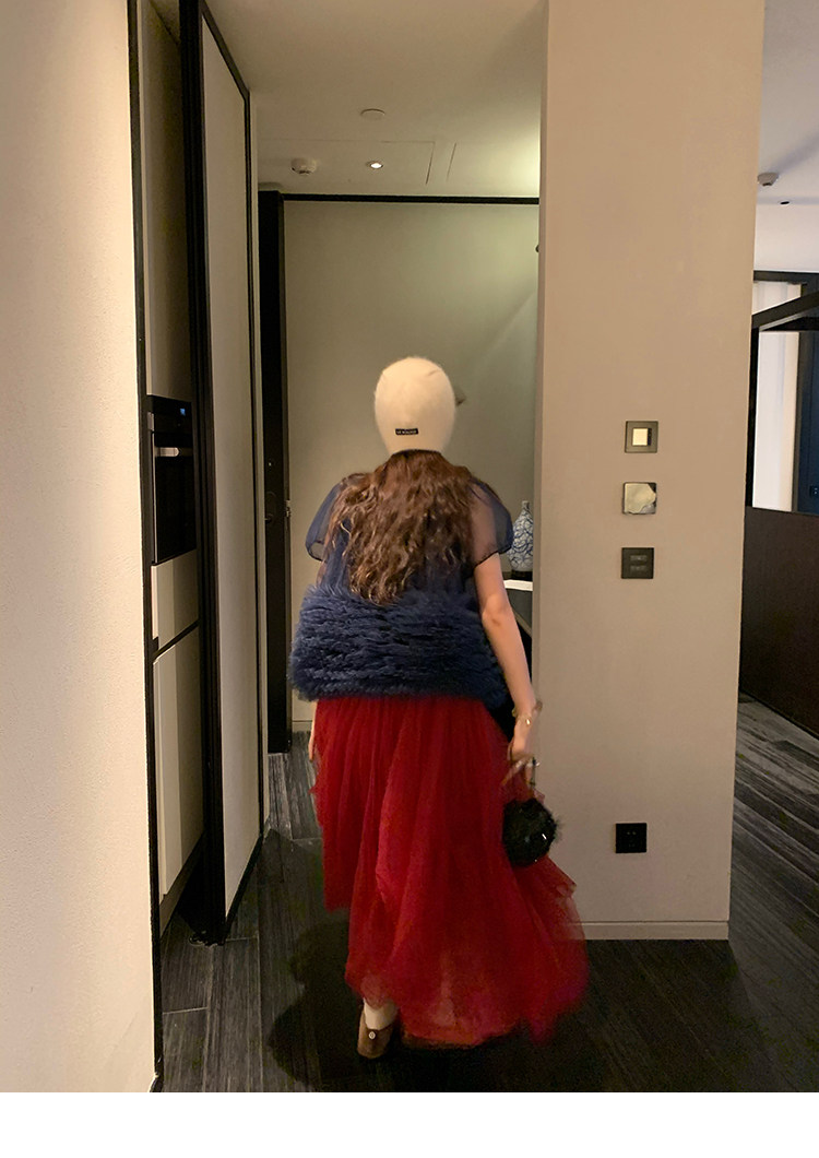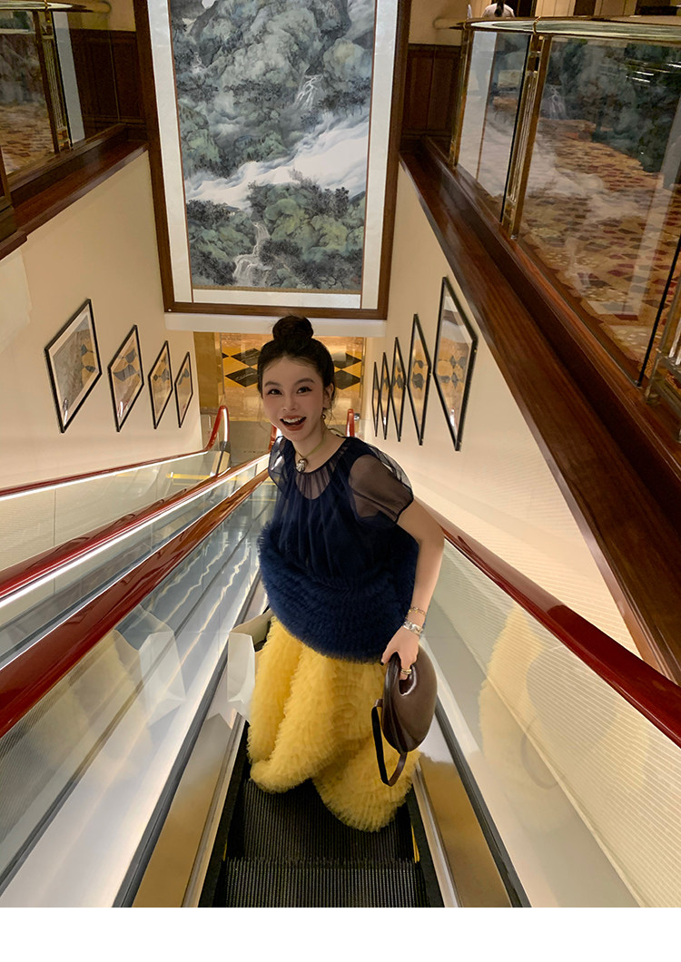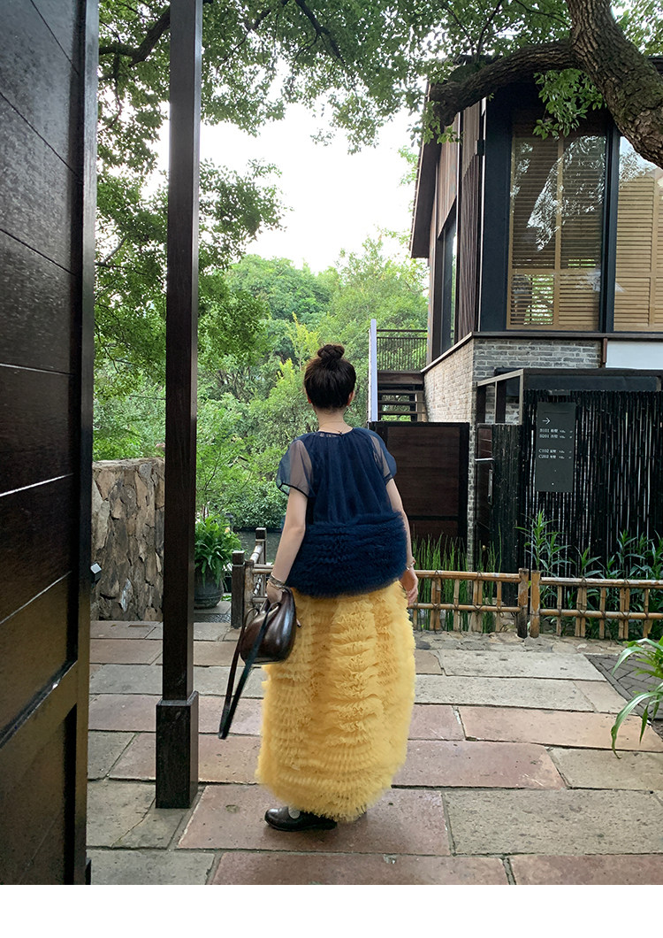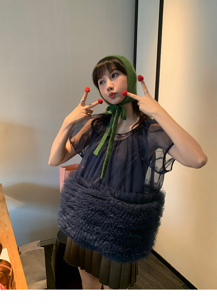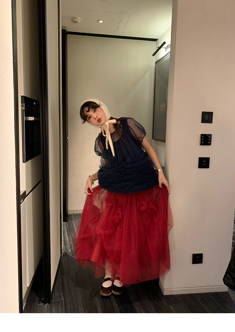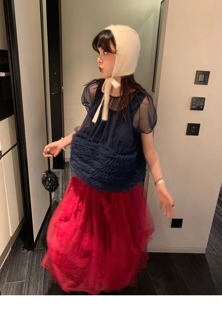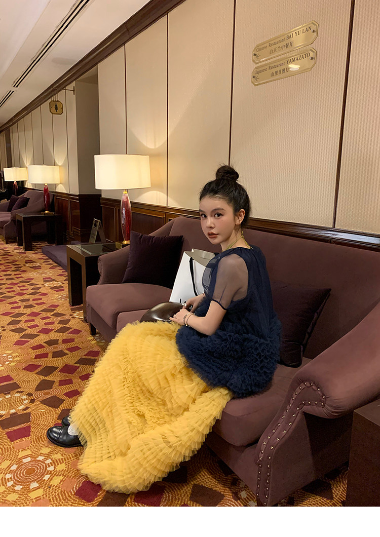 Le rouge Игривый темно-синий топ из многослойной кружевной сетки от Zhou Meimei для роскошных девушек