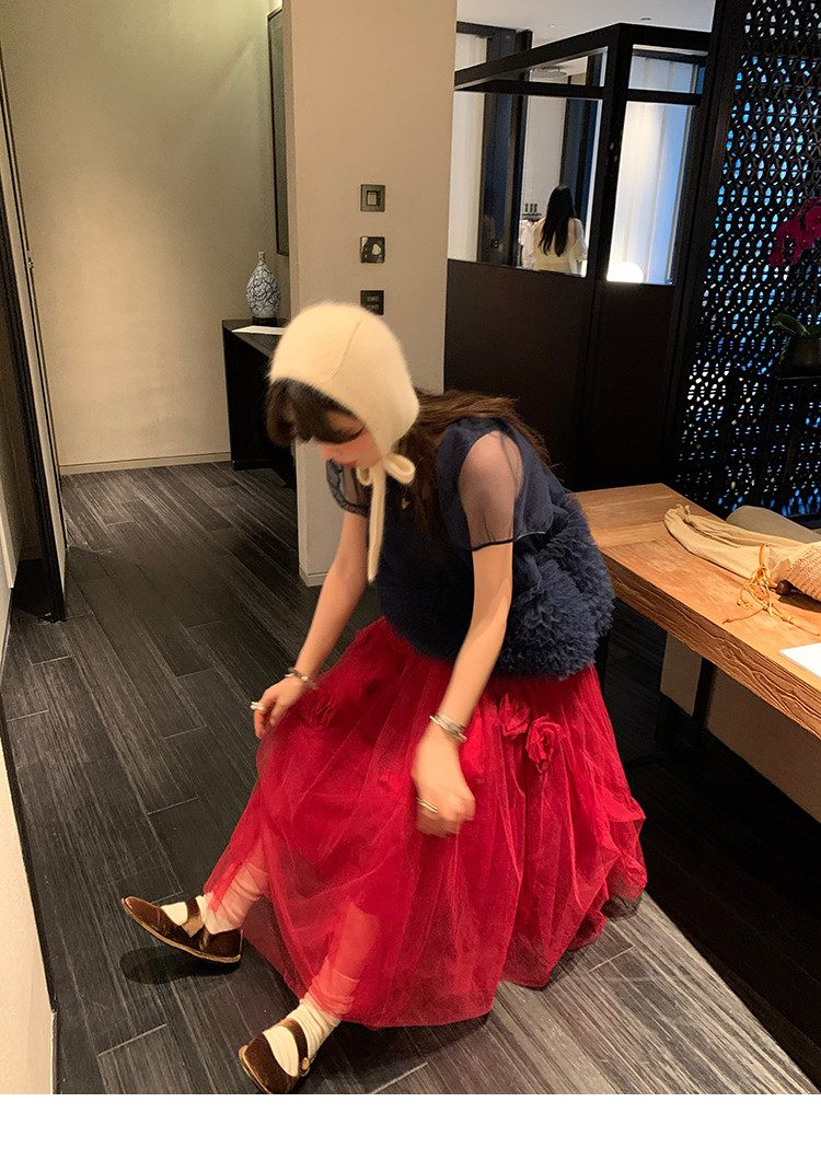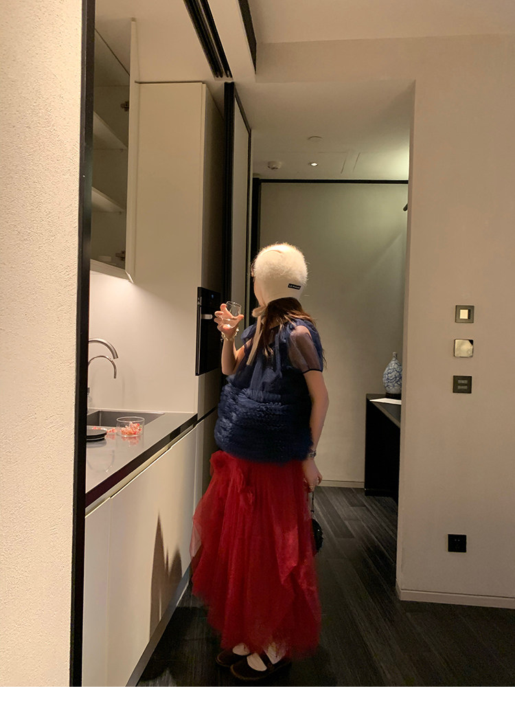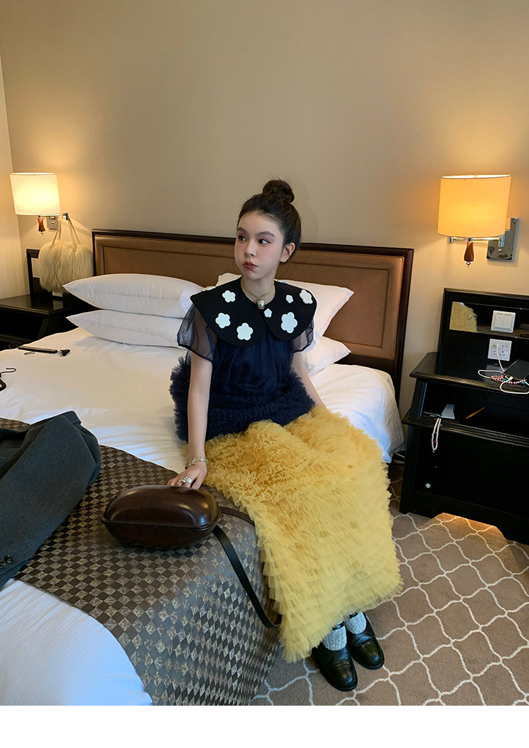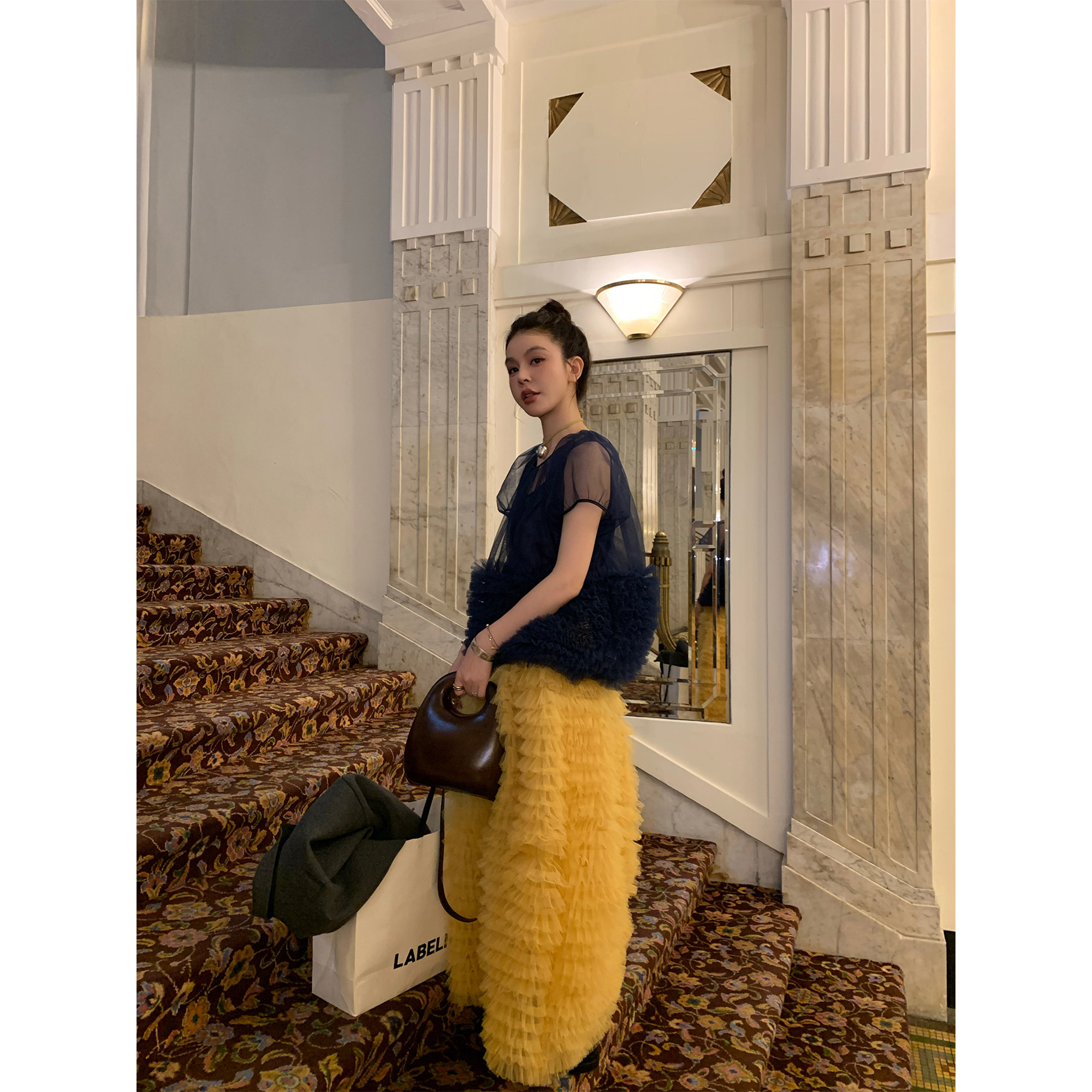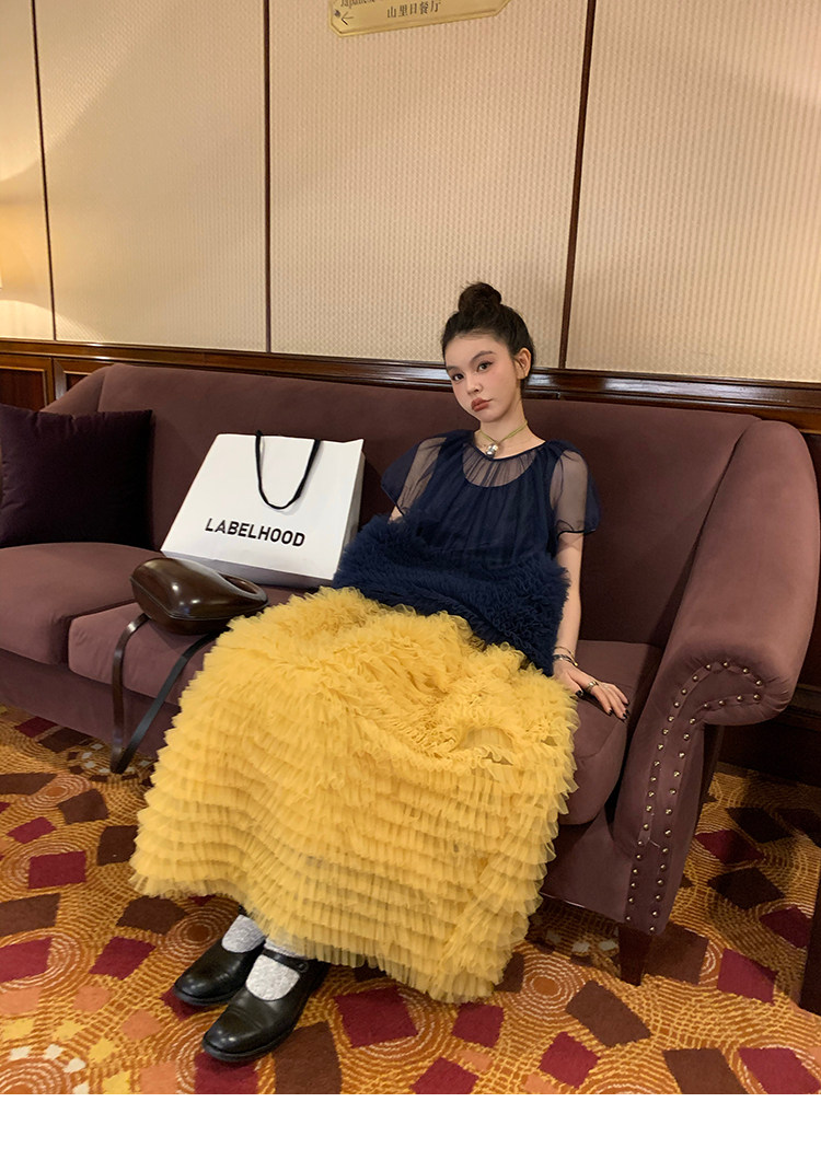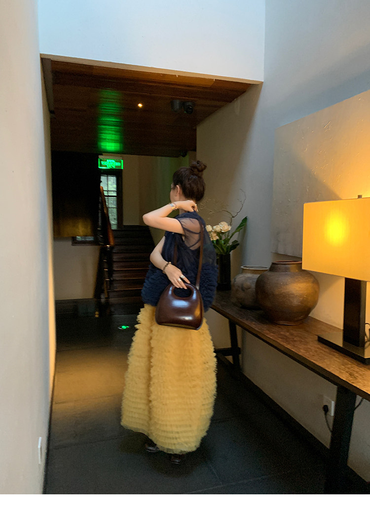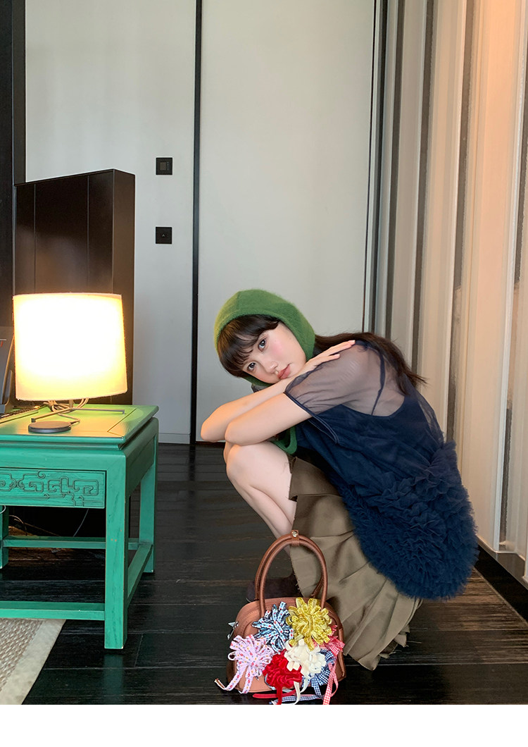 Le rouge Игривый темно-синий топ из многослойной кружевной сетки от Zhou Meimei для роскошных девушек