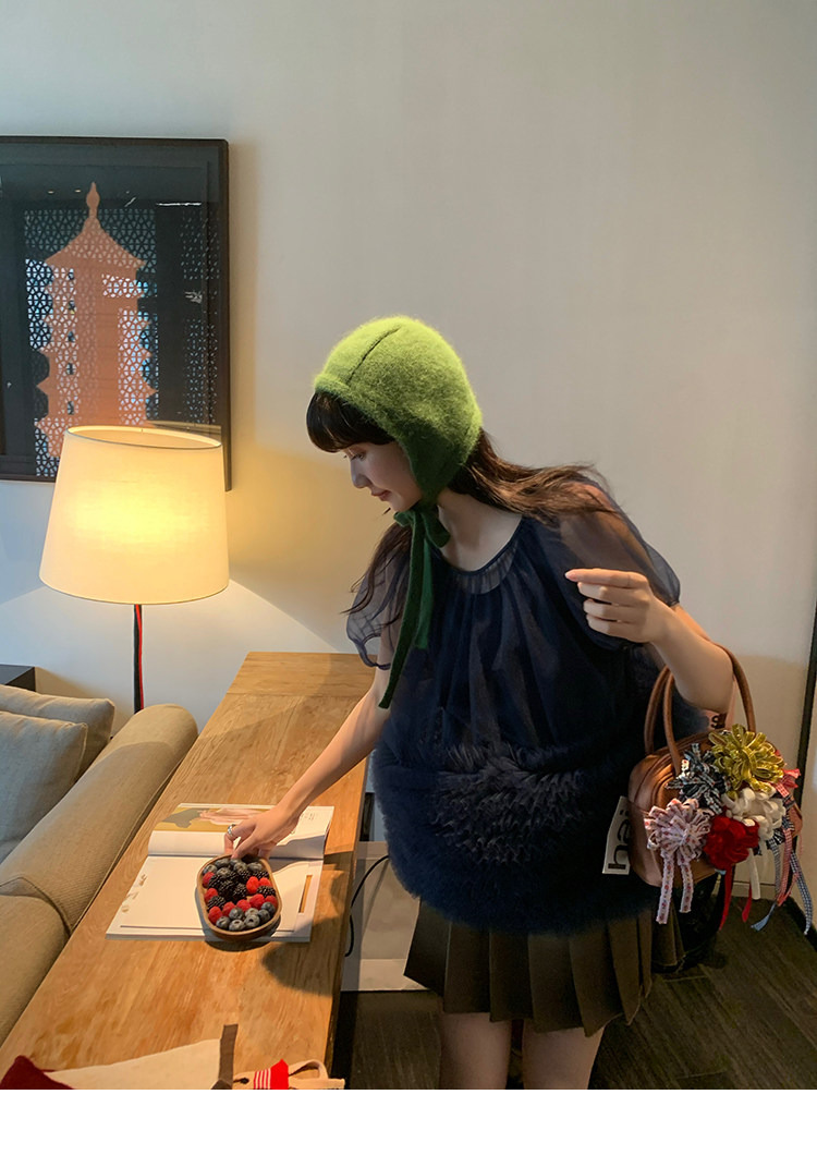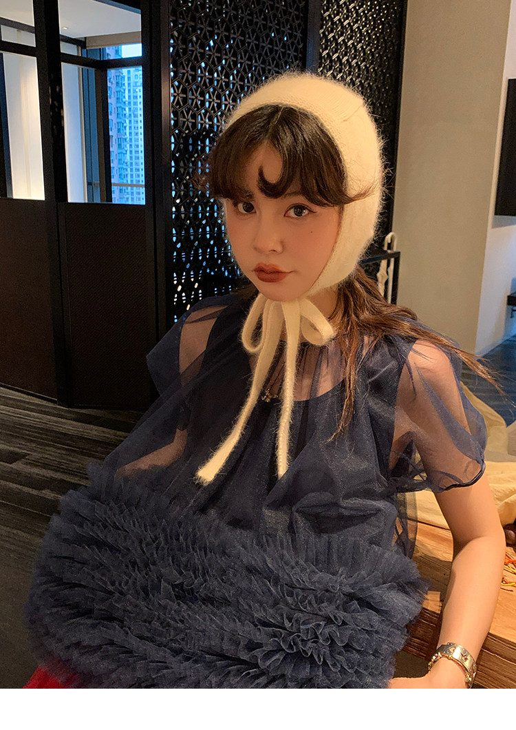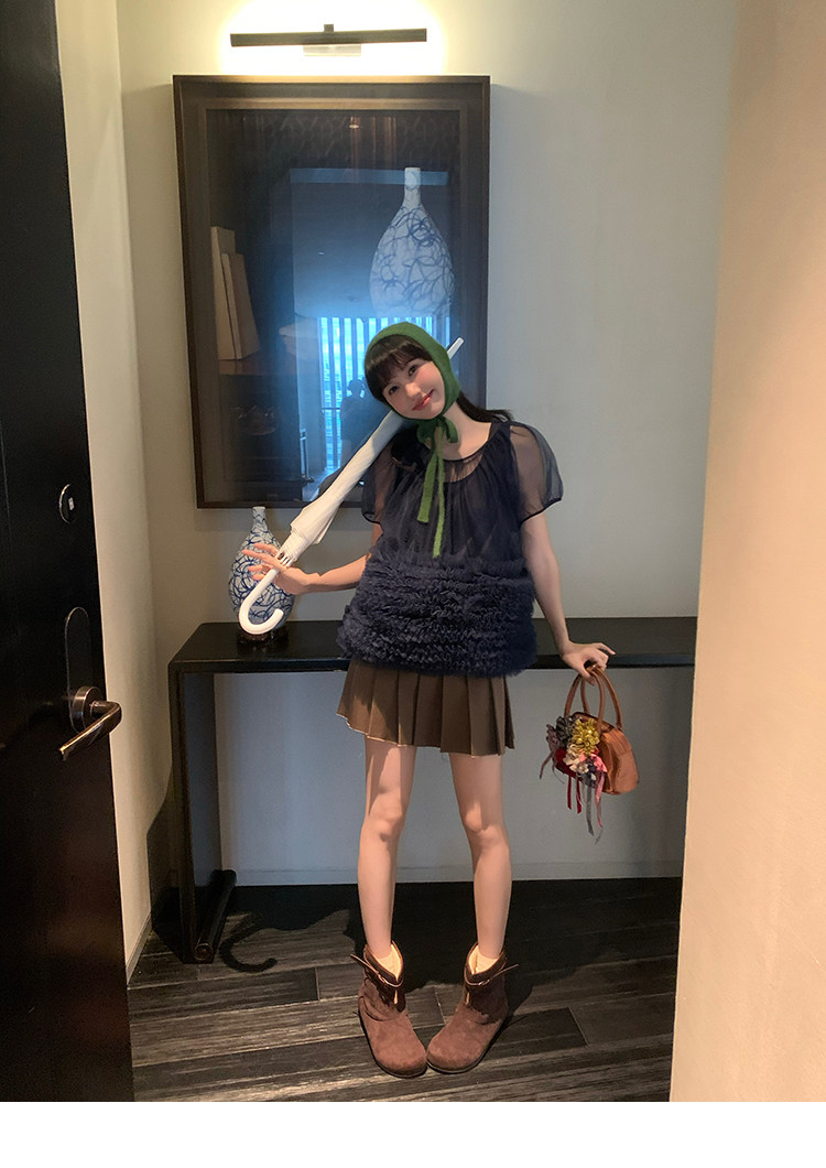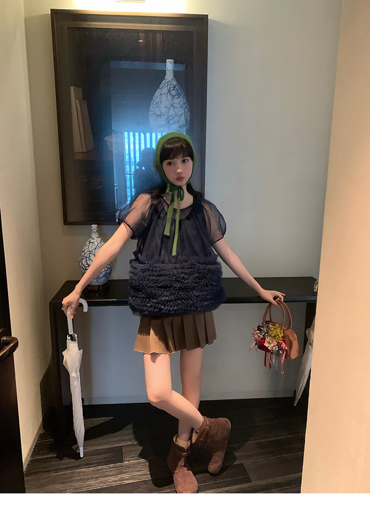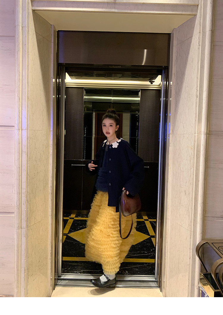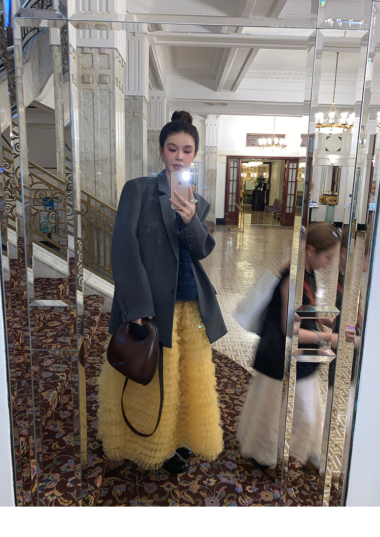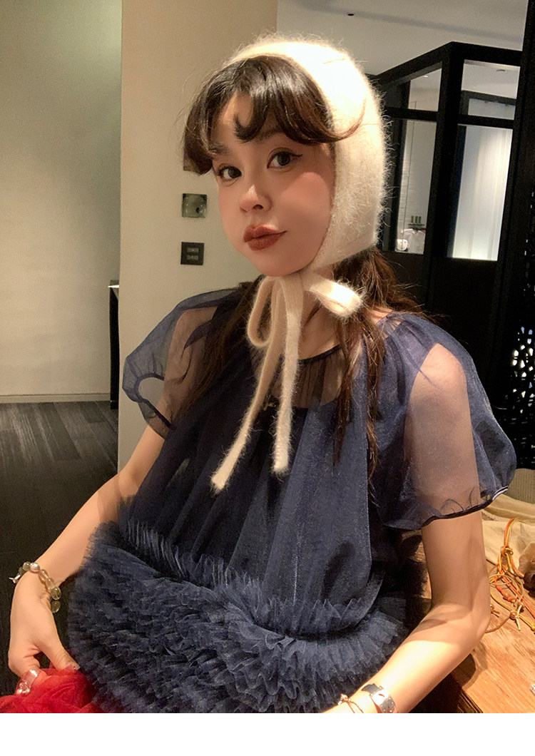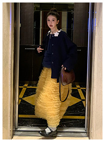 Le rouge Игривый темно-синий топ из многослойной кружевной сетки от Zhou Meimei для роскошных девушек