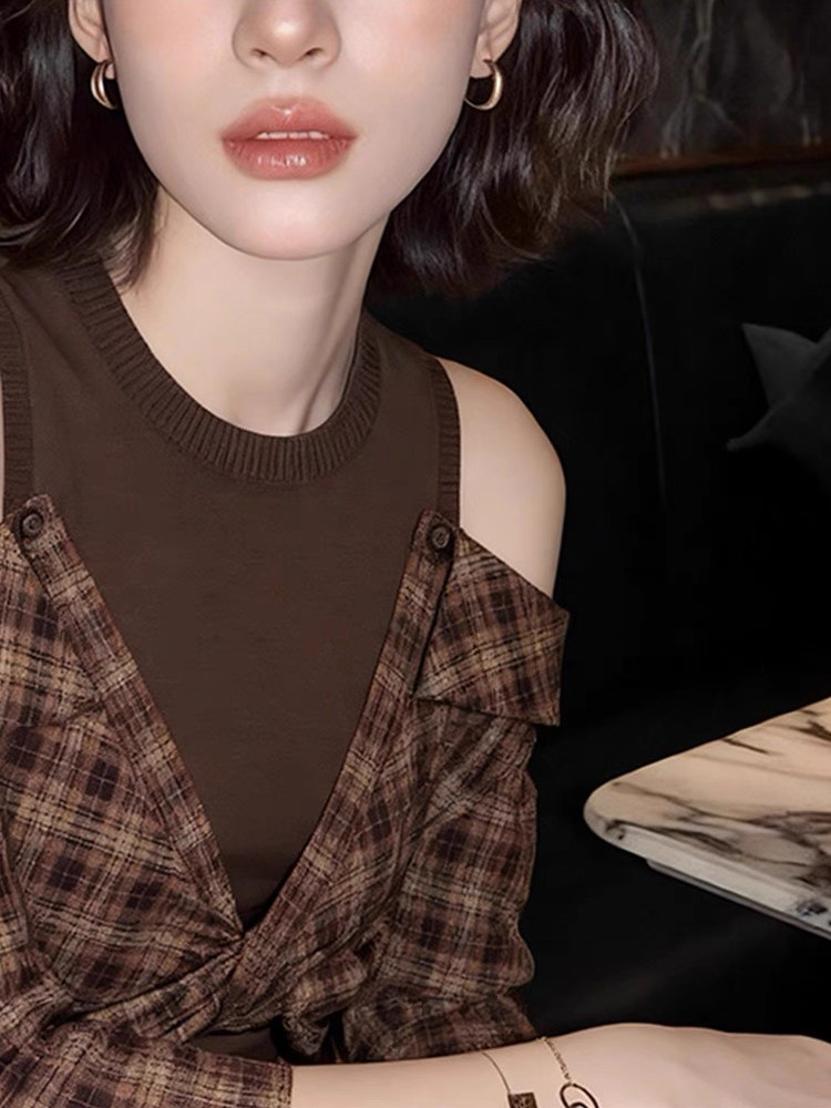 Комплект, осенняя дизайнерская рубашка, облегающий крой, тренд сезона, открытые плечи
