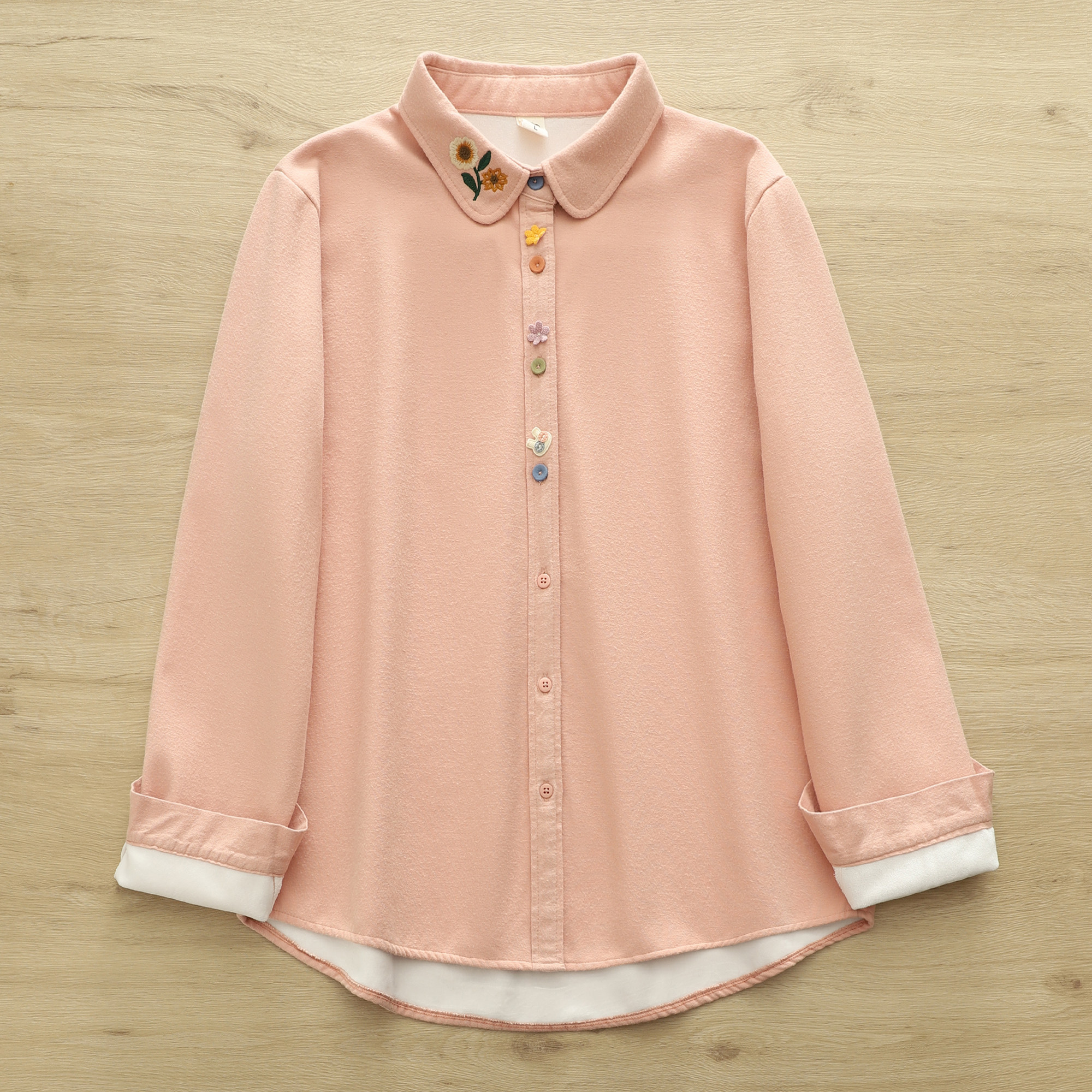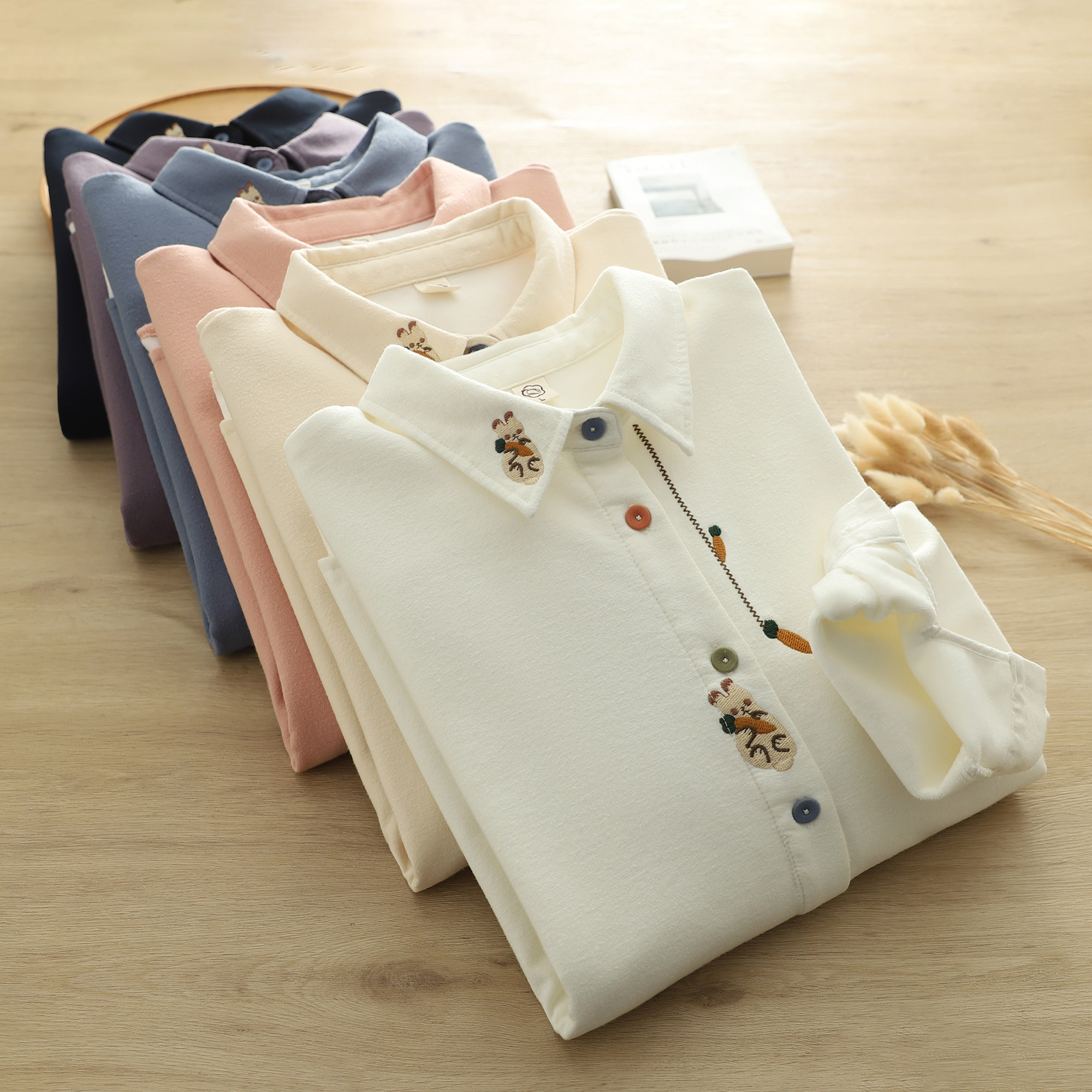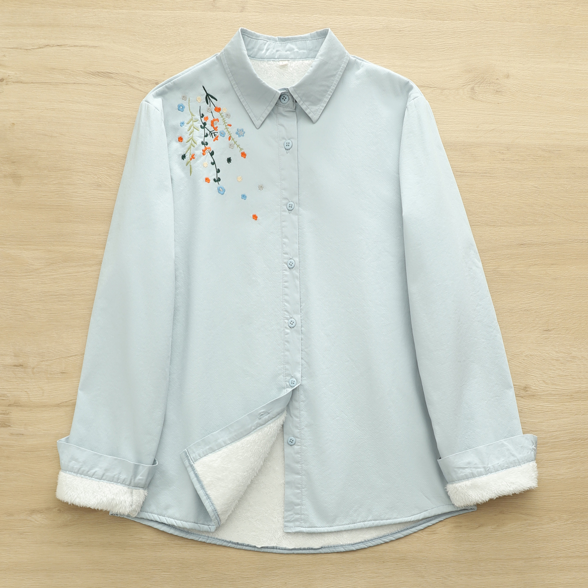 Демисезонная рубашка, хлопковый лонгслив, с вышивкой