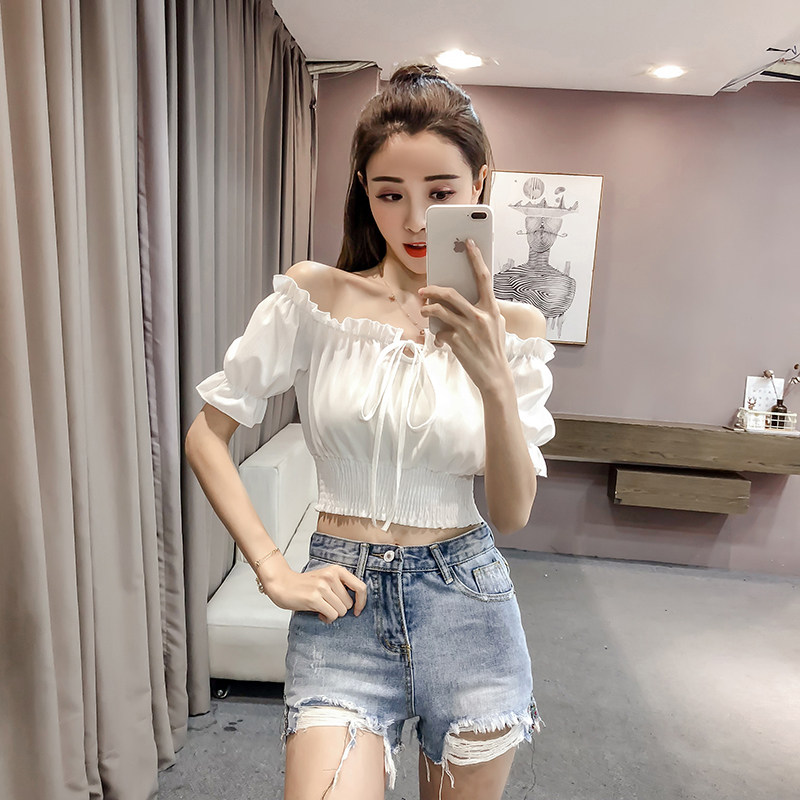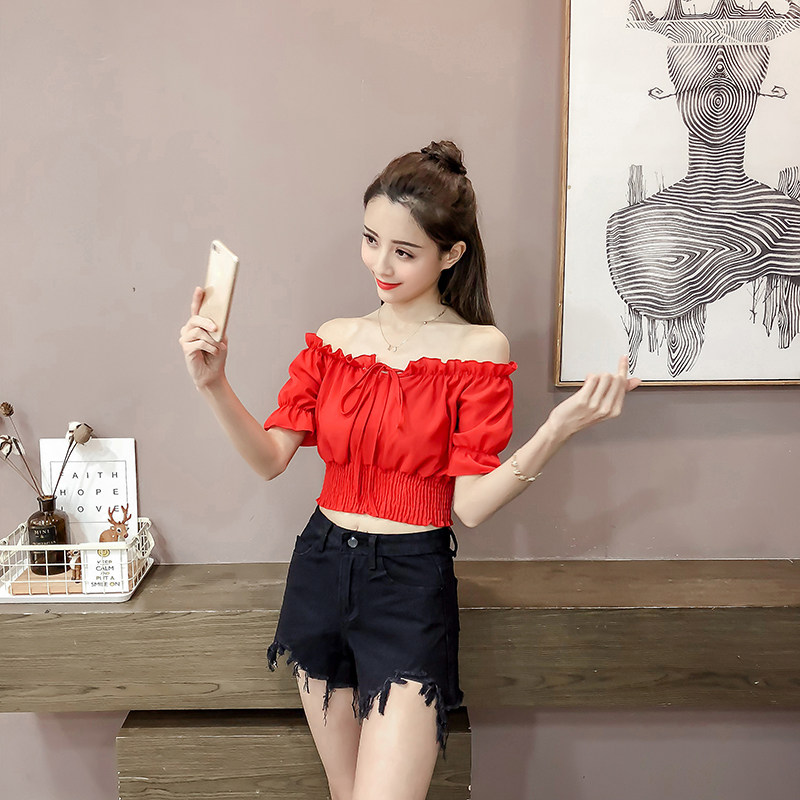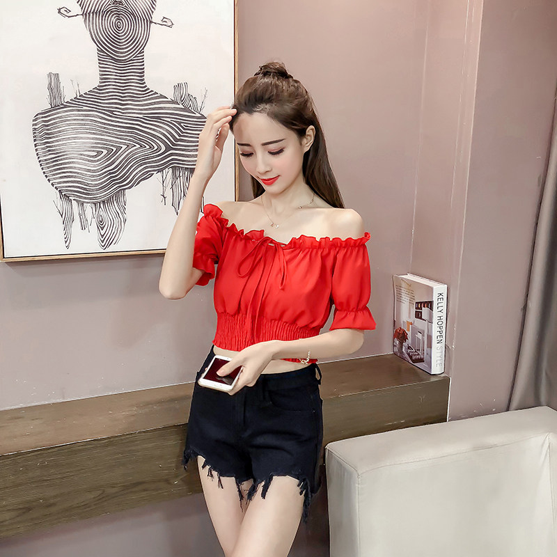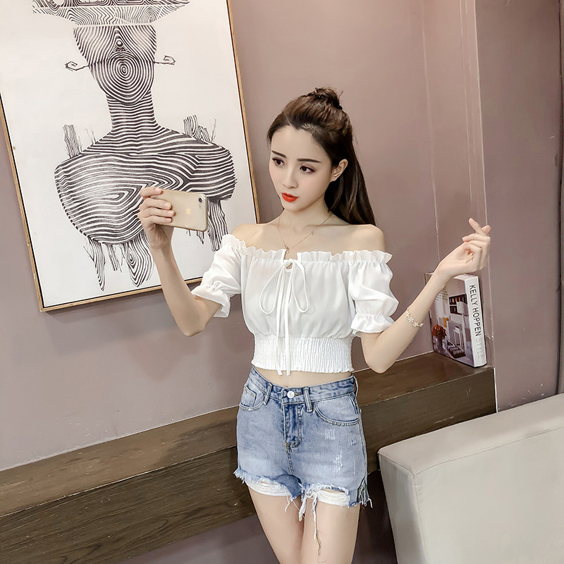 Летний короткий шифоновый сексуальный корсет, 2022, высокая талия, рукава фонарики