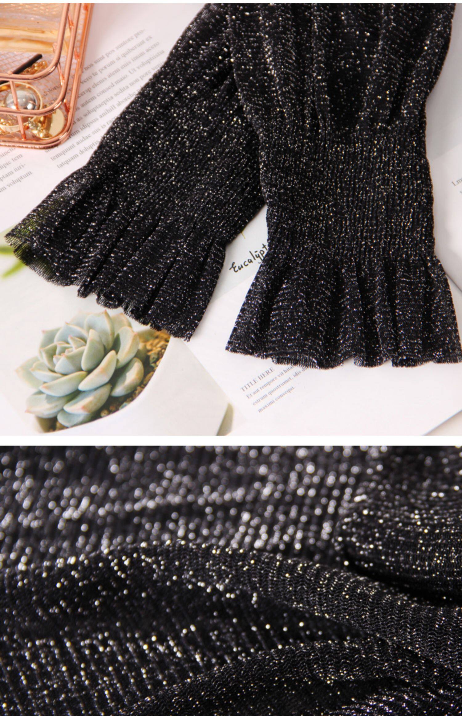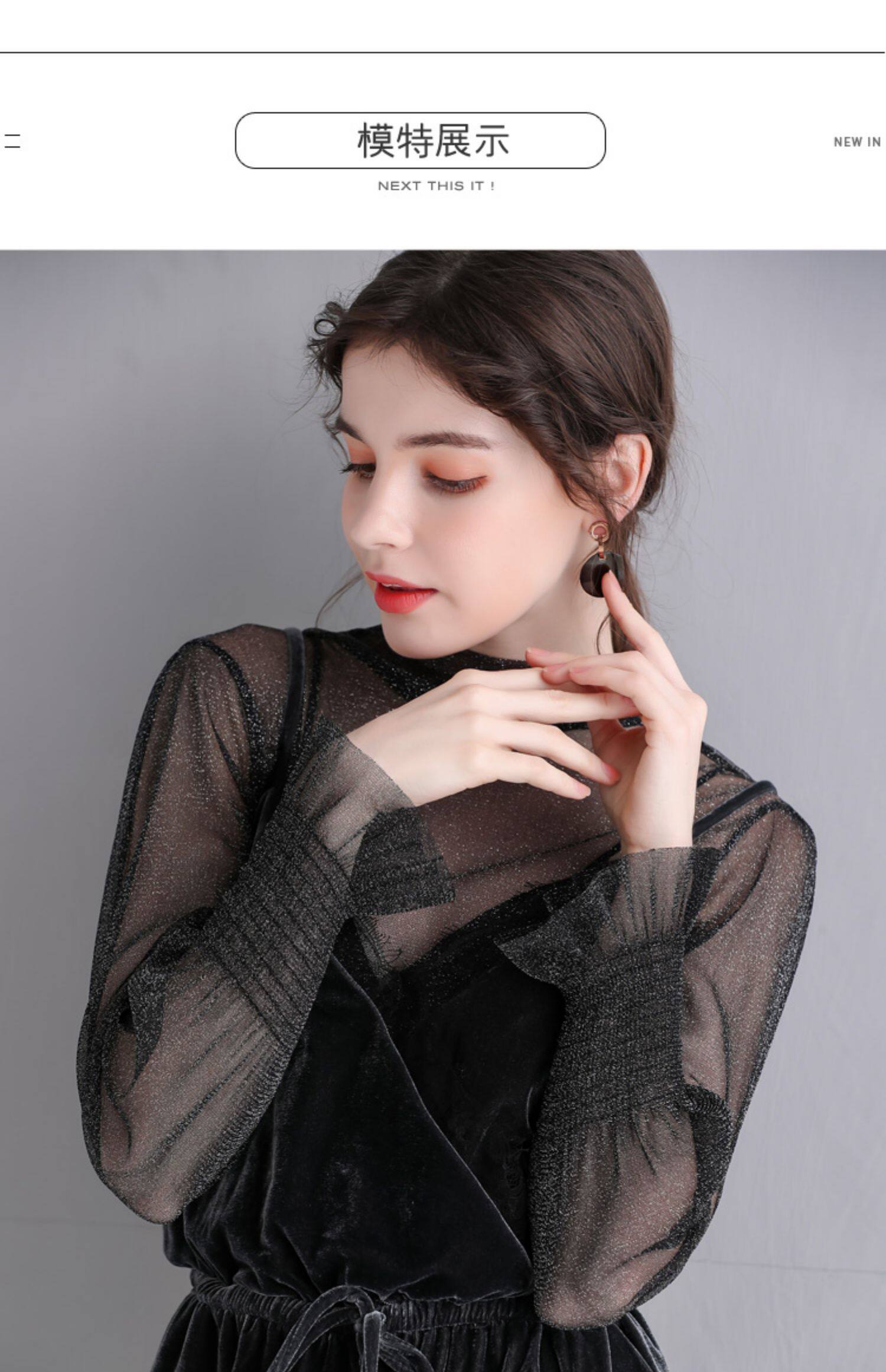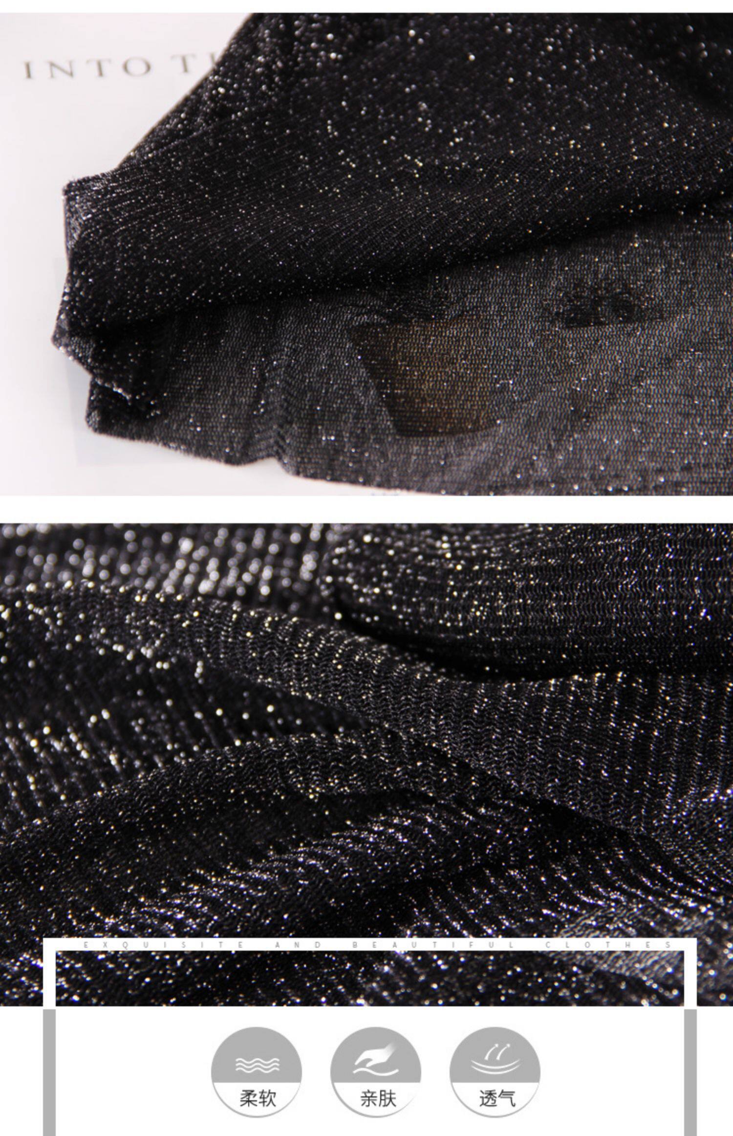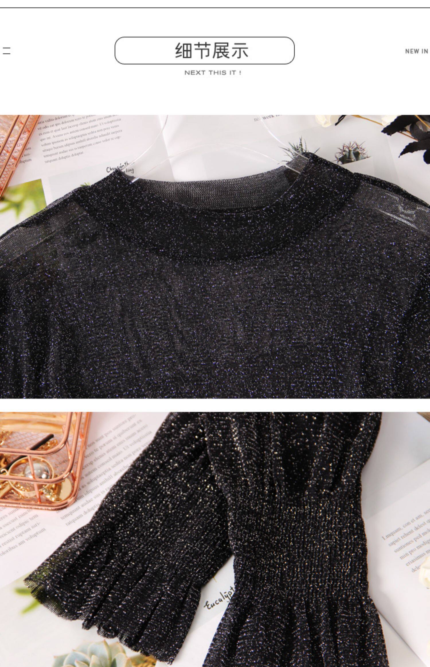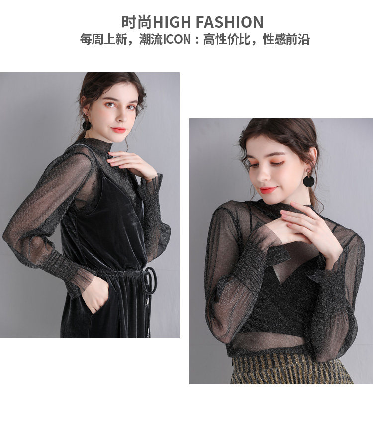 Яркая шелковая сетчатая рубашка для женщин для женщин с тонкой рубашкой с золотой и серебряной проволокой Сексуальная кружевная топ черный